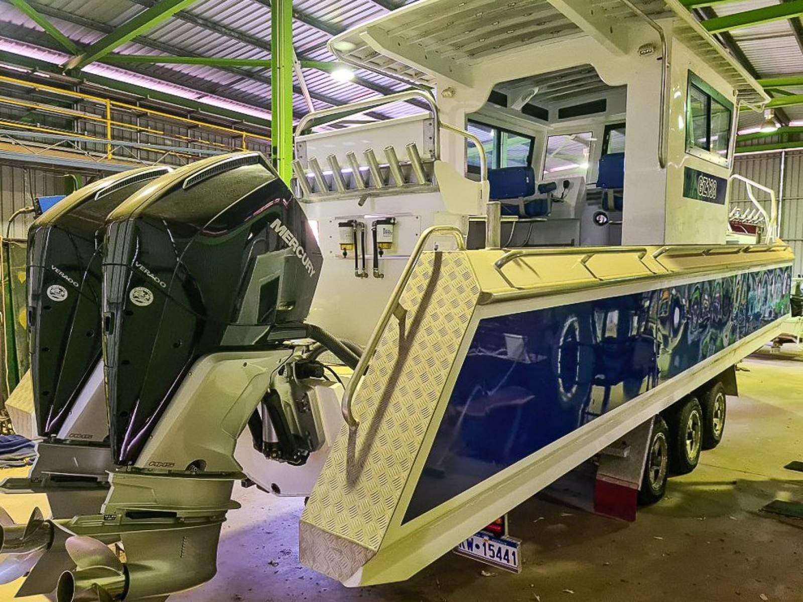 This custom designed 10m plate aluminium vessel is a versatile option, with well though out features it is suited to a multitude of uses - from offshore fishing trips to tackling demanding marine operations, this durable vessel has you covered. The wide beam provides unmatched stability and ample space to cast out a line with mates. There is no shortage of space to store your fishing or diving equipment onboard with the addition of underfloor and above-helm storage space. This custom design features a spacious enclosed cabin positioned midship with opening glass windows, allowing plenty of air flow throughout and maximum comfort whilst cruising. The helm is well-equipped with a 12" Simrad plotter/sounder networked to the Mercury Smartcraft vessel view monitor, ensuring efficient navigation and performance en route to your destination. The helm and cabin area present a versatile space with ample potential, ready to be fit out to your specific requirements. The hard top provides plenty of protection against the elements and boasts an integrated solar panel, a brilliant addition for extended voyages. Transport and launching the vessel is made easy with the 4.5 tonne tri-axle trailer. KEY FEATURES- Tri-axle trailer- Twin Mercury 300HP outboards with only 32 hours- Approx 1,200L Fuel capacity- Solar panel- 2x Staring batteries- 2x House batteries- Multiple 12v outlets- 12" Simrad plotter/sounder- GME VHF radio- Hard top and underfloor storage space- Spacious cabin ready to be fitout to your requirements- Large fast drum winch- Bait board- Rocket launchers- Boarding/dive ladder strategically placed to the bow for easy access- Fully sealed side pontoons & Plenty More!Get in touch with Oceaneer Marine Brokers to book an inspection onboard this incredibly tidy all-rounder!Luke Morgan: +61 437 937 735Oceaneer Marine Office: (08) 9243 6373Matt Lovelady: +61 499 449 788Tom Lovelady: +61 417 780 566