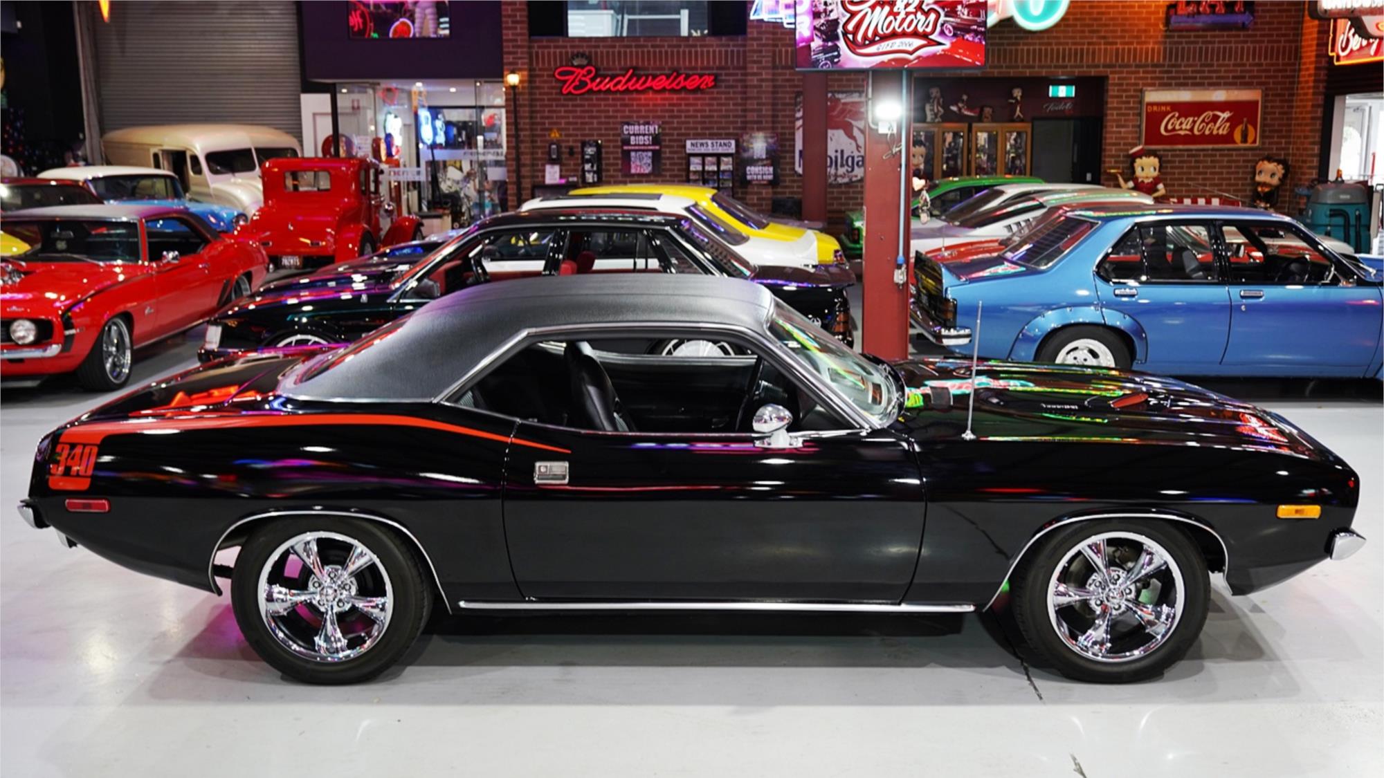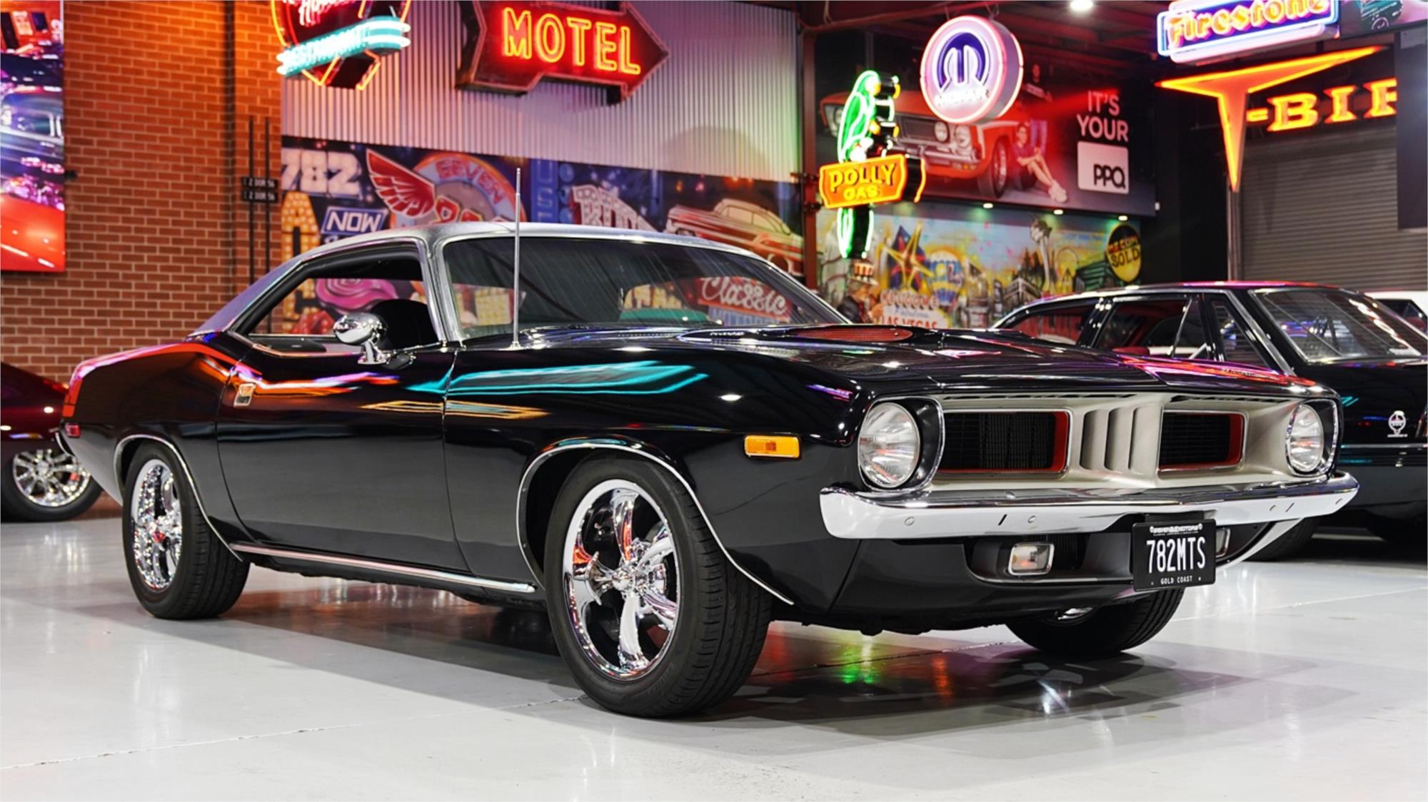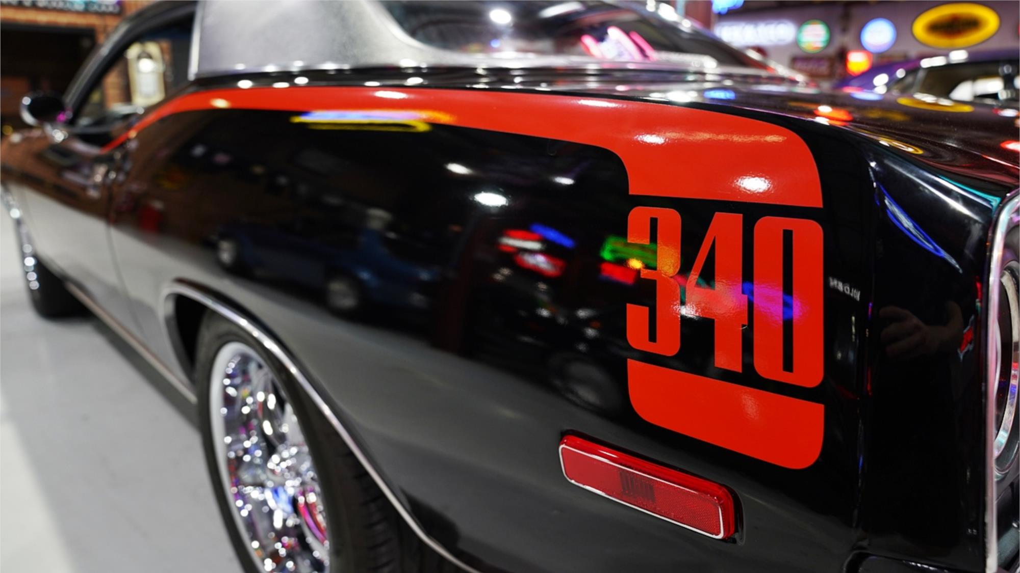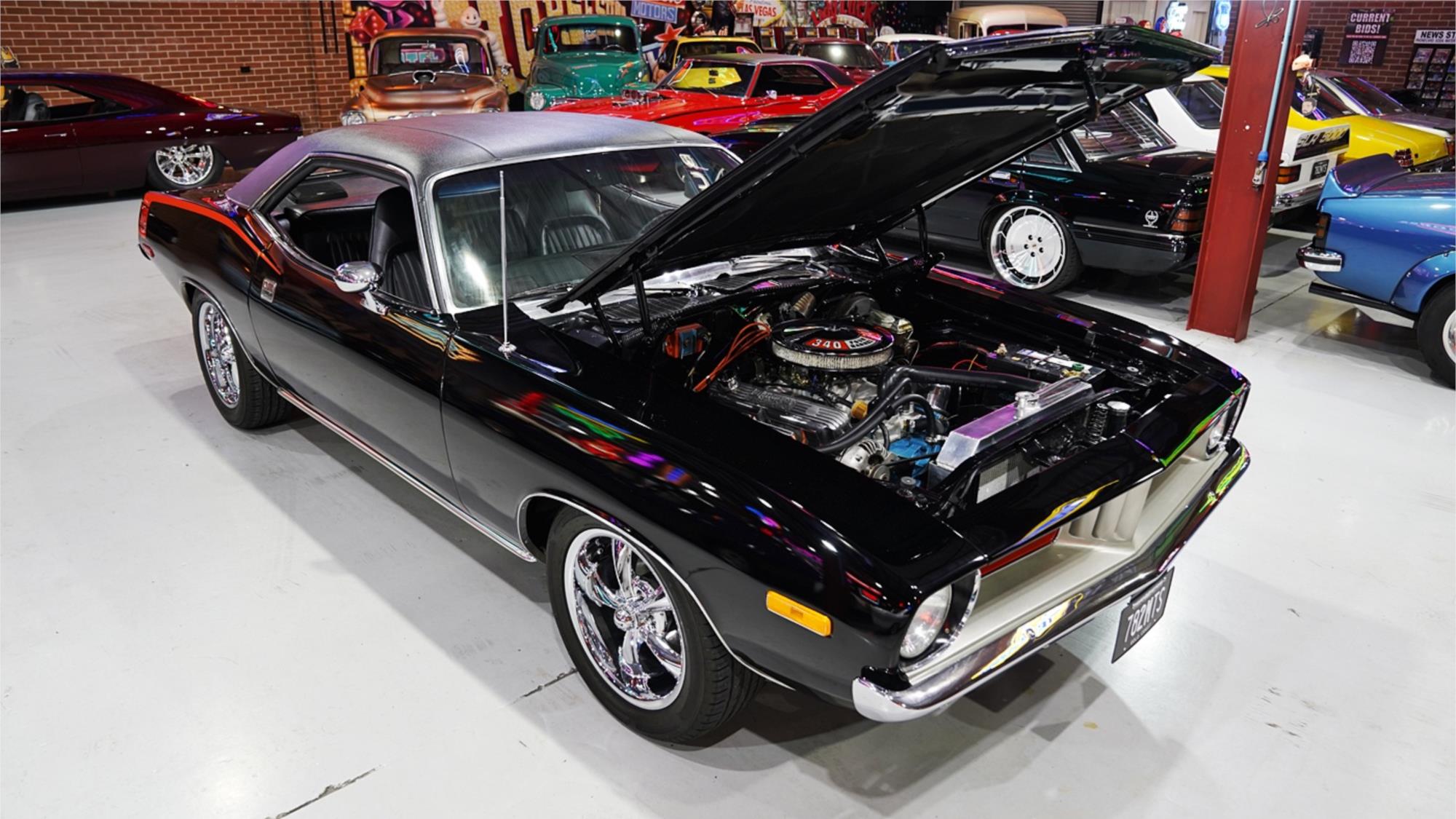 HIGHLIGHTS: - Offered at NO RESERVE! – Desirable 1973 Plymouth ‘Cuda – Repainted in Gloss Black – Black vinyl roof – 340ci Mopar V8 engine – 727 Automatic transmission – Mopar 8 ¾” differential – Power steering - Torsion bar front end – Power disc brake front end – Upgraded radiator – Four into one headers and dual exhaust – Chrome 17” Ridler wheels