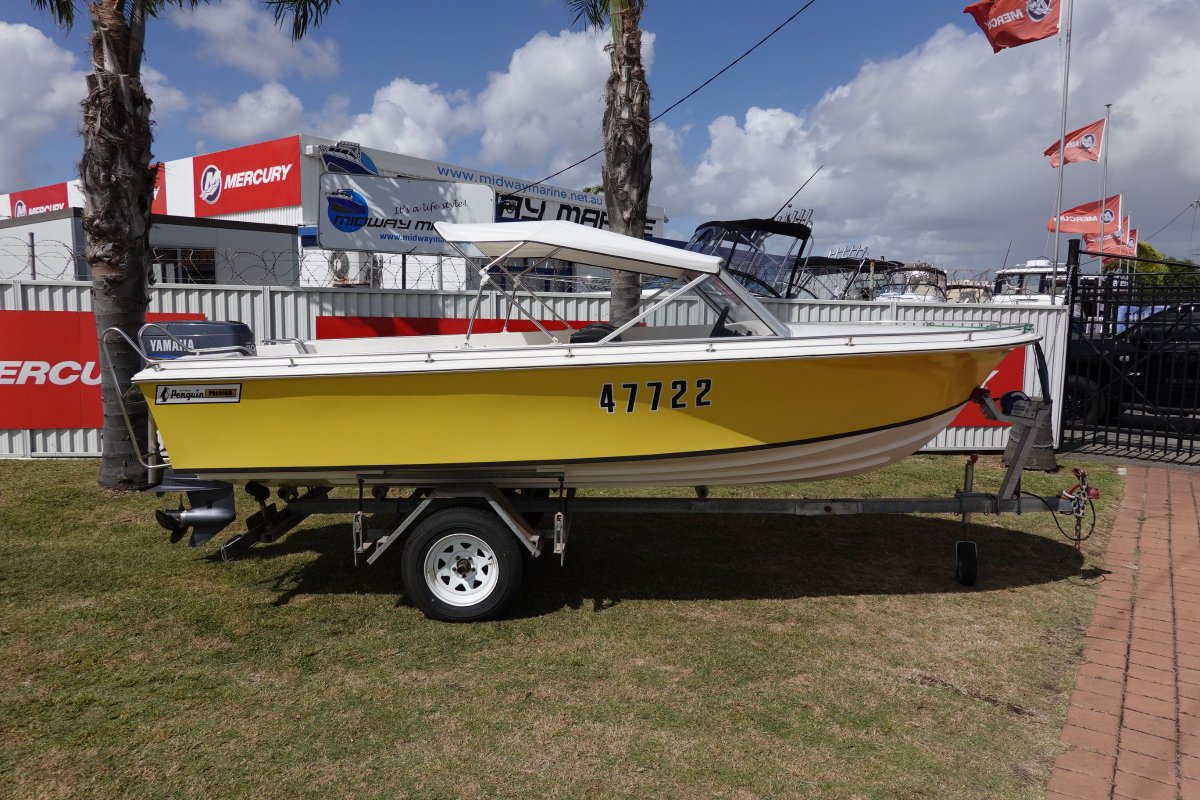 What a classic! Full barn yard find here!. The WA iconic Penquin PhantomIts like it just come out of the mouldRecently upgraded engine from it's original mercury. It''s now powered by a very nice Yamaha 90hp oil injected which comes with 2 round digital gauges and hydraulic steering, 188hrs of running, 2008mdel2 x 25ltr tanksRuns like a dream and pushes this hull along at nearly 40Knots!. You can't go past the flare these hulls have, beautiful ride in the waterIt's still got the back to back seating in itNew canopy just been fitted (same as the old one that was on it)s/s bar work around the gunwalesnew switch panelsits on a single axle trailer. To appreciate how good of condition this hull is in, you have to come into the yard and take a look, it's a beauty and a classic, you wont find a better one!. On display now at Midway Marine. WE CAN ARRANGE EASY AND NO HASSLE FINANCE AND INSURANCE TO APPROVED CLIENTSMIDWAY MARINE43 HURRELL WAYROCKINGHAM WACALL WARWICK OR SAM ON 9527 6963OR COME INTO OUR YARD AND LOOK AT ALL OF OUR STOCK ON HANDWE ARE AGENTS FOR FISH HUNTER BOATS, REVIVAL BOATS AND HAINES HUNTER BOATSWE SELL NEW AND USED BOATS, NEW MERCURY OUTBOARDS, DUNBIER AND MACKAY TRAILERS AND ALL THE PARTS YOU NEED FOR YOUR BOAT/MOTOR/TRAILERTRADE INS ARE WELCOME!MERCURY PREMIER SERVICE CENTRE, WE SERVICE AND REPAIR ALL BRANDS OF MOTORSGEAR YOUR BOAT UP WITH RAYMARINE, FUSION, GME OR LOWRANCE ELECTRONICSBIA MEMBERS AND BIA APPROVED REPAIRERINSURE YOUR BOAT WITH NAUTILUS MARINE INSURANCE OR CLUB MARINE INSURANCE, AGENTS FOR BOTH