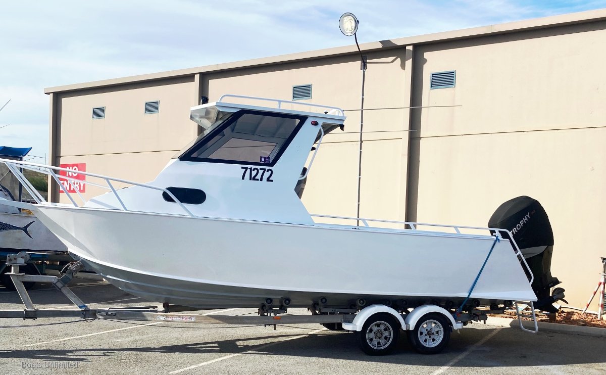 IN 202 THIS BOAT WENT IN FOR A FULL REFURBISHMENT BY THE ORIGINAL BUILDER OF "ABM" BUILT TRAILCRAFT BOATS OF WHICH THIS IS.. EXTRA GUSSETING AND STRINGERS WERE CALCULATED INTO THE REBUILD OF THESE CLASSIC "TRUE PLATE ALLOYS" TO ALLOW FOR THE CORRECT BALANCE OF ADDING THE NEW ENCLOSED HARDTOPPART OF THE REBUILD INCLUDED RE-POWERED WITH ONE OF MY FAVOURITE ENGINES WHICH IS THE L6 VERADO 225 EFI SUPERCHARGED 4 STROKES WITH DTSA MERE 364 OFF HOURS ON THIS APPROX 2008 MODEL ENGINE, FULLY FITTED AND REWIRED BY ALAN AT BIG FIVE MARINE WHO HAS DONE A VERY NEAT JOBITS FULLY REWIRED AND MOSTLY ALL NEW PARTS ACCESSORIES WERE PART OF THE OWNERS PLAN, BUT WITH A NEW JOB FIFO'ING, ITS SELDOM HAD USE AND HAS ACCESS TO HIS BOSS'S 40' BOAT WHEN THE OCCASION TO GET ON THE BRINY ARISES.. HARDTOP LIGHT BARFOLD AWAY BOARDING LADDERBOARDING PLATFORMSIDE RAIL TRANSOM MOUNTED ROD HOLDERUNDER FLOOR KILL WELL SIDE POCKETSTWIN BATTERIES REAR SEAT TWIN DELUXE CAPTAIN CHAIRSPADDED FRONT V BIRTHFULLY REFURBISHED SELF DRAIN DECKNEW ELECTRONICSTRADES WELCOME FINANCE AVAIL T. A. P