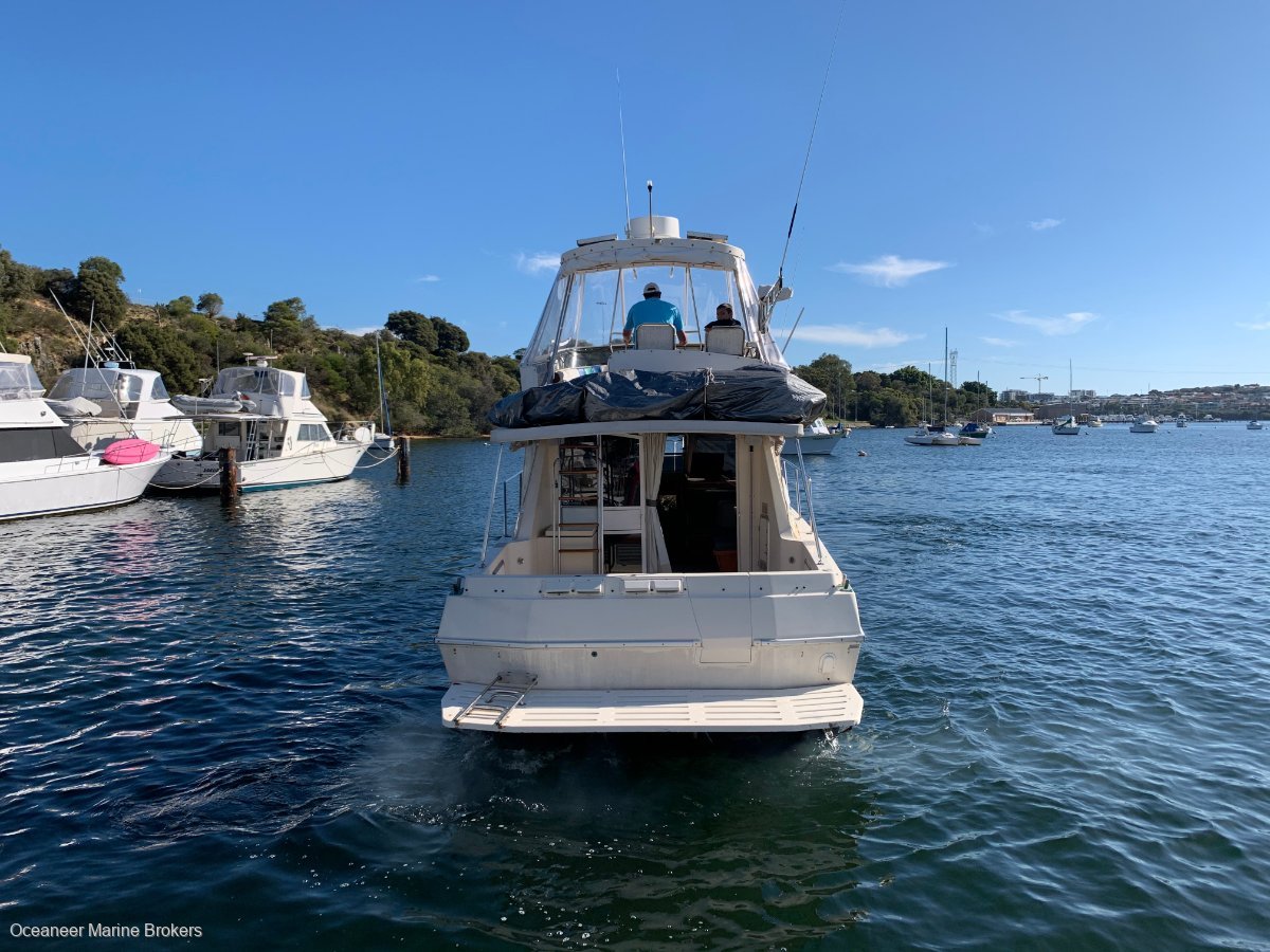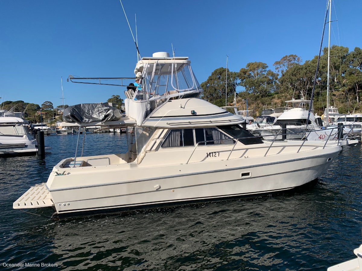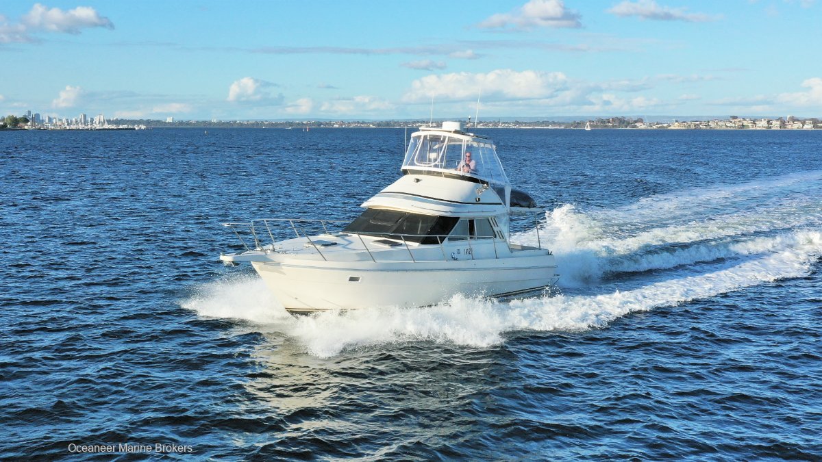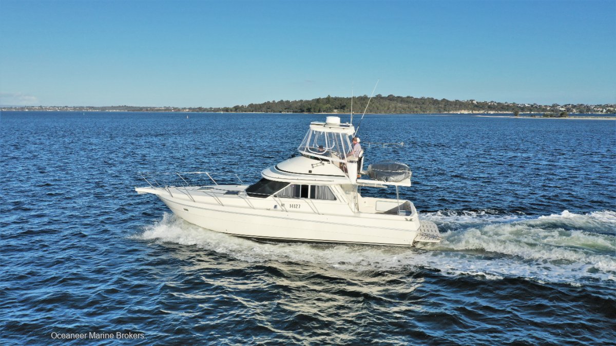 This tidy, classic Leeder 38' flybridge cruiser is turn key and ready for the family to go boating! With plenty of space below deck for storage, new galley appliances, large swim platform and easy to service economical Perkins diesels engines, this vessel presents well for the fussiest of buyers. This flybridge cruiser has a good feel about it. A large cockpit and swim platform for entertaining, plenty of room for a family to enjoy meals and drinks around the table too. She will suit a grey disc mooring at Rottnest and fit in a 12m pen. There is a large double forward, 2 single bunks in the starboard cabin and a roomy bathroom. Pen at East Fremantle Yacht Club to be arranged by separate negotiation. For further information, please call the team at Oceaneer Marine Brokers on 08 9243 6373 or submit an enquiry below. Tom: 0417 780 566Matt: 0499 449 788