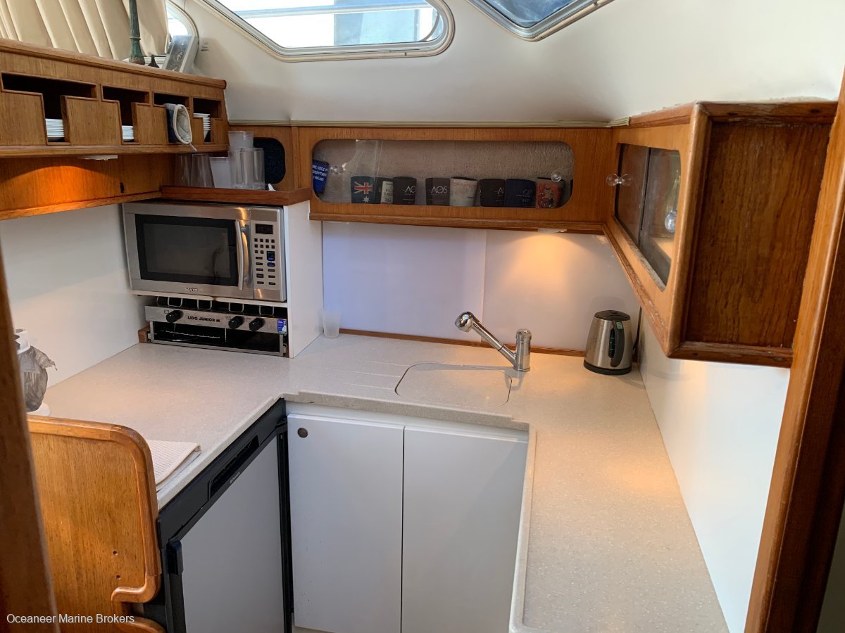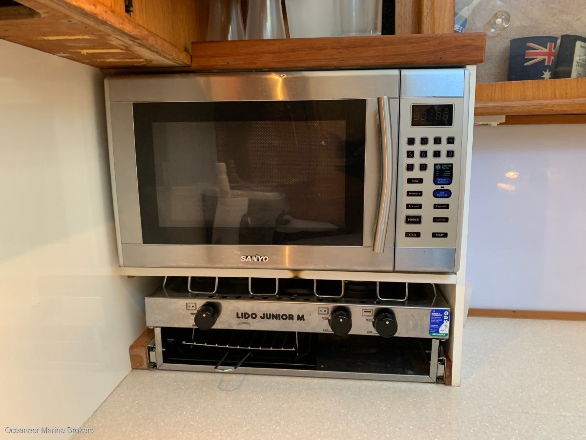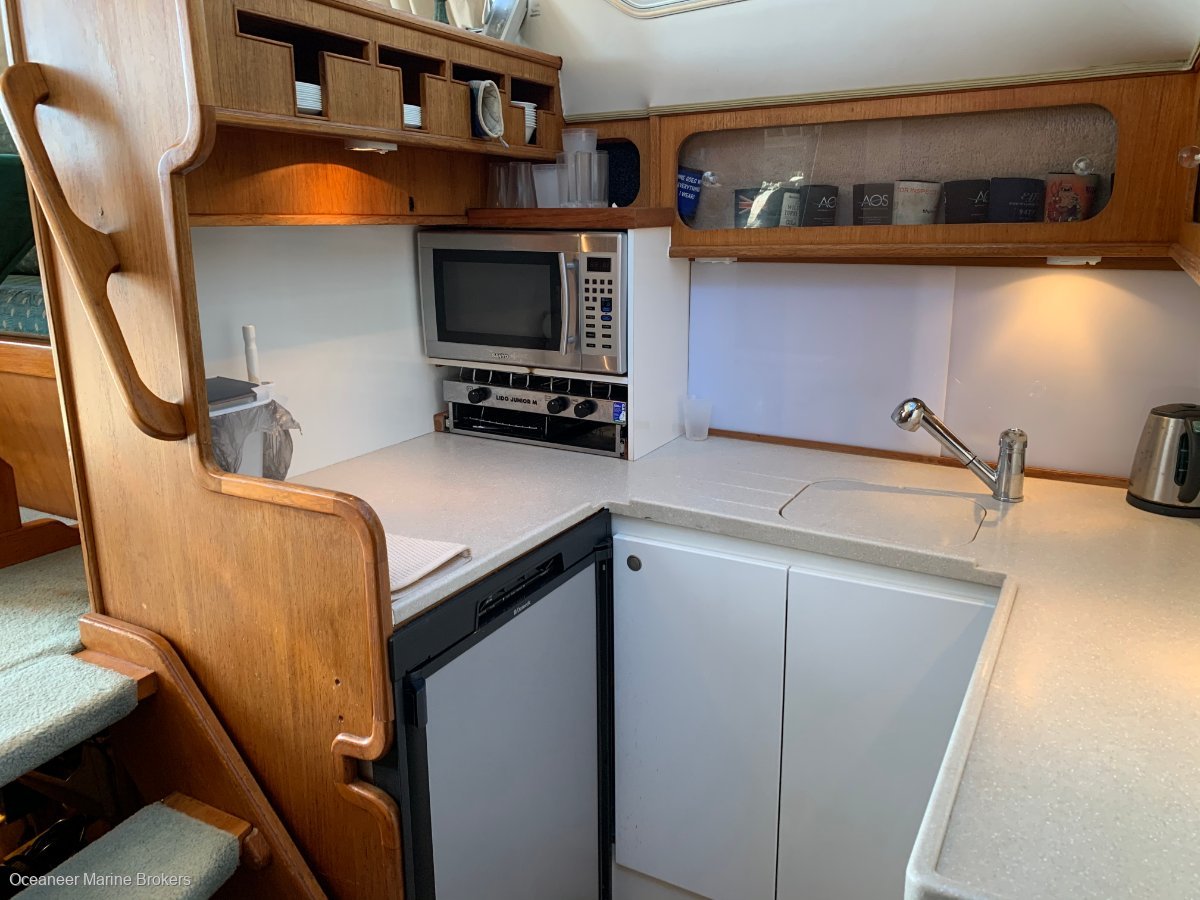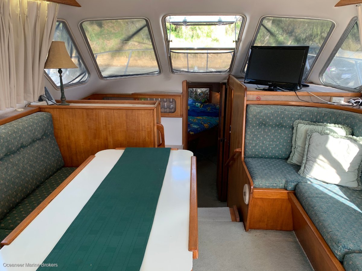 This tidy, classic Leeder 38' flybridge cruiser is turn key and ready for the family to go boating! With plenty of space below deck for storage, new galley appliances, large swim platform and easy to service economical Perkins diesels engines, this vessel presents well for the fussiest of buyers. This flybridge cruiser has a good feel about it. A large cockpit and swim platform for entertaining, plenty of room for a family to enjoy meals and drinks around the table too. She will suit a grey disc mooring at Rottnest and fit in a 12m pen. There is a large double forward, 2 single bunks in the starboard cabin and a roomy bathroom. Pen at East Fremantle Yacht Club to be arranged by separate negotiation. For further information, please call the team at Oceaneer Marine Brokers on 08 9243 6373 or submit an enquiry below. Tom: 0417 780 566Matt: 0499 449 788