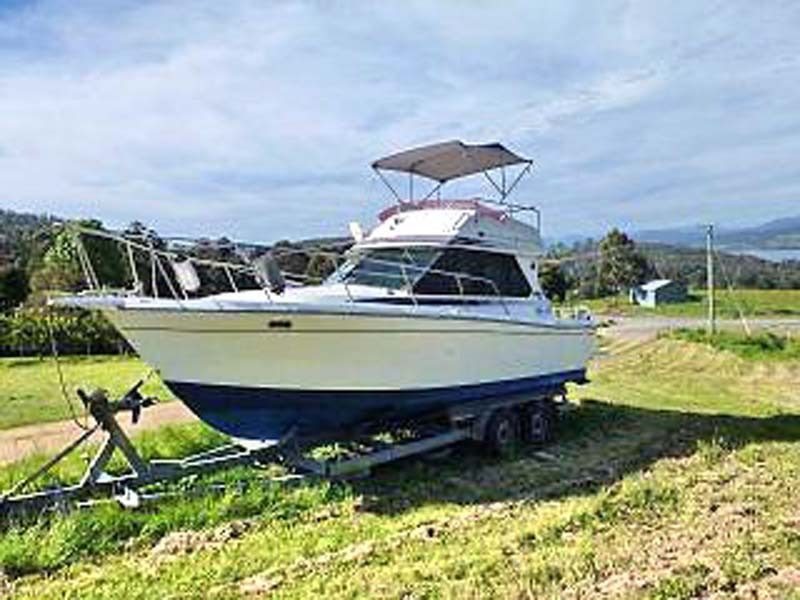 1989 Powerful Cabin Cruiser, Boat Ref 745HT, F/glass Hull, All navgational gear inc GPS plus Trailer, Sleeps up to 4 people, Volva Pinta Dsl, Elec Anchor, Auto Pilot, Cabin & Deck Showers, Toilet, Oven & Fridge, New flr coverings internally, Dinghy: 2.9m Inflatable Tender w/2hp o/board, overall cond very good, (service maintenance records avail) $64,000Neg. PH 0418596259 Tasmania.