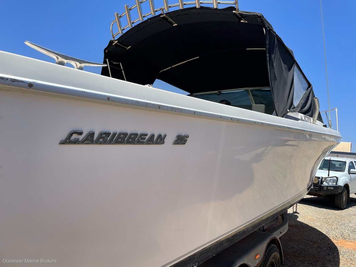 A rare Caribbean 26 "Wide Body" available for quick sale with Oceaneer Marine Brokers. Vessel is located in Carnarvon. "Cyclone Tom" has been a regular in the game fishing tournaments over the years, can confirm the vessel catches! The hours are trolling hours. Engines run well, manifolds + risers done approx 3 years ago, due a service. Extras include detachable full length bimini covering cockpit and storm covers. The sale is inclusive of 2010 EZ Loader dual axle trailer in great condition. This wont last long, all Offers presented!We specialise in pre-owned recreational and commercial asset sales. For inspection and full specifications, contact Lachlan Boyd, Tom Lovelady or Matt Lovelady onOffice: (08) 9243 6373Lachlan: +61 428 945 211Tom: 0417 780 566Matt: 0499 449 788