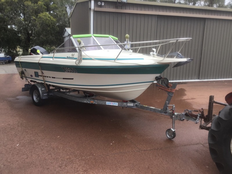 Caribbean (Belmont) 1998. Mint condition. 90 h/p Mercury with low hours. Near new marine radio and echo sounder/fish finder. Epirb/life jackets/flares/fire extinguisher. Also fitted with underfloor 80 litre fuel tank. Removable canopy. Very good conditioned trailer with brand new tyres and galvanised rims plus two spare tyres on galvanised rims. Has always been garaged.