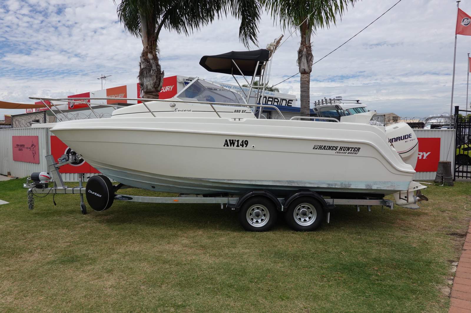 These hulls need no introduction680 Haines Hunter is on display at Midway Marine. Brand new Dunbier trailer has just been put under itElectric braked comes with spare wheel and 12months license. Comes with Fusion StereoSimrad 12"screen with 1kwVHF radioS/s targa bar and biminiLock up cabinYeti esky/rear loungeBig transom door s/s ladderFull walk around cabSink in cabinNice size vee berth for overnight staysHuge underfloor kill tanksNice bait stationEngine coverAnchor kit. Powered by a 225 Evinrude E-Tec. 442 hoursDual battery systemHydraulic steering. Very sort after hull, these 680's go amazing in the water, grab it while its hot! . Hull Material: fibreglassType: monoDeadrise (at transom): 22°Length: 6.790mBeam: 2.50mWeight (hull only): 1250kgFuel capacity: 350ltMax rated hp: 300hp. On display now at Midway Marine. WE CAN ARRANGE EASY AND NO HASSLE FINANCE AND INSURANCE TO APPROVED CLIENTSMIDWAY MARINE43 HURRELL WAYROCKINGHAM WAPH: 9527 6963CALL SAM OR JAMIE ON 9527 6963OR COME INTO OUR YARD AND LOOK AT ALL OF OUR STOCK ON HANDWE ARE AGENTS FOR FISH HUNTER BOATS, REVIVAL BOATS AND HAINES HUNTER BOATSWE SELL NEW AND USED BOATS, NEW MERCURY OUTBOARDS, DUNBIER AND MACKAY TRAILERS AND ALL THE PARTS YOU NEED FOR YOUR BOAT/MOTOR/TRAILERTRADE INS ARE WELCOME!WE SERVICE AND REPAIR ALL BRANDS OF MOTORSGEAR YOUR BOAT UP WITH RAYMARINE, FUSION, GME OR LOWRANCE ELECTRONICSBIA MEMBERS AND BIA APPROVED REPAIRERINSURE YOUR BOAT WITH NAUTILUS MARINE INSURANCE OR CLUB MARINE INSURANCE, AGENTS FOR BOTHLIKE US ON FACEBOOK AND FOLLOW US ON INSTAGRAMPLEASE NOTE - offers via email prior to physically viewing the boat or discussing the boat with us in person may not be replied to or considered. Please call to discuss genuine offers.