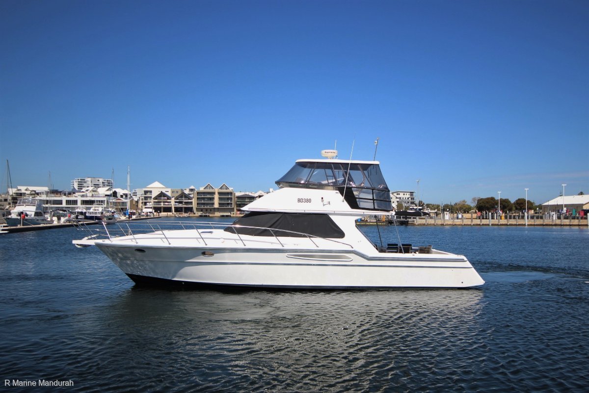We are often asked for a single engine installation fly bridge cruiser with plenty of room for the family, they don't come to the market all that often it seems. R Marine Mandurah is pleased to be able to fill the request for all those looking for a large volume family boat that can offer great economy in a single engine installation. The Thomascraft 45 could be the boat for you. Neatly trimmed throughout this 1999 built boat appears to be well maintained and handles well thanks to bow and stern thrusters at the helm. Top of the list for WA boating is a great cockpit and the Thomascraft 45 has that covered with one of the largest back decks in the game ! With enough room for a 6 person outdoor setting and still having room to move this has to tick the box for cockpit space. Diving, dancing, paddle boards, cray pots, grand kids, sun baking and more..... And all at once ! deep and wide this is the ideal entertaining area. Neatly finished with a fresh covering of marine carpet in a teak look finish over the top of a non-skid GRP deck. Great for fishing and entertaining with a nearly full length rear awning protecting you from the harsh WA sun. A bi-fold saloon door matched with a single opening door link the inside to the outside very effectively. An almost full width saloon door installation will open up the saloon to the cockpit seamlessly maximising the large saloon lounges and open plan of the boat's cockpit as one huge entertaining area for long days at Rotto or social cruising up the Swan. I can see a 21st, a bucks day or wedding shower on board with ease. Brilliant memories. Head room galore in the saloon with a typical neat trim seen in the Thomascraft builds leads you through to the Port side galley, just one step down from the main saloon. Solid bench tops, an Amtico floor finish and ample room to feed an army. A four burner gas stove with oven, yes an oven a not so common item these days, although currently disconnected as the owner is not a fan of gas onboard. A three way Electrolux fridge / freezer and the obligatory microwave oven. This is a very functional galley. A long companionway draws your eye forward to the bow and a set of 4 tournament bunks, typical of the era this maximises the sleeping opportunities and crew when heading to the Abrolhos Islands. For the captain a spacious berth is set to Starboard midship ensuring you the best nights sleep available after a long day on the water. Options are available for additional berths utilising the saloon lounges if required with the ability to sleep 8 if the need arises. The fly bridge is a spacious affair, again being amongst the largest in its class. Room for at least 8 in the two fly bridge lounges and double helm seat will see the captain regaling stories of past adventures while skippering the boat to its next destination. Radar, GPS and Sounder house in a Raymarine Hybrid touch will keep you on course, a concise and clutter free helm making for easy passage. Recently re carpeted in the teak look finish seen in the cockpit. Access to the engine is via man hole in the saloon or a huge cockpit hatch making this one of the easiest engine rooms to work in which will keep your mechanic very happy on annual servicing. A single IVECO 700, V8 engine makes for a very economical installation and ongoing maintenance is obviously a cheaper affair. Economical on the water and on the hardstand. Showing around 350 hours there is a lifetime of operation left in this well known engine. She jumps into life with ease and is a pleasure to manoeuvre through the marina despite her single engine installation. Bow and stern thrusters are a great addition !Growing up at Rottnest Island this was a boat of choice and very highly thought of as a family cruiser, dive boat and ideally suited for offshore fishing. Seeing the island disappear as we tipped over the horizon at West End was a comfort as we all knew a safe trip out and back was a certainty and there was plenty of room for everyone on deck to have some space to themselves when the bite was on. Some works undertaken :- Anti-Foul October 2018- Prop Speed October 2018- Polish October 2018- New Cockpit Carpets October 2018- New Bimini and Clears May 2018- Cockpit fridge unit replaced January 2017- Hot water system replaced January 2017- BOSCH batteries replaced January 2017Classic boats in the WA market will always have a special appeal and a special place in our hearts, why not arrange an appointment to view this Thomascraft 45 Fly Bridge through Paul on 0427 949 293, Trevor on 0456 949 293 or Carl on 0407 949 293 or contact the Office on 9583 5355.With a lifetime invested in the WA Marine Industry at all levels and thousands of boats sold Paul Denboer and the team at R Marine Mandurah WILL sell your boat and are proud to offer a NO SALE NO FEE structure to all our valued clients. Why entrust your precious boat to just anyone !R Marine Mandurah, Experience the difference for yourself, see why our clients are speaking so highly of the R Marine Mandurah Team