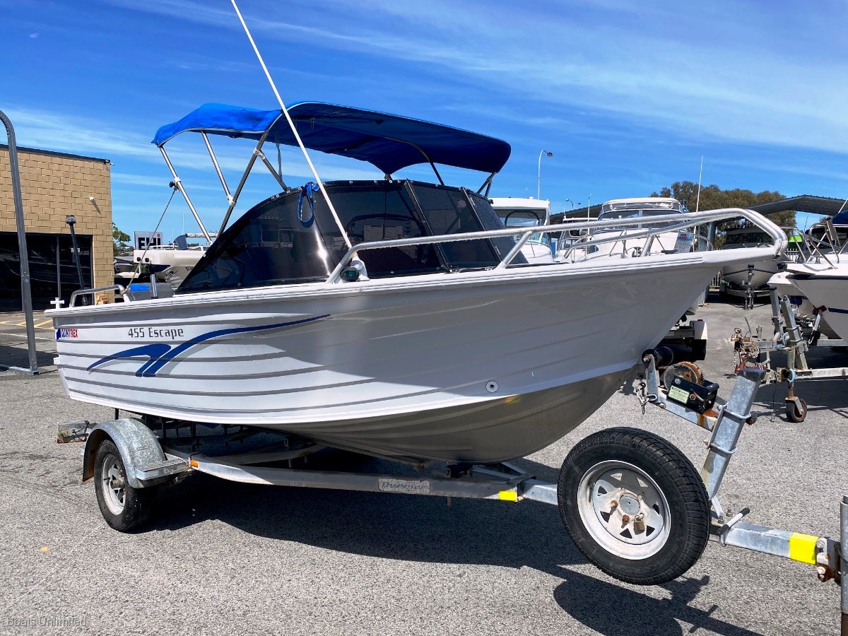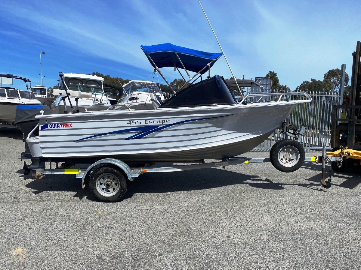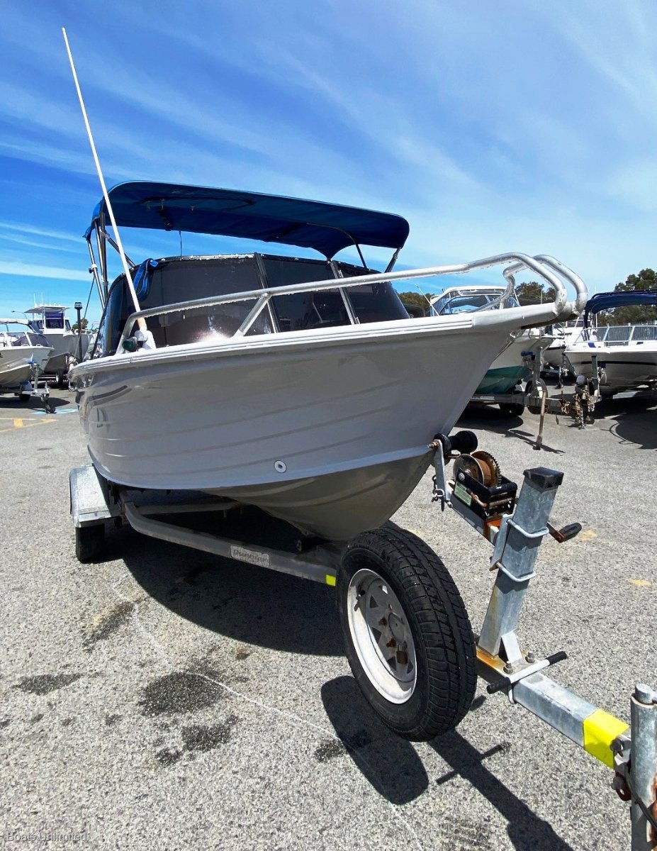THE GOTO BRAND IN PRESSED ALLOY RUNABOUTSTHIS MILLENNIUM HULL QUINTREX HAS VERY LOW HRS AND JUST HAD NE IMPELLER, THERMOSTAT ETC AND IS READY TO GO FOR THE EASTER HOLIDAYS FAST APPROACHINGYAMAHA 40HP OIL INJECTED 2 STROKE OUTBOARD THAT IS VERY CLEAN AND IDEAL FOR 3-5 PERSONS ONBOARD AND PLENTY OF UP N GO TO PULL THE KIDS AROUND ON THE TUBES ETC, WHEREAS THE 4 STROKE EQUIVALENT WOULD ACTUALLY STRUGGLESITS ON EASY LOAD BRAKED TRAILER AND EXTRAS INC CUSTOM TRANSIT/STOWAGE COVERFACTORY OPTED FOLD AWAY REAR LOUNGE. MAXI POD TRANSOM AND BOARDING LADDERBOW ANCHOR ACCESS THROUGH NEW SPLIT FOLDOUT TINTED SCREENS AND OPENING FORE DECK WHICH DOUBLE UP AS ANOTHER FISHING POSITION FOR OLE TANGLES ONBOARDEQUIPPED WITH BILGE PUMP, FOAM FLOTATION, UNDERFLOOR FUEL TANKNAV LIGHTS, MARINE RADIO AND LOWRANCE SOUNDER, CD PLAYERVERY NICELY PRESENTED WITH UPHOLSTERY IN GOOD CONDITION AND PAINTWORK ISN'T CHIPPED AND BANGED AROUNDTRADES WELCOME, FINANCE AVAILABLE T. A. P