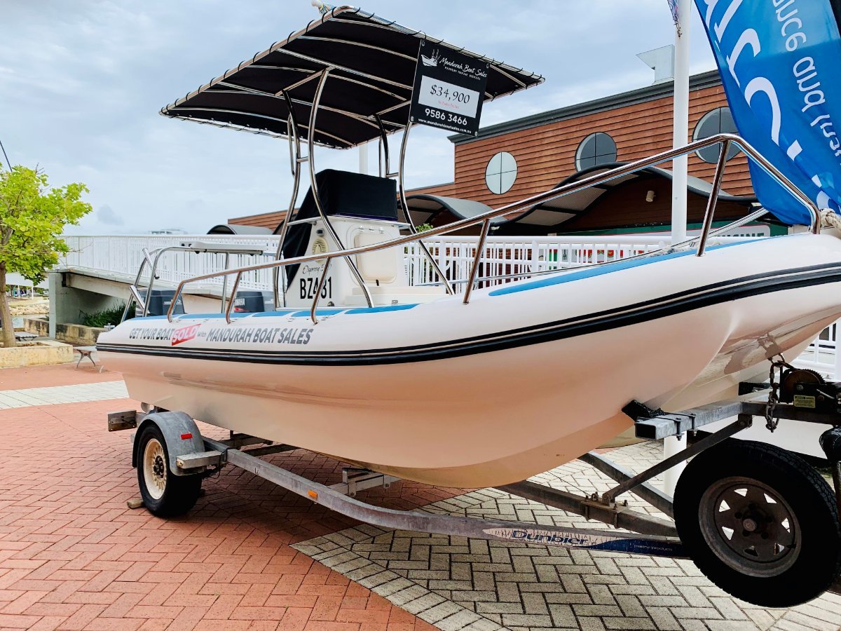 This Osprey 570 has been "Mandurah Boat Sales" personal boat. Being a full fibreglass construction plus a "Catamaran Design" She's just about unstoppable!Powered by twin 60hp Yamaha outboards she'll sprint at 28 knots and cruise all day at 22 knots. The new stainless steel custom frame Bimini is a work of art and gives great sun protection too. This rig is fitted with many extras, and is turn-key ready. Plus, its complete with a registered drive on/off galvanised trailer including spare wheel. AT THIS PRICE IT WILL NOT LAST.... So be quick!!If you require further information, please do not hesitate to contact us... E: enquiries@mandurahboatsales. Com. Au Office: (08) 9586 3466The boat is on display at Mandurah Boat Sales Jetty - we'd be happy to take you through it!