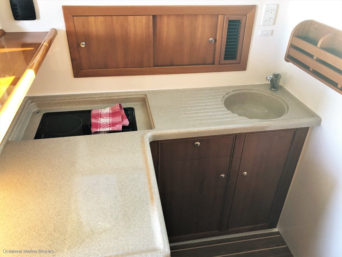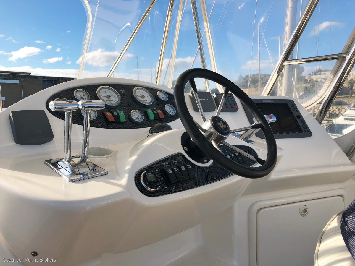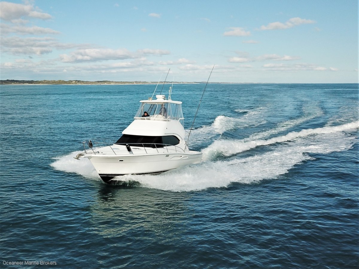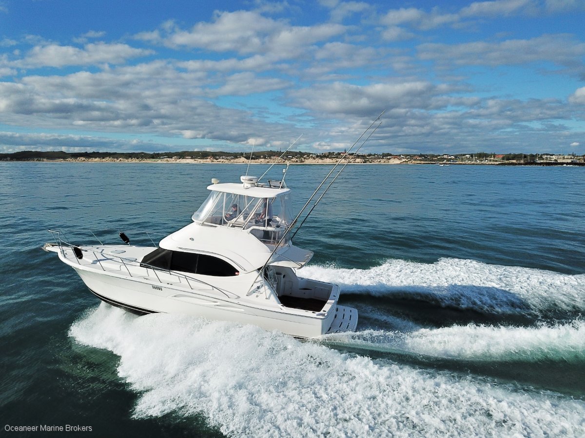 This sought after model was built by Riviera in 2004. The original owner did not hold back when ticking the options list, as this is one of the highest specifications we've seen in a Riv 37. Luxuries afforded by the extensive build include 3 fridges and an ice maker, premium Riviera linen pack, game fishing chair and outriggers, high spec Raymarine E120 plotter with autopilot plus remote control in cockpit, TV in master cabin and the list goes on! Comfortably accommodate a family of 4 or two couples across the two cabins, not to mention the extra comfortable saloon settee for additional sleeping capacity. A spacious galley with 2 hob electric cooktop will easily meet your entertaining requirements, and the large saloon can be enjoyed by everyone in inclement weather. The teak laid aft cockpit is perfect for enjoying the weather and entertaining guests, also the ability to mount a game chair will keep the keen fishermen entertained. A light and roomy flybridge with seating for 6 will please the skipper and their friends, especially with easy access to frosty drinks provided by the console mounted bar fridge. Well maintained Cummins 6 cylinder 370HP diesels effortlessly push the Riviera 37 to a top speed of 28 knots and maintain an economical cruising speed of 24 knots. These engines are among the most reliable and readily serviceable on the market and will give you many trouble-free years of boating. For any enquiries or should you wish to book an inspection, please don't hesitate to send through a contact form and call one of our experienced brokers on 08 9243 6373.