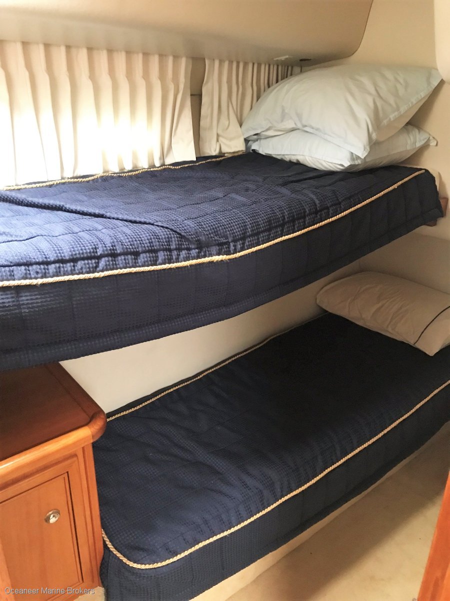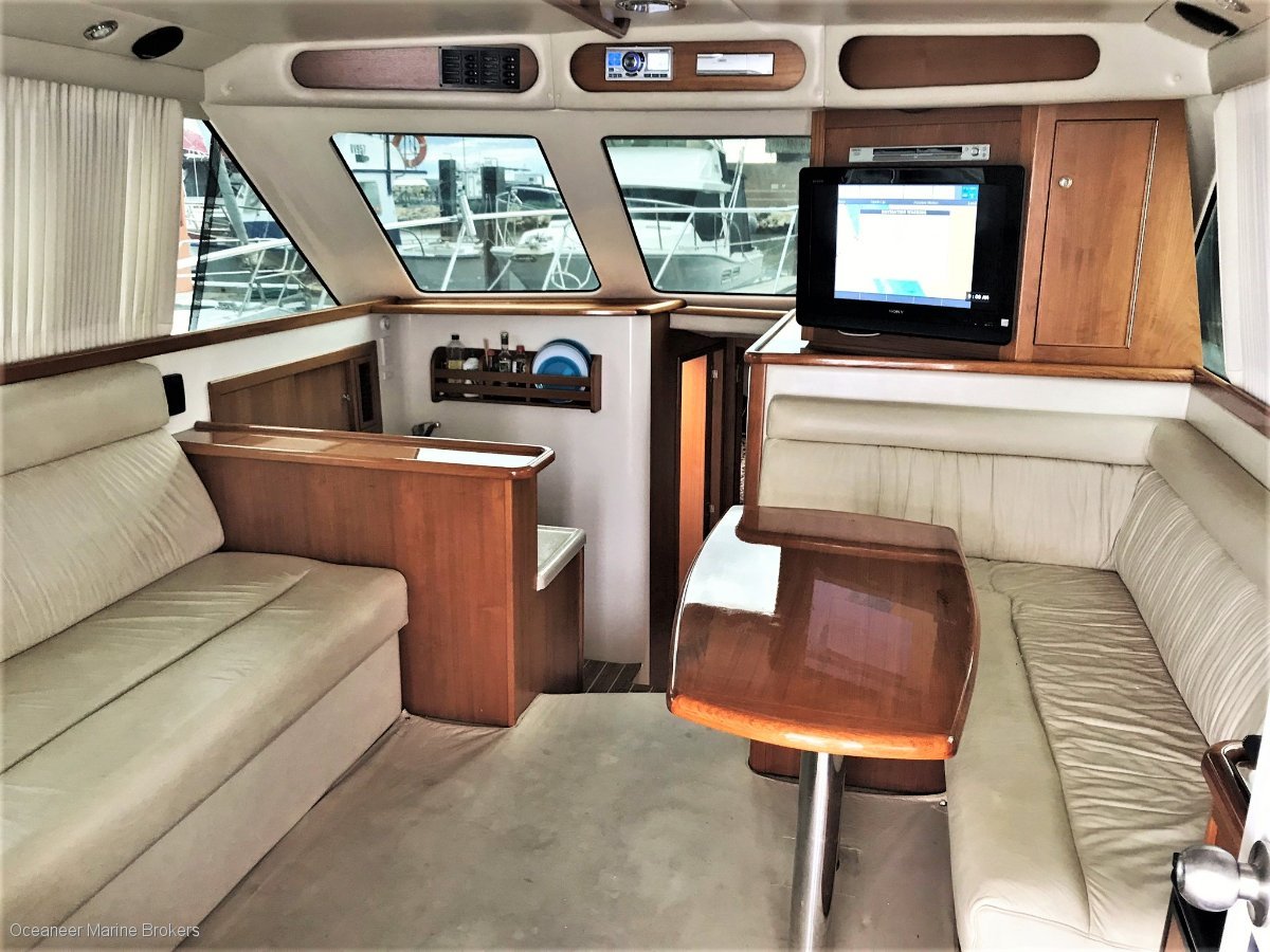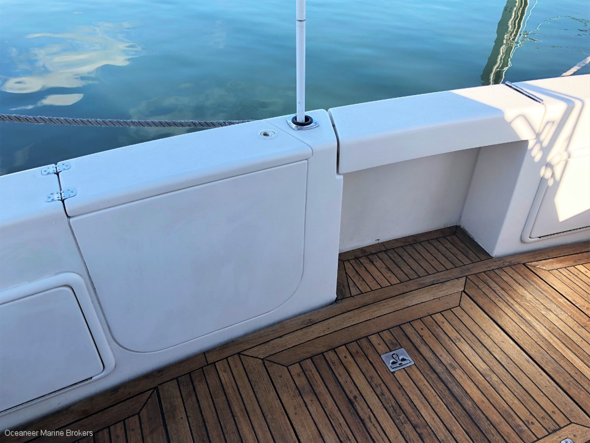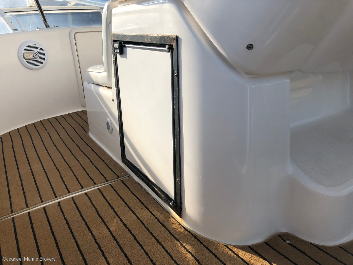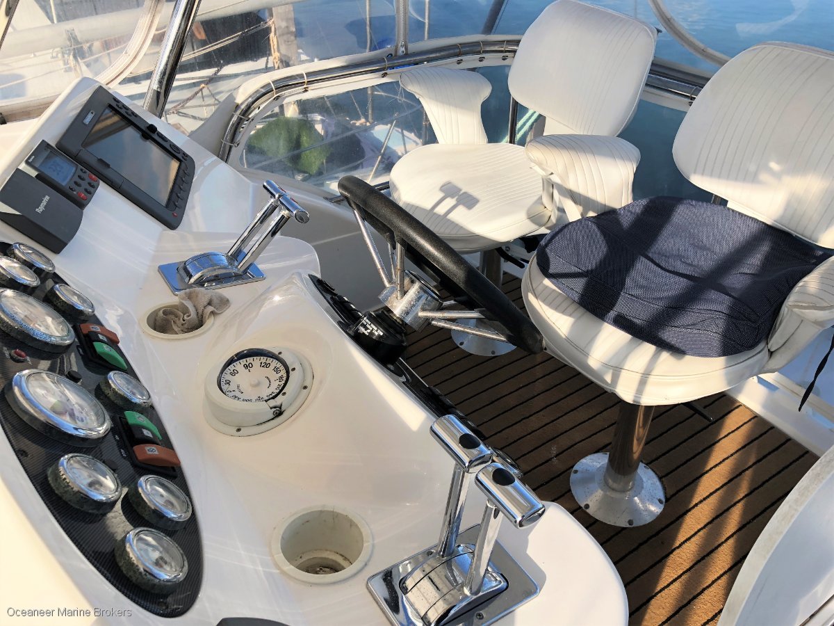 This sought after model was built by Riviera in 2004. The original owner did not hold back when ticking the options list, as this is one of the highest specifications we've seen in a Riv 37. Luxuries afforded by the extensive build include 3 fridges and an ice maker, premium Riviera linen pack, game fishing chair and outriggers, high spec Raymarine E120 plotter with autopilot plus remote control in cockpit, TV in master cabin and the list goes on! Comfortably accommodate a family of 4 or two couples across the two cabins, not to mention the extra comfortable saloon settee for additional sleeping capacity. A spacious galley with 2 hob electric cooktop will easily meet your entertaining requirements, and the large saloon can be enjoyed by everyone in inclement weather. The teak laid aft cockpit is perfect for enjoying the weather and entertaining guests, also the ability to mount a game chair will keep the keen fishermen entertained. A light and roomy flybridge with seating for 6 will please the skipper and their friends, especially with easy access to frosty drinks provided by the console mounted bar fridge. Well maintained Cummins 6 cylinder 370HP diesels effortlessly push the Riviera 37 to a top speed of 28 knots and maintain an economical cruising speed of 24 knots. These engines are among the most reliable and readily serviceable on the market and will give you many trouble-free years of boating. For any enquiries or should you wish to book an inspection, please don't hesitate to send through a contact form and call one of our experienced brokers on 08 9243 6373.