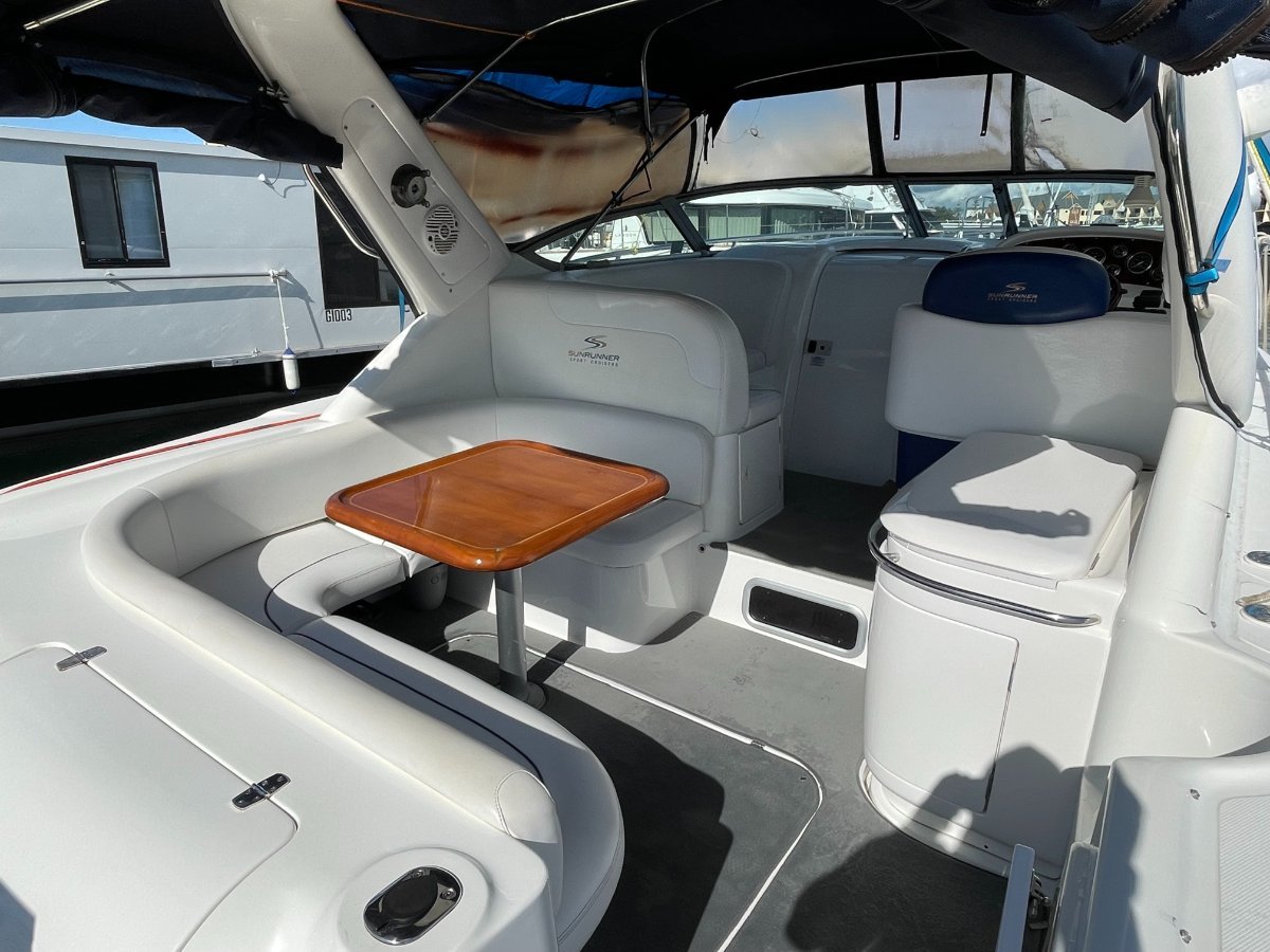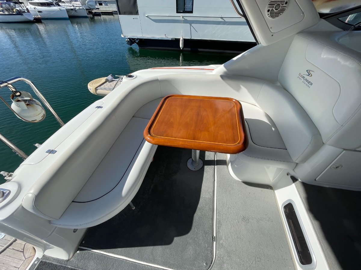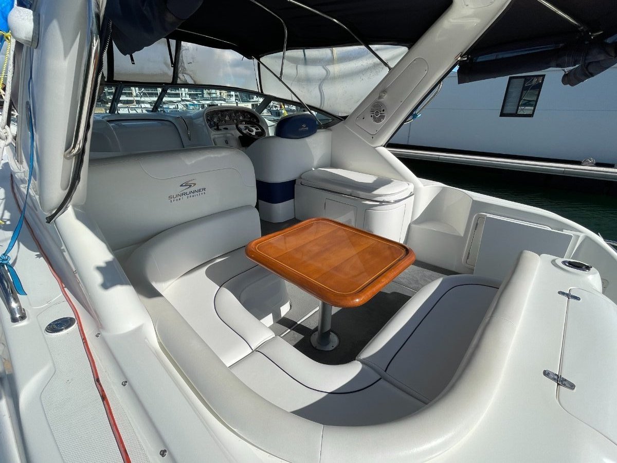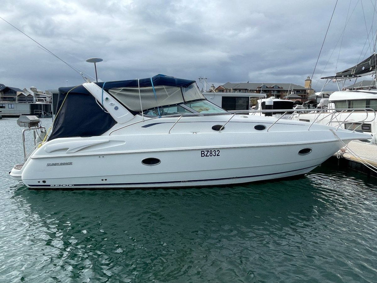 This Sunrunner 3300 is one of the best-finished sportscruisers on the market and is the "Ultimate Family Entertainer:", geared for lifestyle and comfort, it's impossible not to be impressed!! Simply stock up the fridge and esky, cast off and enjoy all this unique vessel has on offer. Above the waterline her shoulders are broad, below deck the headroom is high.... She's a big volume boat designed and made in Australia and has been a popular boater's choice for over 20 years - renowned for their practical layout and comfortable interiors. On deck the open cockpit offers great entertaining plus alfresco dining and features comfortable lounging for 8-10 adults, a wet bar with generous icebox and is sheltered from the elements with covers and clears. **PLEASE NOTE** please note all the canopies and clears (excl rear storm cover) will be included in the purchase price or alternatively the quoted value by a professional marine trimmer can be deducted from off the purchase price. Stepping inside, the stylishly stunning saloon is light and bright, and hatches are naturally well ventilated, the modern features include gorgeous timber trims throughout. The saloon is dominated by the huge dinette located to Port with ample seating for 5 in comfort. An impressive Galley is located opposite and features Corian benchtops, stove, microwave, fridge, H/C water, ample bench space and oodles of storage. Ideal for two couples or a family to cruise in comfort, this big volume sports cruiser with all the comforts of home offers accommodation for four persons easily in the luxurious offset queen size forward berth with full privacy curtain and the spacious double berth is located aft, complete with well-designed settee located adjacent. Adding to those noted comforts would have to be the private bathroom with toilet, H/C shower and vanity. At the Helm you are spoilt with excellent visibility and quality electronics with engine instrumentation, Furuno GPS, bow thruster control, VHF Marine Radio and more all at your fingertips!! The large bow area is accessed by either the walk-around side decks or through the centre window. Storage exists in various side and deck hatches, under the lounge bases and add the aft garage and you should be able to stow a trolley-worth of gear without messing the cockpit!!o Powered by twin Mercruiser V6 4.3Ltr "Fresh Water-Cooled" Engines - Low Hours o Genset, Air Conditioning & Mounted TV - for added comfort aboard.... o Stainless Steel Stern Rail with BBQo Large Teak Transom Board with Secure Transom GateWith luxuries that set her aside from the rest and only one owner since new, these quality production vessels are few and far between in today's current market. Take advantage of this great opportunity to secure this fabulous beauty of a boat that ticks all the boxes and boasts style and comfort to suit everybody.... The boat is on display at Saggers Marine Sales Jetty. o We Buy, Sell & Trade Boats Too!If you require any further information, please call the Office: (08) 9511 4911o Email enquiries - might not be answered for several days!*** Is your vessel for sale? - Is it getting maximum exposure? - We can Help.... Speak to our professional team today!DISCLAIMER:o This description has been prepared for advertising and marketing purposes only. o All prospective purchasers should carry out their own due diligence and if required, engage qualified third-party inspectors. o Saggers Marine have used their best endeavours to ensure the information contained herein is correct and provides this information without any express or implied warranty as to its accuracy.