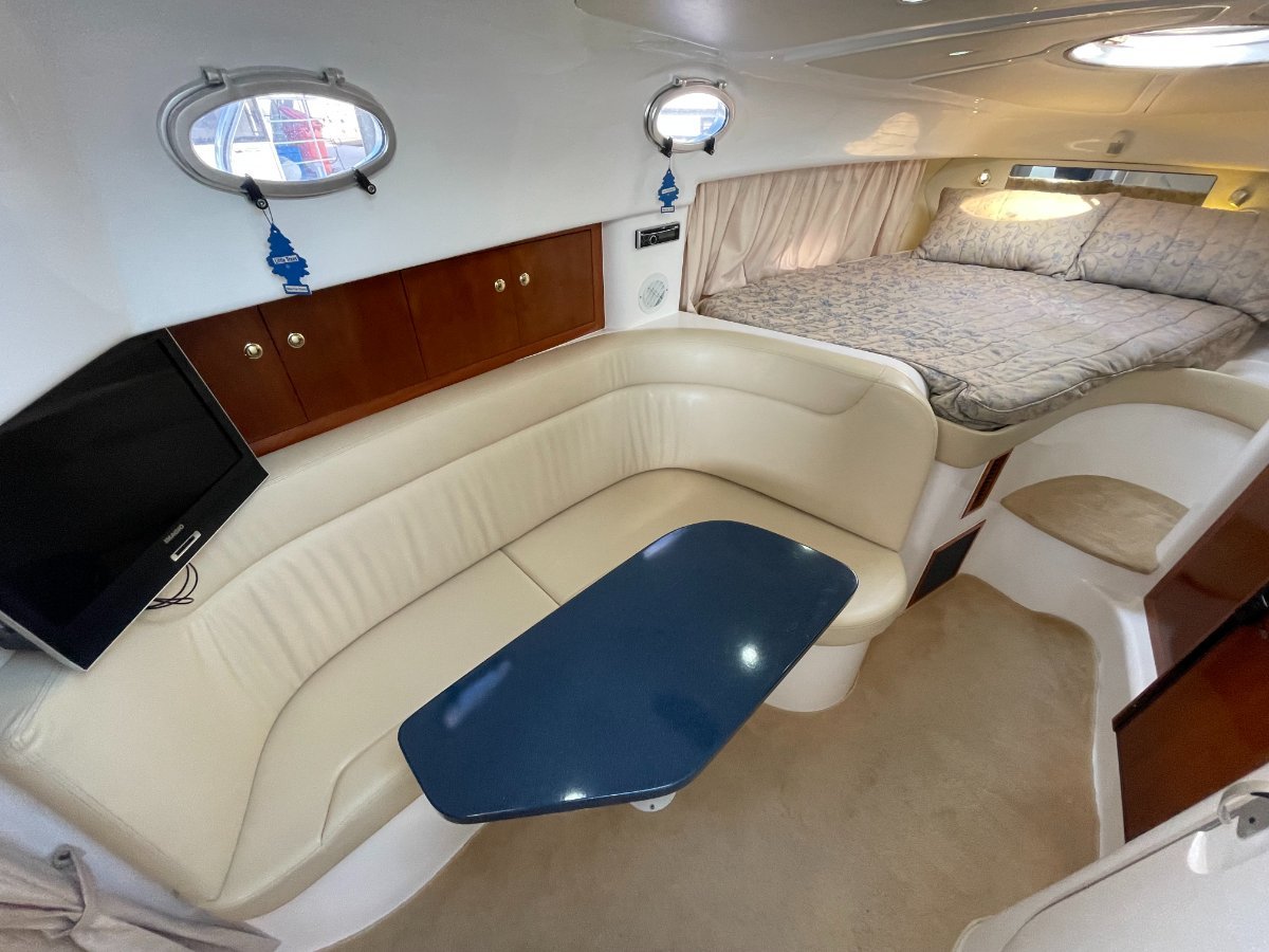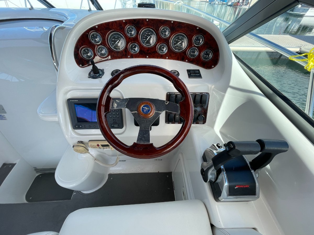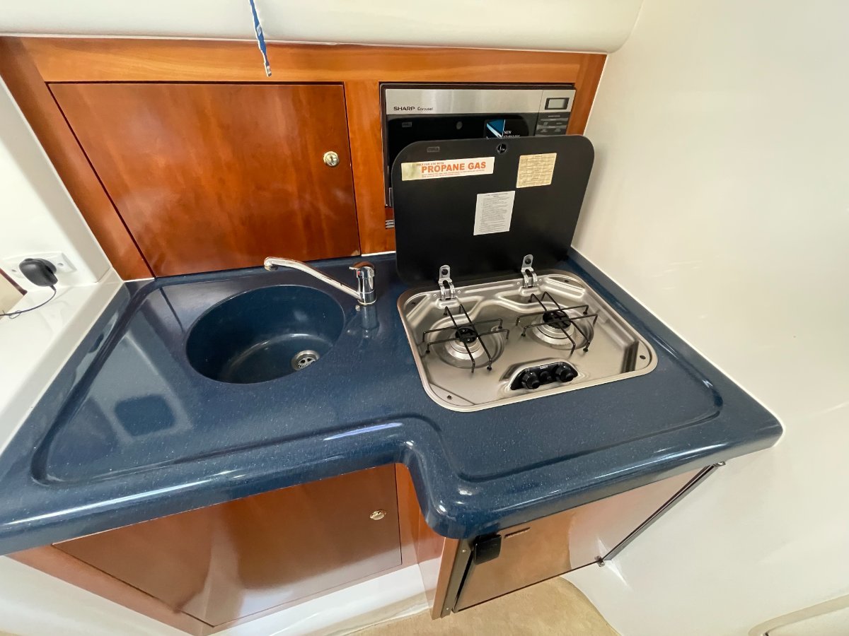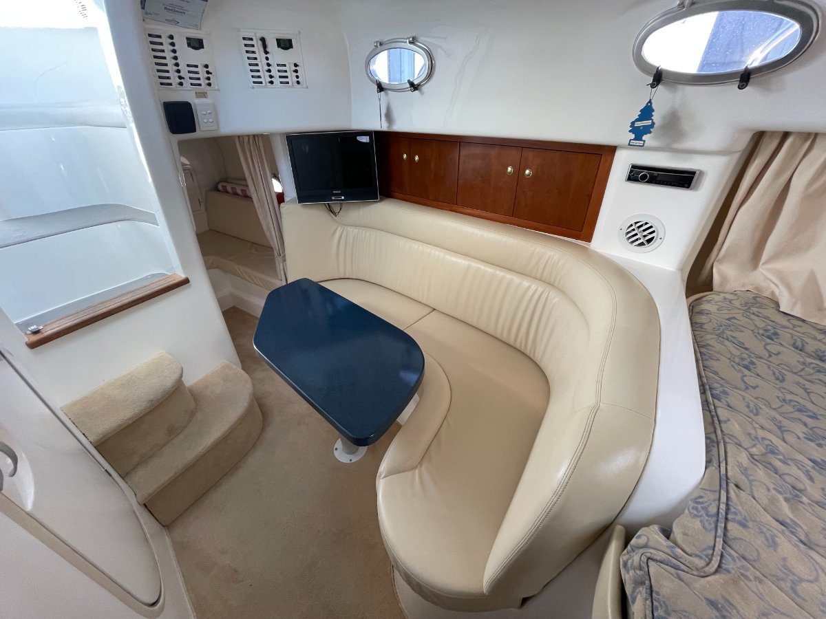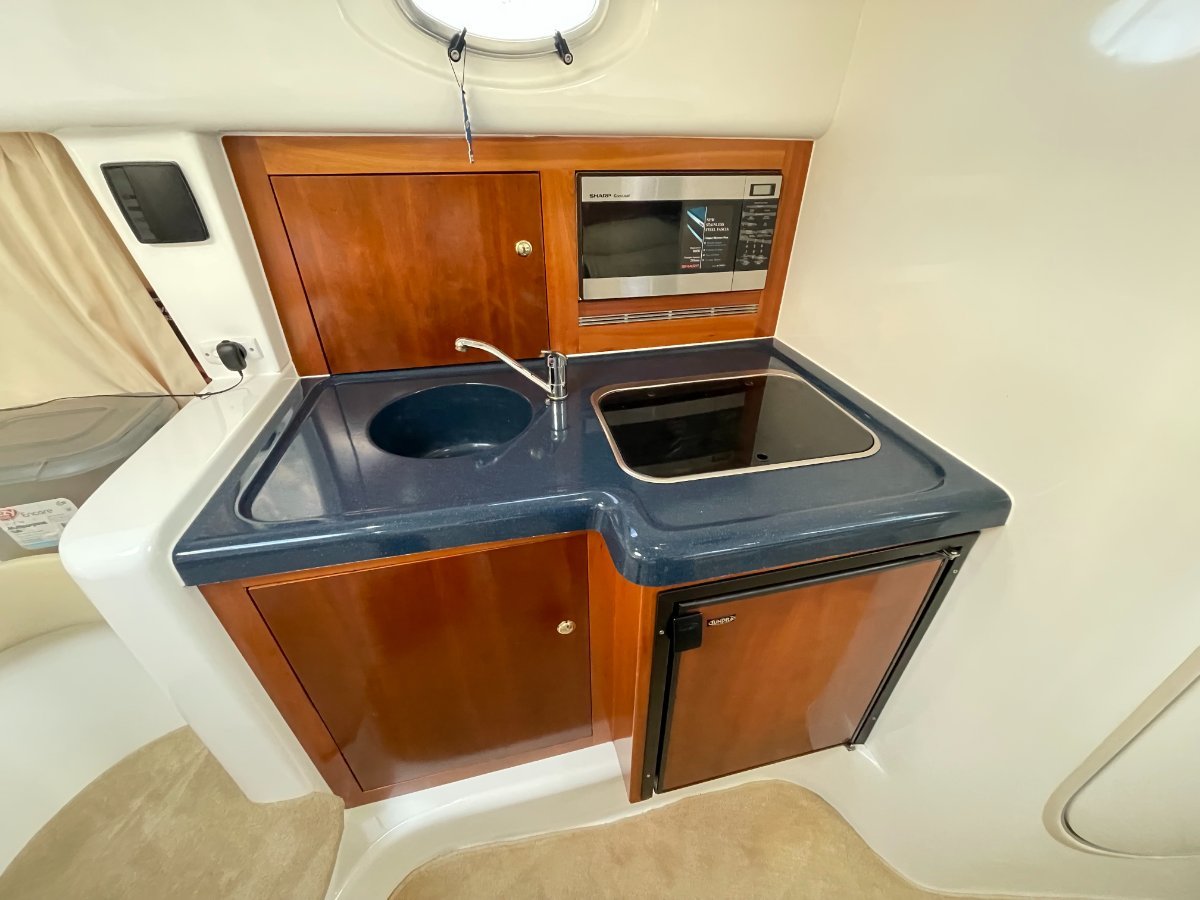 This Sunrunner 3300 is one of the best-finished sportscruisers on the market and is the "Ultimate Family Entertainer:", geared for lifestyle and comfort, it's impossible not to be impressed!! Simply stock up the fridge and esky, cast off and enjoy all this unique vessel has on offer. Above the waterline her shoulders are broad, below deck the headroom is high.... She's a big volume boat designed and made in Australia and has been a popular boater's choice for over 20 years - renowned for their practical layout and comfortable interiors. On deck the open cockpit offers great entertaining plus alfresco dining and features comfortable lounging for 8-10 adults, a wet bar with generous icebox and is sheltered from the elements with covers and clears. **PLEASE NOTE** please note all the canopies and clears (excl rear storm cover) will be included in the purchase price or alternatively the quoted value by a professional marine trimmer can be deducted from off the purchase price. Stepping inside, the stylishly stunning saloon is light and bright, and hatches are naturally well ventilated, the modern features include gorgeous timber trims throughout. The saloon is dominated by the huge dinette located to Port with ample seating for 5 in comfort. An impressive Galley is located opposite and features Corian benchtops, stove, microwave, fridge, H/C water, ample bench space and oodles of storage. Ideal for two couples or a family to cruise in comfort, this big volume sports cruiser with all the comforts of home offers accommodation for four persons easily in the luxurious offset queen size forward berth with full privacy curtain and the spacious double berth is located aft, complete with well-designed settee located adjacent. Adding to those noted comforts would have to be the private bathroom with toilet, H/C shower and vanity. At the Helm you are spoilt with excellent visibility and quality electronics with engine instrumentation, Furuno GPS, bow thruster control, VHF Marine Radio and more all at your fingertips!! The large bow area is accessed by either the walk-around side decks or through the centre window. Storage exists in various side and deck hatches, under the lounge bases and add the aft garage and you should be able to stow a trolley-worth of gear without messing the cockpit!!o Powered by twin Mercruiser V6 4.3Ltr "Fresh Water-Cooled" Engines - Low Hours o Genset, Air Conditioning & Mounted TV - for added comfort aboard.... o Stainless Steel Stern Rail with BBQo Large Teak Transom Board with Secure Transom GateWith luxuries that set her aside from the rest and only one owner since new, these quality production vessels are few and far between in today's current market. Take advantage of this great opportunity to secure this fabulous beauty of a boat that ticks all the boxes and boasts style and comfort to suit everybody.... The boat is on display at Saggers Marine Sales Jetty. o We Buy, Sell & Trade Boats Too!If you require any further information, please call the Office: (08) 9511 4911o Email enquiries - might not be answered for several days!*** Is your vessel for sale? - Is it getting maximum exposure? - We can Help.... Speak to our professional team today!DISCLAIMER:o This description has been prepared for advertising and marketing purposes only. o All prospective purchasers should carry out their own due diligence and if required, engage qualified third-party inspectors. o Saggers Marine have used their best endeavours to ensure the information contained herein is correct and provides this information without any express or implied warranty as to its accuracy.