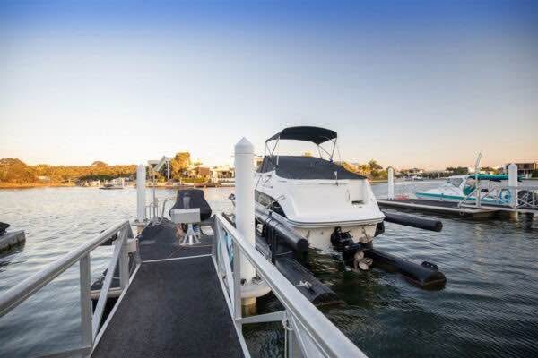 First time offered. Genuine One Owner, very low hours. Seats 8 above deck, and 5 below deck, and sleeps 4 below, load rated 12 persons. 2 Showers, toilet, galley and kitchen. V-Berth bunk up front with rear giant double bed. Lounge above also. Special factory order with 5.8 Multi-point injected 350 horsepower. with Mercruiser stern-drive, fast and powerful and well suited for skiers. Counter rotational propulsion too. Hot and cold water. An abundance of other features. Stainless steel winch and chain. All weather covers and bimini. Been stored above water, [not immersed], on Air-Berth. Note! Does not come with air berth or trailer. PRICED TO SELL VERY QUICKLY, AS VESSEL IN ABOVE AVERAGE CONDITION.