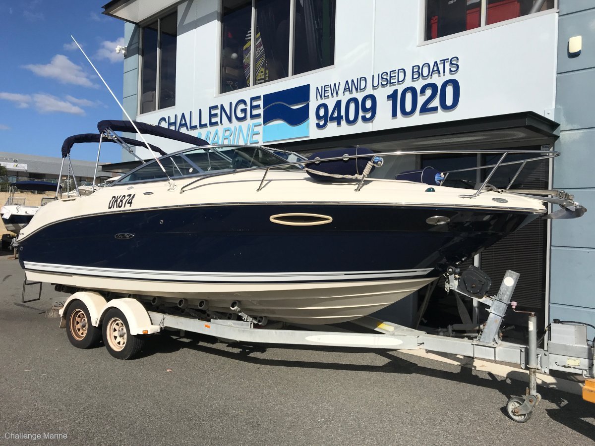 This boat has come full circle as Challenge Marine ordered this special build for it's first owner in 2006 and i still remember the handover test drive. Powered by the top of the option list 6.2ltr MPI 320hp Bravo 3 duo prop for grip, showing 470 hours and serviced in March this year. Manifolds and Risers also recently completed. High option list including electric anchor winch, Raymarine sounder / gps, Stereo, vhf, fresh water, toilet, great shade and flexible seating arrangements. No flares or Epirb included as expired. These boats are like the bulldog of small cruisers, built tough yet not too big to handle. An easy tow at around 2800kg on trailer and sit strong on the water with great seak keeping and solid construction that you would expect from a top of the range Sea Ray. This package sits on a tandem electric braked dunbier trailer rated to 3000kg. We have sold many of these in the past but none with this option list for this price. Shouldn't last long as boats are the new toilet paper!On display at Challenge Marine - Perth's Leading Used Boat Destination - 30 Berriman Drive, Wangara, WA 6065 PLEASE NOTE - offers via email prior to physically viewing the boat or discussing the boat with us in person may not be replied to or considered. Please call us on the numbers provided to discuss genuine offers. We are happy to trade your existing boat so let us know what you have! - We also have great rates for interstate transport so please call for a quote. Need your boat sold? Call us today to find out how cost effective and hassle free it can be. We are more than happy to provide price appraisals obligation free. At Challenge Marine we get results! We don't just collect listings, we sell Boats! - Check out our Google Reviews and Facebook Reviews to see how we do business. While every effort is made to provide accurate information about our listings we accept no responsibility regarding its accuracy and purchasers should always undertake an independent mechanical / hull inspection by qualified personnel. Boats always wanted to meet demand.