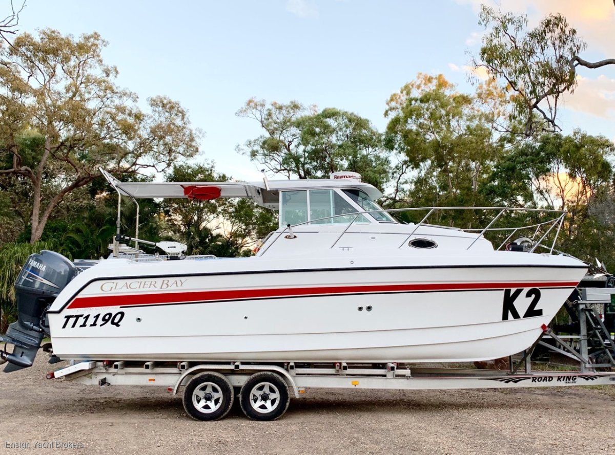 The Glacier Bay 2680 Cuddy Cabin features Large double berth & Toilet up front. Raymarine electronics package Dual set up C120/ C80 Sounder 1kw transducer, plotter, Radar, Auto pilot, Bait well, Fish boxes, Ice boxes, fresh water and salt water wash down, Cannon electronic Down rigger, Remote POT PULLER Fish trap crane, Free fall anchor winch, Twin Yamaha 150hp outboards low 480 Hours. All on heavy duty Aluminum glide on trailer. Garaged in shed, this vessel presents top condition.