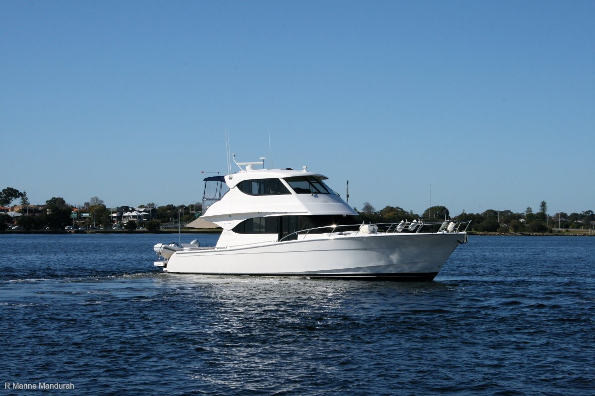 R Marine Mandurah is very pleased to offer this unique boat to the WA market. With twin helm stations and 8 berths this has all the options available to our great boating lifestyle covered. We feel this will not be on the market for long being a boat that is often talked about but rarely seen the suggestion is to act quickly before she is gone !Cote d Azur is a 2008 modelled boat and currently in the hands of just her third owner. Boatman maintained and regularly serviced this is a boat that will happily take you to the Abrolhos Island and back with confidence and comfort. She knows the way having made the journey a number of times with the current family. Featuring a quality fit-out and high spec this will impress with gloss timber finishes throughout, timber floors to the galley, quality carpets through the saloon with clear covers installed, custom manchester and teak to external areas. Recently upgraded electronic software, bow and stern thruster with remote, Yacht Controller, dishwasher, washer dryer, indromar 200lt desal, hydraulic swim platform, underwater lights and a third set of controls on the fly bridge mez for berthing. It's a great list of upgrades and that's over the standard range of quality Raymarine electronics and Maritimo features. Plenty of room for the whole family and their friends with a triple cabin twin bathroom layout. Sleeping for eight is a breeze when using the converted table in the enclosed fly bridge. Clip in the full black out fly bridge curtains and you will never have a better night's sleep. Beautifully finished through the saloon with leather lounges port and starboard, quality curtains and head linings with plenty of storage cleverly built into the boat. Offering the galley directly off the teak cockpit through double sliding doors opens the boat up as a great entertainer and is packed full of Fisher & Paykal appliances with a four element stove and dishwasher along with an upright Vitrfrigo fridge freezer combination and filtered water outlet. We love our back decks here in WA and this one has to be up there amongst the best currently for sale today. Miles of teak, a huge fridge system built into the transom, Electric BBQ, twin transom doors, Hydraulic swim platform, Stainless railings everywhere, plenty of storage and room to set up a decent table and entertain all weekend or maybe fight that fish of a lifetime with easy deep access heading forward to the bow. Great in nasty weather and outstanding if you chase a big Tuna around the boat. Easy access to a huge engine bay, room to store all your tools, fishing gear, dive gear and so much more. The scale of the engine bay makes the Cummins QSM-11 engines look small ! Serviced in Dec of 2018 they are showing just over 900 hours and happily push the boat along at a 20 knot cruise with great economy. Push the throttles forward and she should tip 30 knots with a clean hull. I couldn't see anything out of place below decks and the pile of invoices would seem to back up the maintenance of the boat thoroughly. Recent service works :Water maker service Jan 20Teak brightened Jan 20Engines and Genset - Dec 2019Anti-foul and prop speed - June 2019Polished - June 2019New batteries throughout - Feb 2019All engine hoses - Feb 2019Winch servicedElectronics software upgradedCoolers - Oct 2015She is all ready to go !Looking for that next special family boat ? The Maritimo M52 has a lot to offer your family and may not last long on the market. Why not arrange an appointment through Paul on 0427 949 293, Trevor on 0456 949 293, Carl on 0407 949 293 or contact the Office on 9583 5355.With a lifetime invested in the WA Marine Industry at all levels and thousands of boats sold Paul Denboer and the team at R Marine Mandurah WILL sell your boat and are proud to offer a NO SALE NO FEE structure to all our valued clients. Why entrust your precious boat to just anyone !R Marine Mandurah, Experience the difference for yourself, see why our clients are speaking so highly of the R Marine Mandurah Team