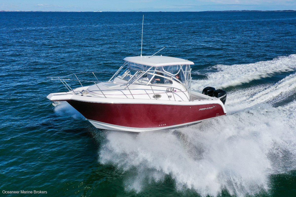 A well sought after all-rounder with very low hours, this Pro-Line 29 Express has just been polished, antifouled and serviced! It is ready to enjoy a range of summer boating activities. Powered by twin Mercury Verado 300HP outboards, giving you a top speed of 40 knots and comfortable cruise at 25. With only 240 hours on each motor, there is years of trouble-free boating to be done! The helm is set up with a Garmin EchoMap 9" touchscreen plotter/sounder combo, Northstar M84 plotter/sounder combo, Mercury power steering and electronic throttle controls with an adjustable helm seat and L shape seat to Port. Full clears and storm covers can enclose the helm deck area. The cockpit is spacious with plenty of space for entertaining and fishing, two large fish boxes, a bait well, folding aft seat and large storage lazarette. Down below, the accommodation is surprisingly spacious and well-appointed, featuring a decent galley with a 12V fridge/freezer, stove and sink. The forward V-berth doubles as a dinette that converts into twin singles or a double bed. To the starboard side there a fully self contained bathroom with a shower and head. Lastly, there is an extra double bed aft situated beneath the helm deck. It would easily accommodate 2 couples or young family for a weekend stay. This vessel has recently been polished, anti-fouled and serviced ready for your next offshore adventure! A 10m DOT pen is available with the vessel at Fremantle Challenger Harbour. Would suit Boston Whaler Conquest, Robalo, Pursuit, Luhrs, Black Watch, Trophy, Wellcraft, Grady White buyers. Enquire now with Oceaneer Marine! (08) 9243 6373 Tom: 0417 780 566Lochie: 0428 945 211Matt: 0499 449 788