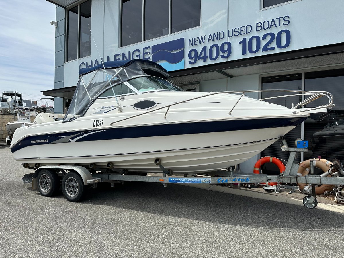 This Tournament 2000 Bluewater 625 is a great example of a good quality Australian manufactured boat. Perfect layout for the family, with its large lock up cabin, rear fold down lounge and still good size deck space for fishing offshore. Features Include:: 2009 Tournament Bluewater 2000 6.25m: 2008 Evinrude 150hp with 168 hours: 2008 Sealink Tandem Axle Trailer: Bimini Top with Clears: Lockable 2 Berth Cabin with complete full bunk infill: Lowrance GPS/Sounder Combo: Deck Wash: GME VHF Radio: 12V: Bait Tank: Rear Fold Down Lounge: Twin Batteries with Isolator: Bilge Pump: Navigation Lights: Cabin Lights: Kill Tank: Bait Board: Boarding Ladder: Bennett Trim Tabs:180 Ltr fuel tankOn display at Challenge Marine - Perth's Leading Used Boat Destination and home to Perth's prestige used trailer boats - 30 Berriman Drive, Wangara, WA 6065 PLEASE NOTE - offers via email prior to physically viewing the boat or discussing the boat with us in person may not be replied to or considered. Please call us on the numbers provided to discuss genuine offers. We are happy to trade your existing boat so let us know what you have! - We also have great rates for interstate transport so please call for a quote. Need your boat sold? Call us today to find out how cost effective and hassle free it can be. We are more than happy to provide price appraisals obligation free. At Challenge Marine we get results! We don't just collect listings, we sell Boats! - Check out our Google Reviews and Facebook Reviews to see how we do business. While every effort is made to provide accurate information about our listings we accept no responsibility regarding its accuracy and purchasers should always undertake an independent mechanical / hull inspection by qualified personnel. :
