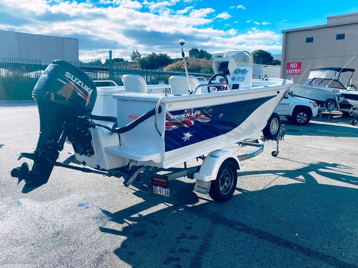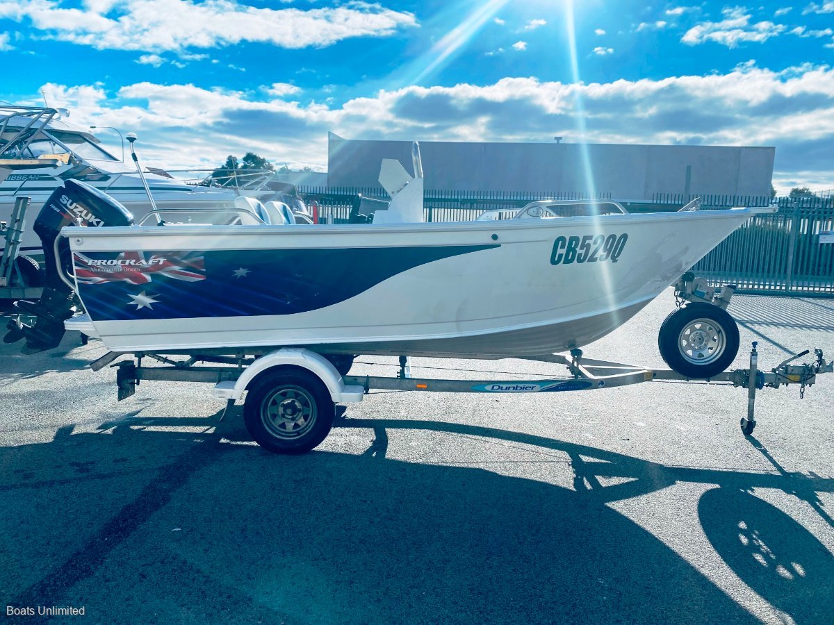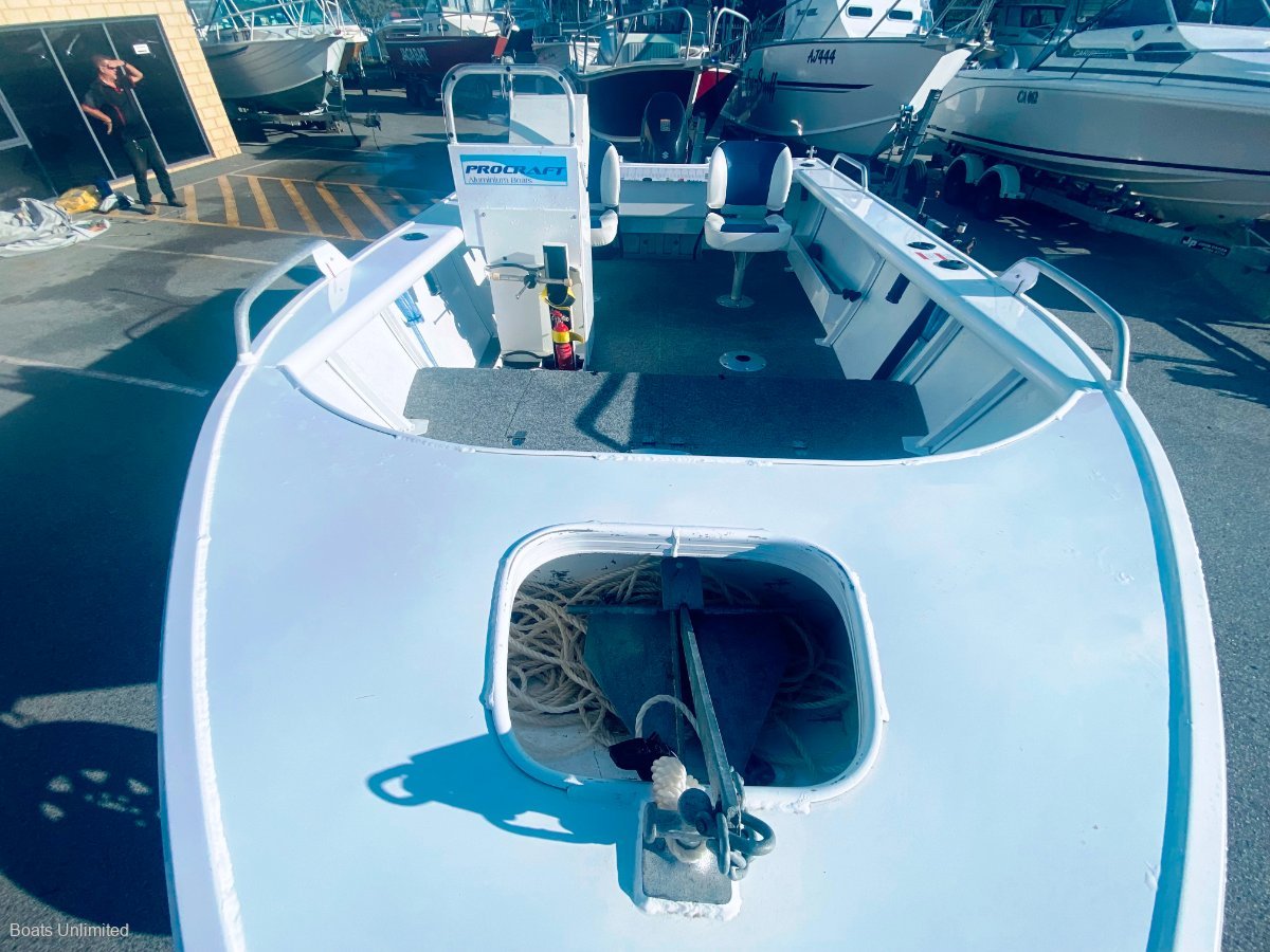 PROCRAFT 470 SIDE CONSOLE IN BRAND NEW CONDITION HERE NOW !!!! THIS BOAT IS AN ABSOLUTE CREDIT TO ITS OWNER WITH ONLY 25 HOURS ON THE SUZUKI 50 HP 4 STROKE ENGINE !!!SHE STILL HAS A PERFECT PAINT JOB FROM NEW AND INCLUDES A LOWRANCE GPS / FISH FINDER, REMOVABLE SEATS TO CHANG TO DIFFERENT POSITIONS AROUND THE BOAT, AMPLE STORAGE COMPARTMENTS INCLUDING BIG UNDER FLOOR WELL. THE BOAT IS SITTING ON VERY EASY TO HANDLE DUNBIER SINGLE AXLE TRAILER WITH MECHANICAL BRAKES. THIS BOAT IS NEAR ON FAULTLESS AND WILL NOT LAST LONG !!!