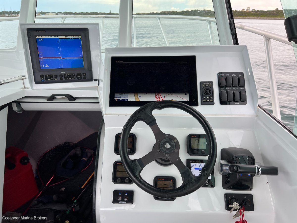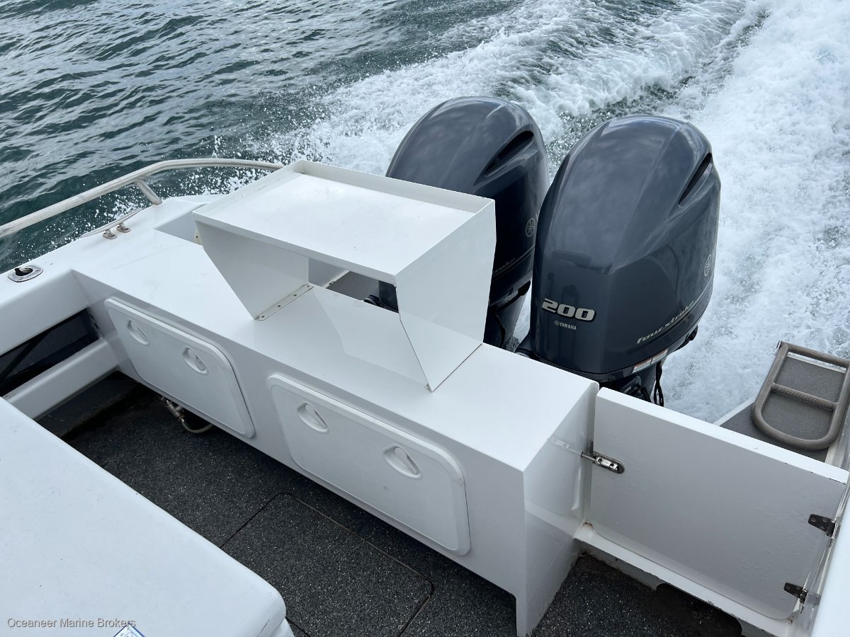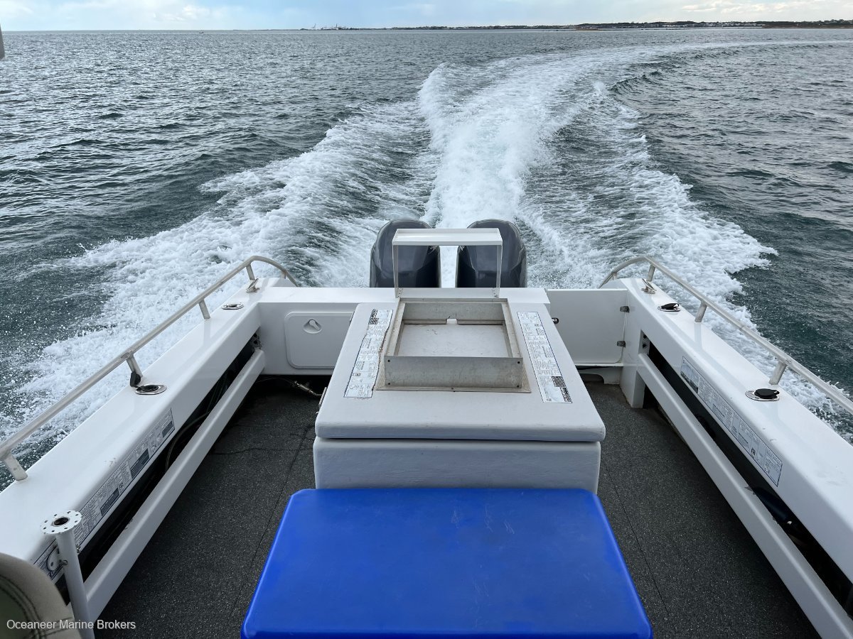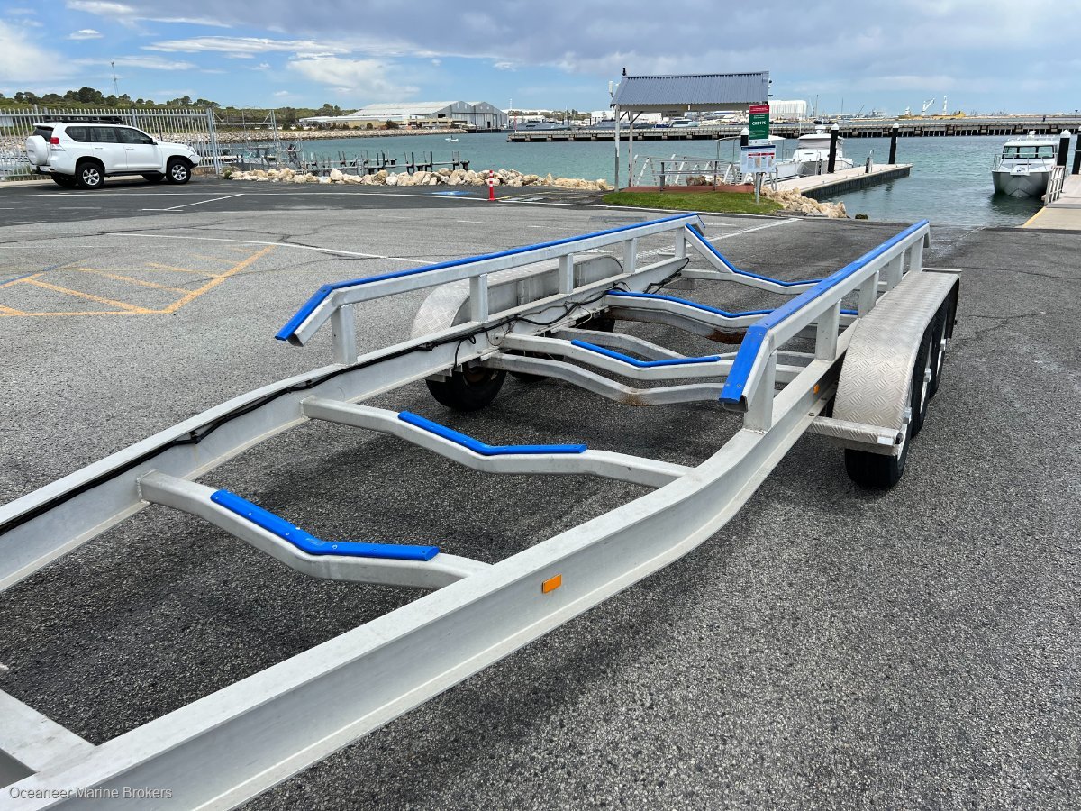 This Air Rider comes in a highly desirable Trailer Package Deal!The Air Rider hull is well established and is the product of continual development from its inception in the early 2000's. The stability provided by the tri-hull shape is amazing, as you step foot on the vessel you'll notice very little heeling if any at all. When at rest in sea state, the vessel shows considerable less roll than a traditional mono hull. When underway, the vessel launches out of the water, reducing drag and providing a more efficient, softer cruise. When the vessel was put to the test during our pre-sale inspections, we achieved 40 knots at WOT and economic cruise of 25 knots burning 42lph combined. The twin Yamaha 200HP outboards were serviced in August by Performance Marine, annual services have been diligently completed despite the vessels low 154 hours on each side. This vessel is set up for the avid fisherman, with a Furuno FCV 1150 Sounder, 15" Furuno NavNet TZT2 Multi-Function Display (Sounder, GPS, Plotter), Furuno Sat Compass SC-30 and Furuno Autopilot system. The NavNet system runs off a 1kw 200hz transducer and the FCV1150 runs a 2kw. There are 4 electric reel connection points (2 each side) linked to the two house batteries (all batteries replaced 2022). The forward Vee is spacious enough to place in-fills and convert to a double, currently it is set up as additional storage. With the 650 litre fuel tank, you have a whopping 370 nautical mile range at 25 knots. Oceaneer Marine is WA's most active commercial and recreational vessel specialists. We specialise in the sale of new and pre-owned vessels. If you would like more information, please contact Lachlan Boyd, Tom Lovelady or Matt Lovelady at Oceaneer Marine Brokers. Interstate and overseas buyers welcome, vessel is able to be delivered anywhere in Australia by road or sea freight at Purchaser's cost. Please enquire for insurance, finance and shipping quotes. If this vessel is of interest, we have many more off-market listings that are available to qualified buyers. Just let us know what you require!Office: (08) 9243 6373Lochie: +61 428 945 211Tom: +61 417 780 566Matt: +61 499 449 788(Suit buyers - Coraline, Stagg, Jackman, Razerline, Bar Crusher, Surteez, etc. )