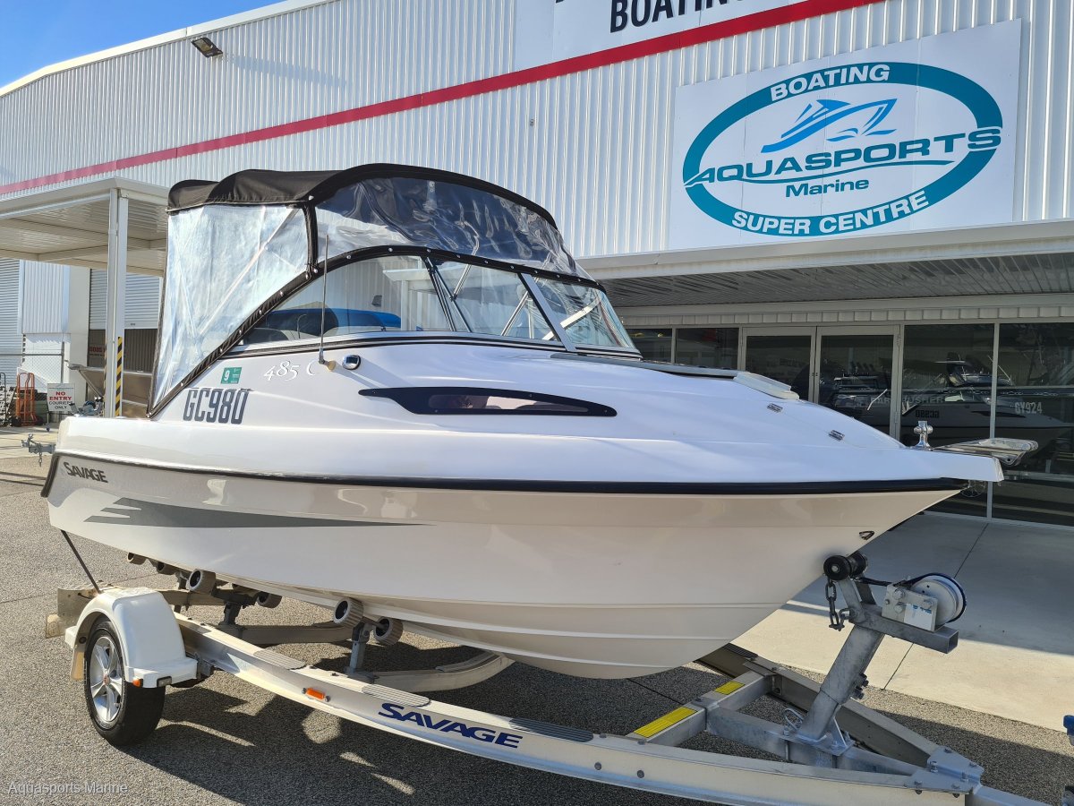 A very tidy Savage cuddy cabin that wont break the bank and will allow for hours of fun on the water. The Etec has just had a full service and is neat as a pin so this package represtents great value and will be a trouble free all round package for her new owner. 2014 Savage 485C2014 Evinrude Etec (Approx 100hrs)2014 Savage Single Axle Alloy Trailer Fuel Capacity: 77LFeatures:Lowrance Hook 7 Sounder/GPSGME VHF Marine RadioFusion RA205 Marine StereoBimini and EnvelopeFront and Side ClearsBait Board4 x PFD1sAnchor KitFlares