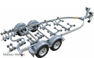 Supa Rolla SeriesThe Super roller series is without doubt an icon of the Australian boating industry. Since its inception over 40 years ago the Supa roller remains at the peak of performance when launching and retrieving. The secret of the Supa Roller lies in 3 key Performance features:Quality and Quantity: At its heart the super roller is made up of a large number of high-grade rollers that work completely independently of each other to follow the complex curves of your hull. Each High-grade roller is a combination of both hard-wearing Nylons that provide stiffness and support and softer compounds that grip and protect your hull. Put very simply the rolling resistance of a super roller Trailer is far less than almost anything else in the market, It's why it launches and retrieves so effortlessly. By cradling the hull of the boat at multiple locations we achieve a great deal. Firstly, by spreading the weight we are protecting the hull and secondly each individual roller carries far less weight so it can roll more easily. For you it means a trailer that you can simply slide into the water no matter the ramp conditions. Keel Free: The Supa Roller, is unique as at no point is the keel supported when being used. The multiple roller arms cradle the hull and guide it into position as the boat rolls on or off the trailer. The hull is cradled along its entire length and as the boat is retrieved the arms and rollers work together to bring the boat into line for a first time, every time retrieval. Cradle Roller Bracket: The Supa Roller has a unique entry cradle that rotates independently of the main frame. By changing the angle of the rear roller arms as the boat contacts and then continues up into the trailer we reduce the effort required by almost 50%. It also means that shallow ramps, beach launches etc are not a concern as the trailer "adjusts" to the conditions on the day. The super-roller is the choice of many across Australia and continues to be our number one selling premium trailer option for fibreglass and plate boat owners alike. The Supa Roller Series boasts our revolutionary "Undercarriage" system, meaning that the entire axle, spring and guard assembly can be moved forwards or rearwards on the main frame. This allows for the precise fine tuning of your trailer to provide the perfect tow weight on the back of your car. With the perfect tow weight comes smooth, effortless towing and greater comfort and safety when you are out on the road. Every Supa Roller is manufactured right here in our Melbourne plant. It's one of the things that sets us apart from our competition and we take pride in every single trailer we build. Other Standard Features:High Grade Australian steel with a Heavy-Duty Galvanised Finish for corrosion protection. Custom Waterproof LED Lighting system with a "Joint Free" wiring loom that won't let you down. Heavy Duty "Swing up" jockey wheel as standard. Stylish UV stabilised mudguards that will not corrode and are virtually unbreakable. (Choose from Black, Silver or White)Australian Standards Approved Couplings for security when under tow. Pre-Machined 15MM Brake rotors (where fitted) and 150MM Heavy duty Non-Braked hubs to keep you rolling out on the highway. Bearing Protectors and High-grade Automotive seals that won't let you down. High Grade Light truck DOT Approved tyres as standard. Galvanised U-bolts, nuts and plates throughout. Matched Strap Winches that won't bind on the drum. Dunbier " Undercarriage System" for fine tuning of your trailer balance. MIDWAY MARINE 43 HURRELL WAY ROCKINGHAM WA 9527 6963 www. Midwaymarine. Net. Au COME INTO OUR YARD AND LOOK AT ALL OF OUR STOCK ON HAND WE ARE AGENTS FOR FISH HUNTER BOATS, REVIVAL BOATS, SEA JAY BOATS AND HAINES HUNTER BOATS WE SELL NEW AND USED BOATS, NEW MERCURY OUTBOARDS, DUNBIER AND MACKAY TRAILERS AND ALL THE PARTS YOU NEED FOR YOUR BOAT/MOTOR/TRAILER TRADE INS ARE WELCOME! WE SERVICE AND REPAIR ALL BRANDS OF MOTORS GEAR YOUR BOAT UP WITH RAYMARINE, FUSION, GME OR LOWRANCE ELECTRONICS BIA MEMBERS AND BIA APPROVED REPAIRER INSURE YOUR BOAT WITH NAUTILUS MARINE INSURANCE OR CLUB MARINE INSURANCE, AGENTS FOR BOTH LIKE US ON FACEBOOK AND FOLLOW US ON INSTAGRAM