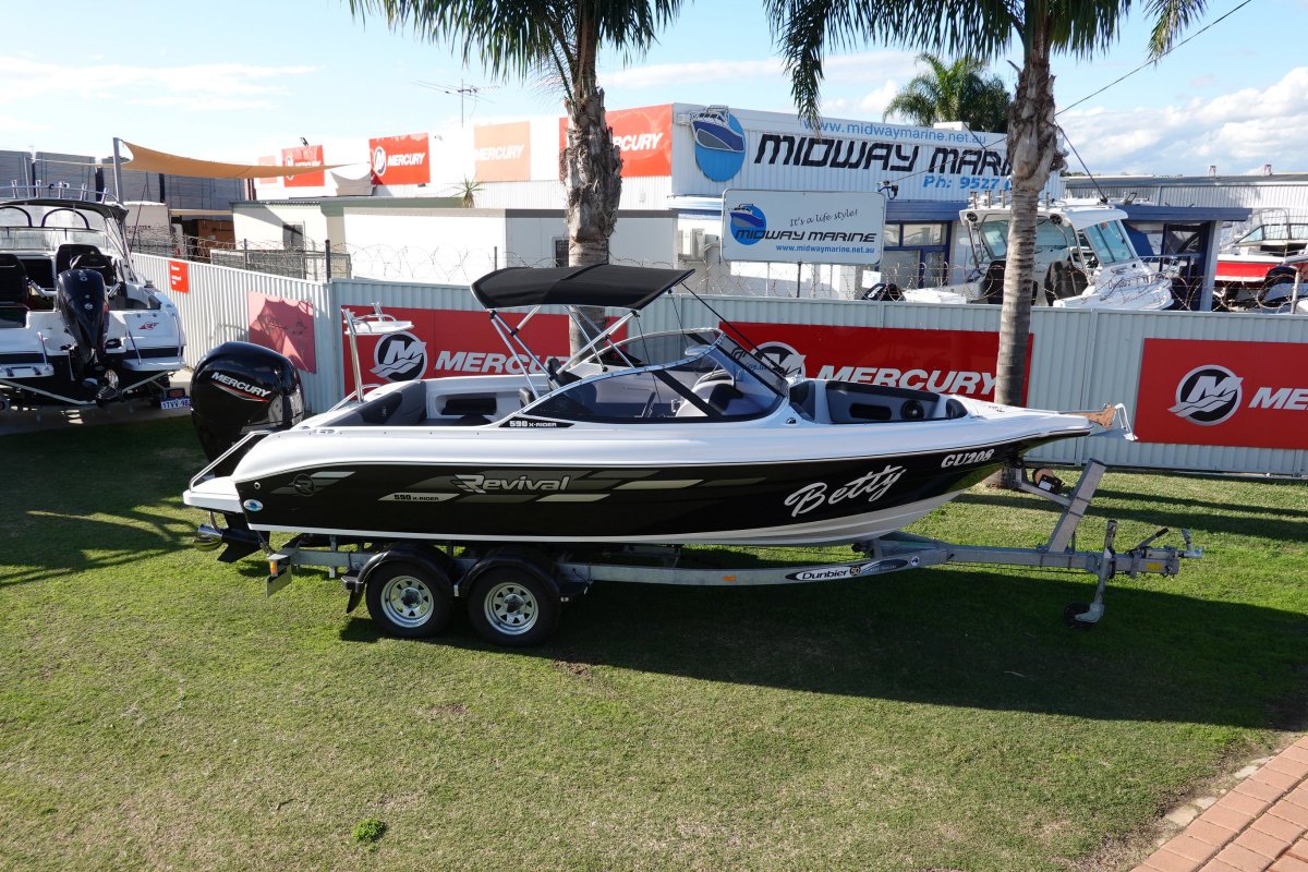 Get on board this 590 X-Rider from revival boats and have some fun!. Fantastic layout with it's great flow of deck space up into the bow, great entertainer and a great alround hull. Launched in 2021, this package has it all for a bowrider. Powered by a 150HP Mercury, h/steering, 9"screen which has engine data, sonar and gps all in one, dual battery system and very low hours on the engine!. Sits on a Dunbier dual axle Loaded series trailer, which makes its easy boating, featuring drive on/off. Comes withInflatable jacketsOffshore flaresEpirbAnchor kitFirst aid kitFusion stereo system with 4 x 6"speakersBimini with storage sockFront bow coverTravel cover130ltr fuel tankSki pole with bait boardFresh water bladder with pump and hose/triggerNav lightsNice removable rear loungFront infill in bowSki lockerUnder floor storageWalk thru transomRear platforms and ladderBig glove box, which has a VHF fitteds/s drink holdersLED lightingTable with two locations for mounting12v outletsBig storage bin on transomFull boat cover is also included. ON DISPLAY NOW! . Check out the Standard Features on the boat! STANDARD HULL FEATURES... · Anchor Storage Compartment with Lockable Lid. · Composite Fibreglass Stringer System with Moulded Liner · Foam-filled Hull · Hand Laminated Fibreglass Hull and Deck · High Quality Gelcoat Hull & Deck (Std Colour is Ultra White Premium) · Rear Tow Eyes - Stainless Steel (2) STANDARD DECK FEATURES... · Bollard Split - Stainless Steel · Bow Sprit (Moulded) with Large Stainless Steel Bow Roller · Large Bow Seating Area - Moulded Fibreglass · Bow Pull-Up Cleats - Stainless Steel (2) · Rear Pull-Up Cleats - Stainless Steel (2) · Rear Lift Out Door Step Through to Cockpit (Portside) BOW RIDER ZONE FEATURES... · 3" Bow Cushions upholstered in Vinyl · Padded Backrests with Upholstered Storage Pockets · Underbunk Storage Below Upholstered Bunk Cushions STANDARD FLOORING... · Gelcoat Fibreglass Floor - Ultra White Premium Gelcoat STANDARD COCKPIT FEATURES... · Cockpit Side Pockets - Fibreglass Gelcoated White with Upholstered Vinyl Panels · Console Storage Lockers with Large Access Hatches STANDARD SEATING... · Compact Flip Up Helm Seats on Short Fixed Pedestal with Slide and Swivel - Black with Charcoal Trim (Pair) · Upholstered Full Width Removable Rear Lounge on Removeable Moulded Seat Storage Box · Padded Transom Backrest and Upholstered Reart Side Coaming Panels STANDARD STORAGE FEATURES... · Underfloor Kill Tank/Storage Locker - Moulded Fibreglass · Port Side Coaming Storage Compartment STANDARD STEERING... · Hydraulic Steering System - Hydrive Helm and Ram with Flex Hoses and Strain Relief · Multi-Spoke Steering Wheel STANDARD HELM & PASSENGER FEATURES... · Panic Rail for Passenger - Stainless Steel · Dash Top Storage Recess STANDARD ELECTRICAL & LIGHTING... · Concealed LED Lights in Coaming Side Pockets (3 x Port/2 x Starboard) · Navigation Lights · Water-Resistant Switch Panel · 1500 GPH Auto Bilge Pump Hose and Outlet STANDARD WINDSCREEN... · Windscreen Brace (2) · Windscreen (5-Piece Curved) STANDARD FUEL SYSTEM... · Underfloor 130L Polyethelene Fuel Tank with Fuel Sender · Fuel Tank Breathers and Filler Cap in Engine Well STANDARD GRAPHICS & BADGING... · Colour-Coordinated "X-Rider" Graphics - Large Format . WE CAN ARRANGE EASY AND NO HASSLE FINANCE AND INSURANCE TO APPROVED CLIENTSMIDWAY MARINE43 HURRELL WAYROCKINGHAM WA PH: 9527 6963CALL WARWICK, BRENDAN OR SAM ON 9527 6963OR COME INTO OUR YARD AND LOOK AT ALL OF OUR STOCK ON HANDWE ARE AGENTS FOR FISH HUNTER BOATS, REVIVAL BOATS AND HAINES HUNTER BOATSWE SELL NEW AND USED BOATS, NEW MERCURY OUTBOARDS, DUNBIER AND MACKAY TRAILERS AND ALL THE PARTS YOU NEED FOR YOUR BOAT/MOTOR/TRAILERTRADE INS ARE WELCOME!WE SERVICE AND REPAIR ALL BRANDS OF MOTORSGEAR YOUR BOAT UP WITH RAYMARINE, FUSION, GME OR LOWRANCE ELECTRONICSBIA MEMBERS AND BIA APPROVED REPAIRERINSURE YOUR BOAT WITH NAUTILUS MARINE INSURANCE OR CLUB MARINE INSURANCE, AGENTS FOR BOTHLIKE US ON FACEBOOK AND FOLLOW US ON INSTAGRAMPLEASE NOTE - offers via email prior to physically viewing the boat or discussing the boat with us in person may not be replied to or considered. Please call to discuss genuine offers.