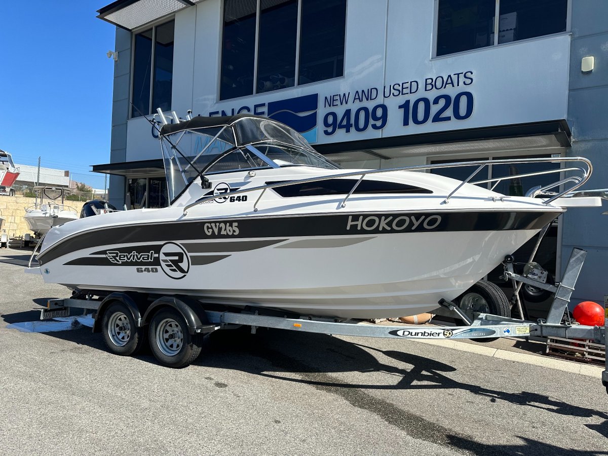 One of WA's favourite 21 footers!!These are the perfect allround boat for fishing Perth, down south or up in our northern waters. Plenty of room for family and friends for cruising the Swan or Mandurah systems. This one comes with the following features:: 2021 Revival 640 Offshore: 2021 Mercury 150HP 4 Stroke only 43 Hours: 2021 Dunbier Multi Roller Trailer with Electric Brakes: Bimini Top with full wrap around clears and 6 tier rocket launcher: Extended shade cover to bimini (getting new canvas fitted): Lowrance Elite FS9 GPS/Sounder Combo: Stainless Custom Bait Board with Rod Holders: Fusion Stereo with Speakers: Electric Anchor Winch: Rear Lounge: Transom Door with Boarding Ladder: Toilet: Bait Tank: Twin Batteries with Isolator Switch: Navigation, Anchor, Cabin and Deck Lights: Seat Box with Tackle Trays: Kill Tank: Boat Cover: Large Cabin Area with complete bunk infill: 200 Litre Fuel Tank: Picnic Table On display at Challenge Marine - Perth's Leading Used Boat Destination and home to Perth's prestige used trailer boats - 30 Berriman Drive, Wangara, WA 6065 PLEASE NOTE - offers via email prior to physically viewing the boat or discussing the boat with us in person may not be replied to or considered. Please call us on the numbers provided to discuss genuine offers. We are happy to trade your existing boat so let us know what you have! - We also have great rates for interstate transport so please call for a quote. Need your boat sold? Call us today to find out how cost effective and hassle free it can be. We are more than happy to provide price appraisals obligation free. At Challenge Marine we get results! We don't just collect listings, we sell Boats! - Check out our Google Reviews and Facebook Reviews to see how we do business. While every effort is made to provide accurate information about our listings we accept no responsibility regarding its accuracy and purchasers should always undertake an independent mechanical / hull inspection by qualified personnel.