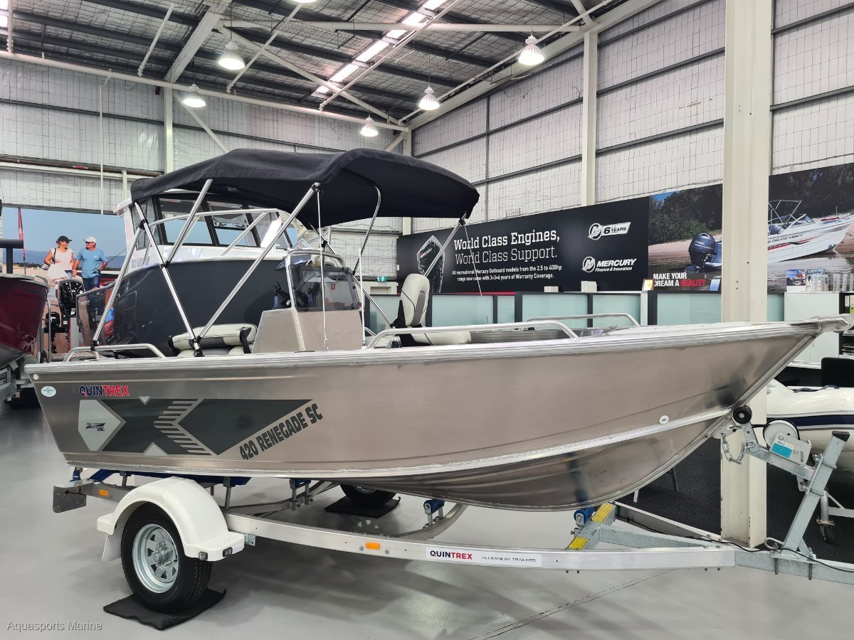 IN STOCK NOW!The 420 Renegade Side Console is a fisherman's dream boat, don't be fooled by its size, with its wide beam- it will happily carry your mates and all your fishing gear. With its innovative new design, the 420 Renegade offers the quintessential fishing experience. Complete package ready to go including:- Yamaha 50hp 4 Stroke EFI Electric start model with power trim and tilt - Other Mercury or Yamaha options available- Aluminium TrailerFactory Options Included- Garmin 75SV Combo- GME VHF Radio- Bimini and Envelope- Thruster Bracket Bow MountStandard Features:Carpeted / PlywoodHelm: Side Console & Mech SteeringAnchorwellBattery BoxBow RollerDrink Holder Fold DownRod Holders (4)Transom Step & RailAlloy Cleat on Front DeckBlade HullCasting Platform Rear & LBTCentre Console DeckSide Decks ExtrudedSide PocketsSmooth TopsidesTransducer Brackets x 2Side RailsSeat Positions (3)Seats: PedestalSpecifications:Length Maximum - 4.42mBeam - 2.09mMax. HP - 50hpNumber of People - 4Boat Weight - 371kgMotor Weight - 130kgTransom Shaft Length - LSTop Sides - 3mmBottom Sides - 3mmTransom Material - 3mm08 9250 3339NB - Photos for Illustration purposes only, may include options not included in price. TAGS:Barcrusher, Genesis, Chivers, Revival, Razerline, Shark, Quintrex, Stacer, Savage, Coraline, Fishhunter