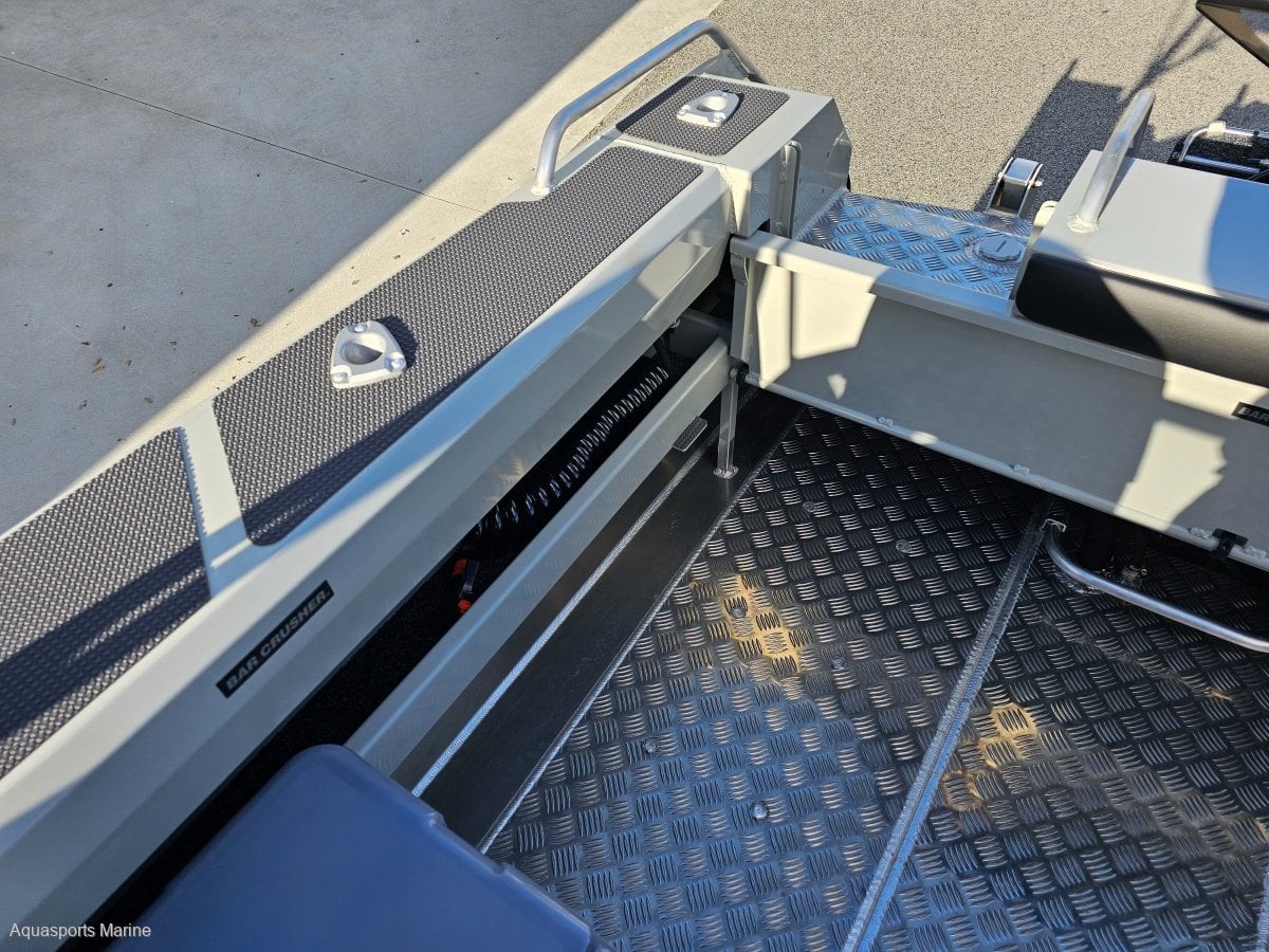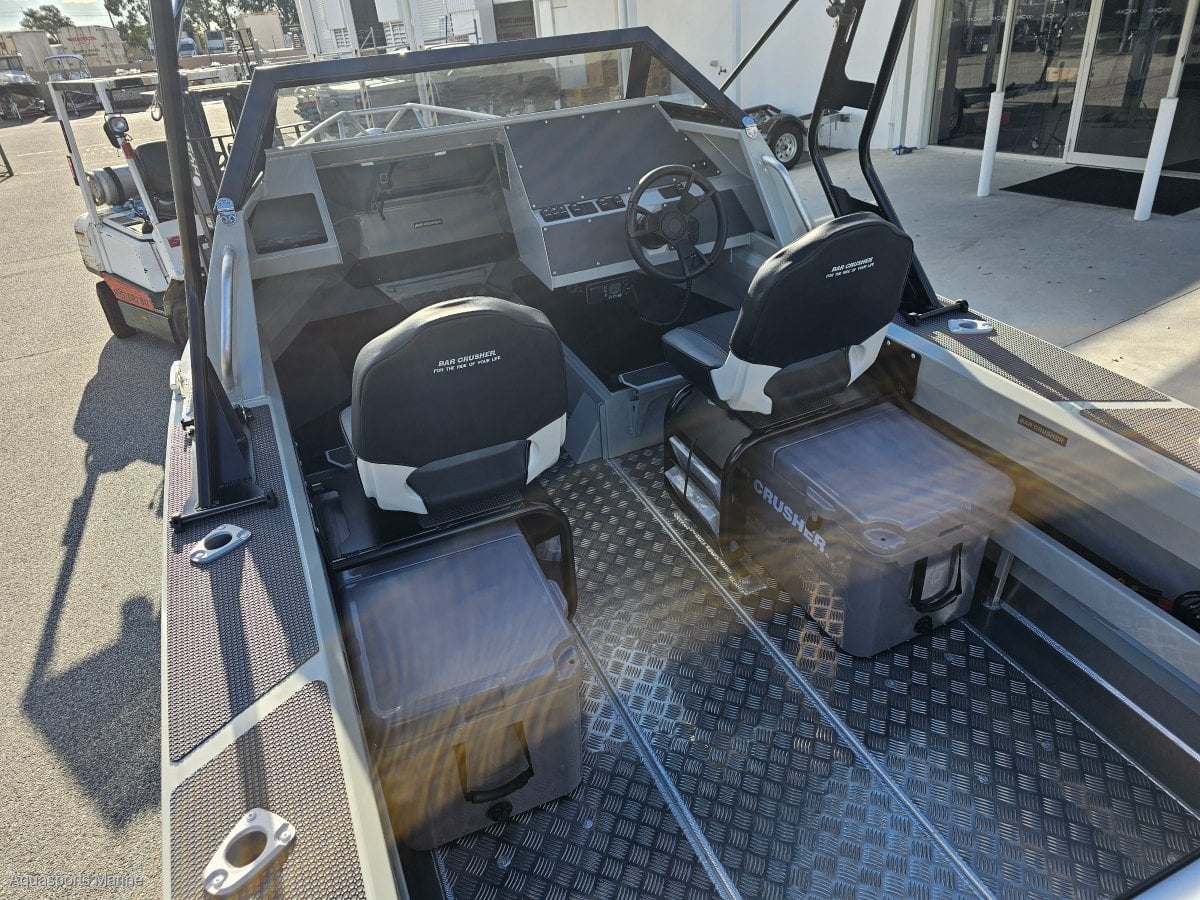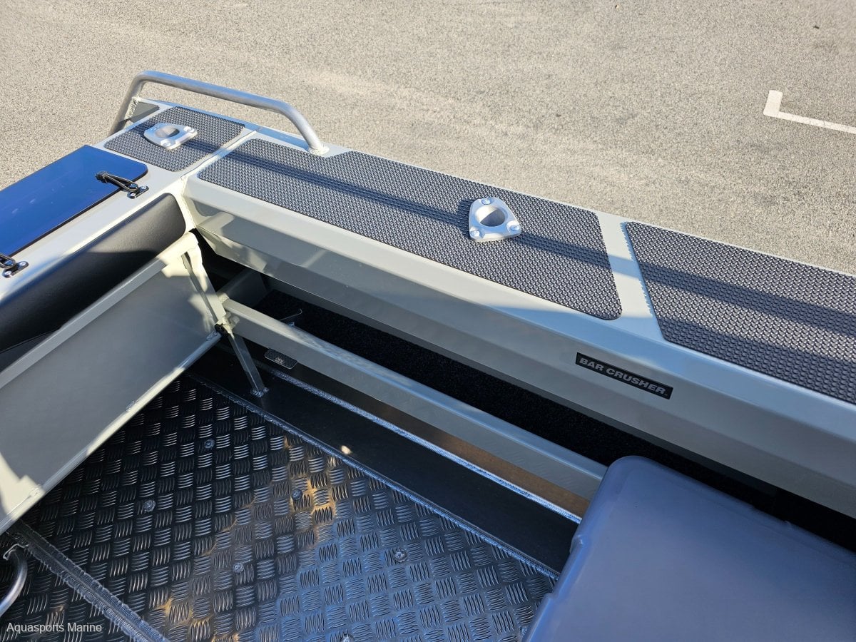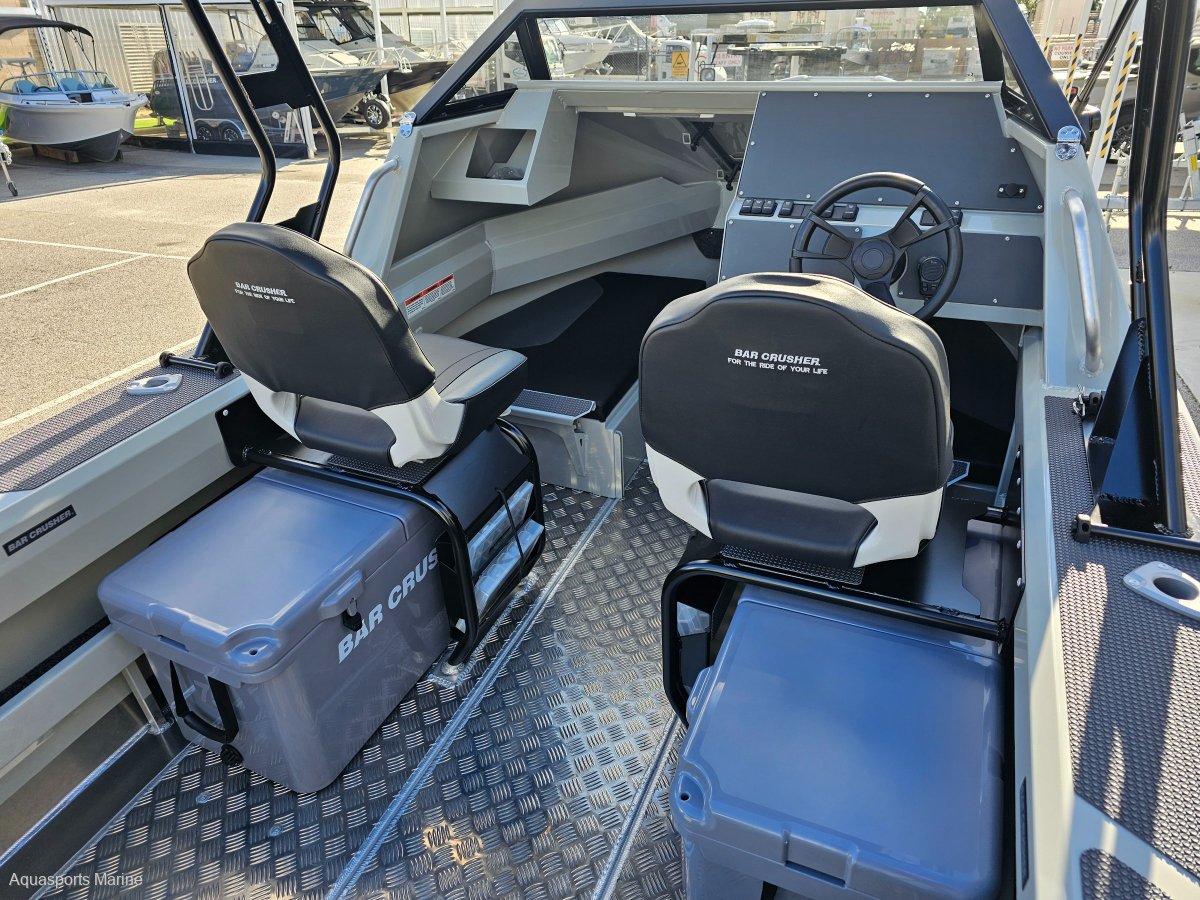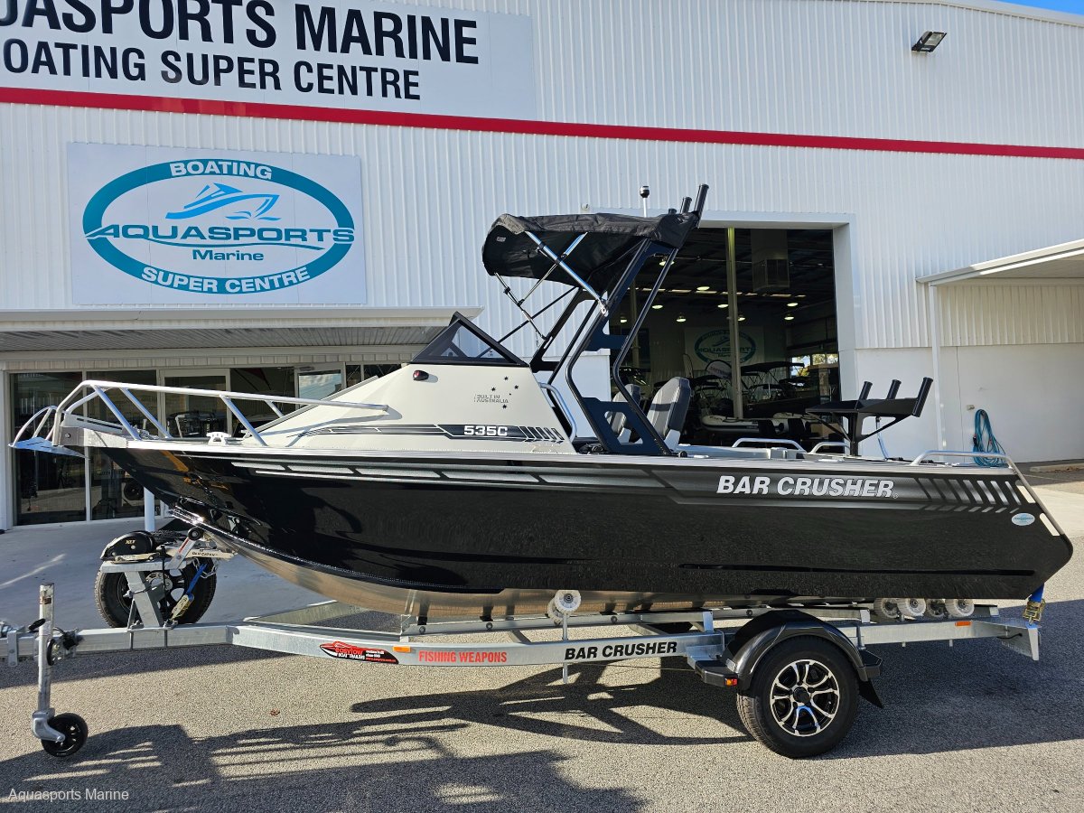 Available to OrderExtra Factory ordered options included:- YAMAHA 115HP 4 STROKE EFI- GME VHF RADIO AND AERIAL- SALTWATER DECK WASH 5.2GPM- PAINTED WHITE- FOLDING TARGA WITH BIMINI- 2 x SIDE MOUNT BOLSTER SEATS- PHOTOS FOR ILLUSTRATION ONLY - MAY INCLUDE OPTIONS NOT INCLUDED IN PACKAGE PRICEBar Crusher 535C standard features include:- ANCHOR DECK FITTING, CLIP AND CORD- SARCA ANCHOR # 2- 2 x SKIPPER SEATS ON SMALL 3 TRAY TACKLE BOX STORAGE- BAIT BOARD WITH INSERT AND DRAIN- LIVE BAIT TANK PLUMBING- PAINT WHITE- 2 x FRONT BUNKS WITH CUSHIONS- HYDRAULIC STEERING- SINGLE BATTERY- 115L UNDERFLOOR FUEL TANK- 6 ALUMINIUM ROD HOLDERS- REAR FUEL FILLER- BURLEY BUCKETBrand New 2025 Model Bar Crusher 535C now available from Aquasports Marine, Perth's complete Boating Centre. "We are excited to be the sole Bar Crusher dealer's for the great state of WA and we are now stocking an even greater range of these fishing weapons. We are here to help you with your new Bar Crusher research, so please, do not hesitate to contact us and see how we can help you get into one of these exciting offshore fishing rigs. Give us a call to find out about our easy finance options. "The 535C is a quality plate aluminium boat that offers hard-to-beat value for money. Designed as an all-round fishing and family boat - and constructed from heavy duty, high-tensile 4mm (bottom sides) and 3mm (top sides) marine grade plate aluminium - the 535C a superbly-engineered boat that's ideal for estuary, bay and inshore coastal boating. The 535C measures 5.35m LOA with a 2.15m beam incorporates all the features you expect in a premium plate alloy boat - high-tech Waveslicer® non-pounding, deep-V hull; super-strong Rigideck® sub-floor system with fully-welded checker plate floor; and Quickflow® water ballast technology for superior stability at rest. Built on the evolutionary Gen2(TM) hull design, the 535C hull combines key features including a wider negative chine running forward, optimised wider chine aft and the distinctive Delta Flare(TM) - delivering greater hydrodynamic lift for efficient planing and excellent fuel economy, a higher bow attitude and better spray deflection for a drier ride, as well as increased stability at rest. Note the shape of the Delta Flare at the transom and the distinctive shape of the Quickflow® water ballast outlet. This innovation incorporates a cavity running the full length of the keel that quickly fills with water when the boat is stationary, which lowers the chines into the water for greater stability, and drains in seconds as the boat moves forward to allow it to leap effortlessly onto the plane. Easily managed by people starting out in boating, the 535C feature wide side decks and a functional internal depth to ensure everyone feels secure when out on the water, while the cuddy cabin offers the kids some protection from the elements. Both models have plenty of rod storage in the top decks and bait board, storage under the bunks and a comfortable helm position with good all-round vision. The optional clip-on or removable rear seating provides flexible seating configurations for all on board. Strong aluminium rod holders, toughened glass windscreen, underfloor fuel tank, battery system with isolator switching, rear swim platform with boarding ladder, hydraulic steering, step through transom, comfortable seating with tackle box storage and berley bucket with muncher are among a long list of fishing-related features. If everyone's had enough of fishing, the innovative removable bait board allows a sturdy ski pole to be substituted, to which ropes can be attached for alternative on-water fun. Rated to carry between 70hp and 115hp with 115L fuel capacity including easy access rear deck fuel filler, the 535C is a fantastic entry-level boat for people new to boating or those seeking to step-up to a larger plate boat in a compact, easy-to-tow and easy-to-store package. Every boat is factory-packaged on a custom-designed trailer, which ensures towing, launching and retrieving is a breeze. Self-centering and aligning perfectly every time, the innovative Bar Catch(TM) system also allows for single-handed launch and retrieve. Package Price includes Factory Standard Features, EasyTow Single Axle Trailer and Offshore Safety Kit. 12 Months Licensing and Registration included for Boat and Trailer (Stamp Duty Paid). Let us help you design your own rig, customise you boat with Bar Crushers extensive list of upgradesOutboard Options: Mercury and Yamaha Outboards Available!Electronics Available! We Supply and Fit Lowrance, Simrad and Raymarine at competitive prices!Have a chat with our friendly sales team today to find out more.