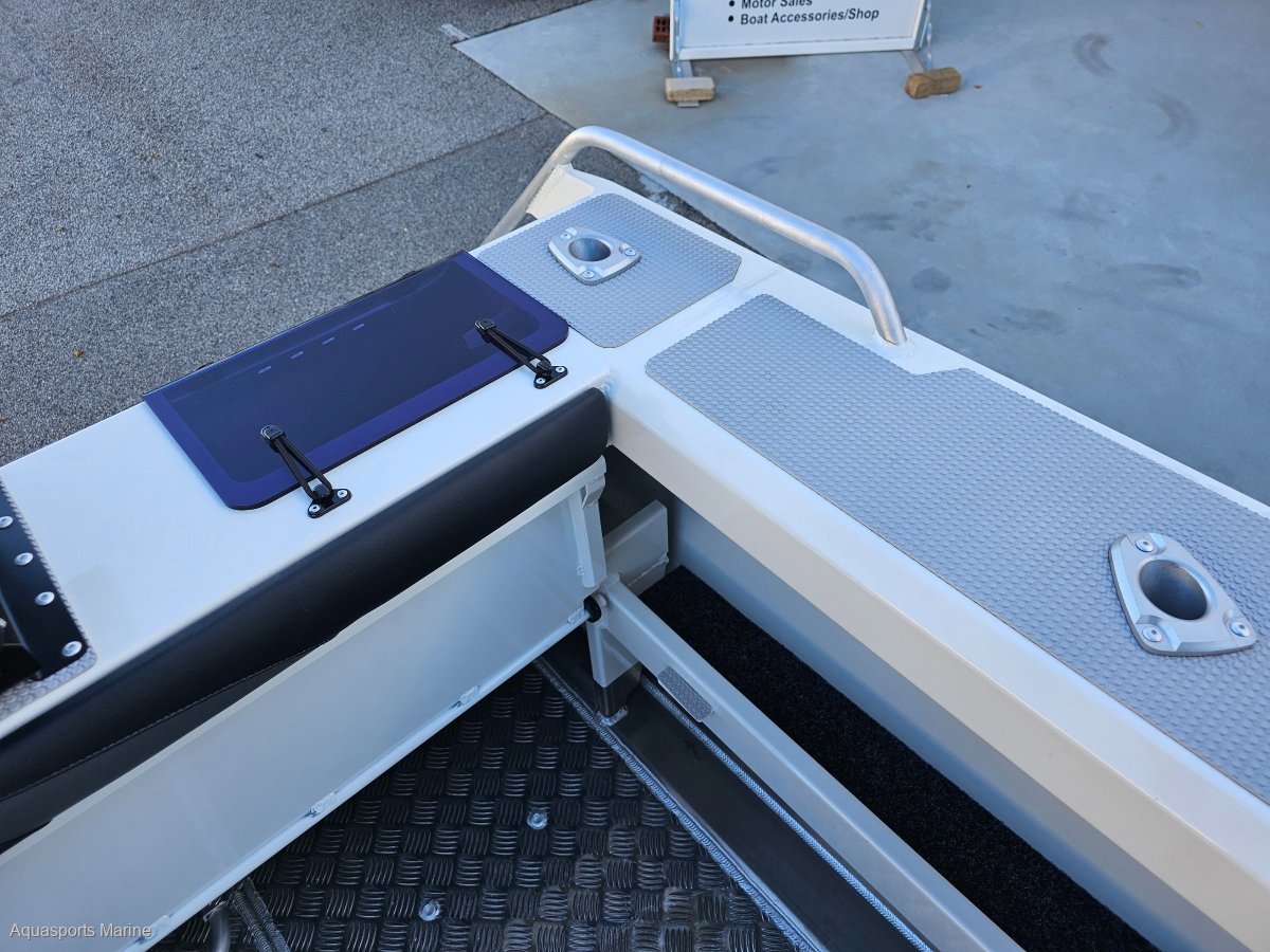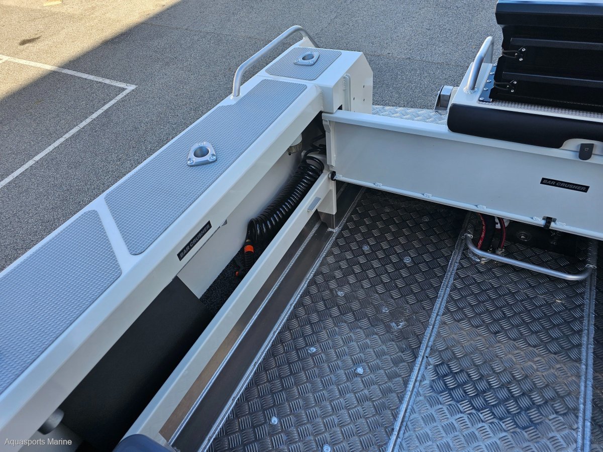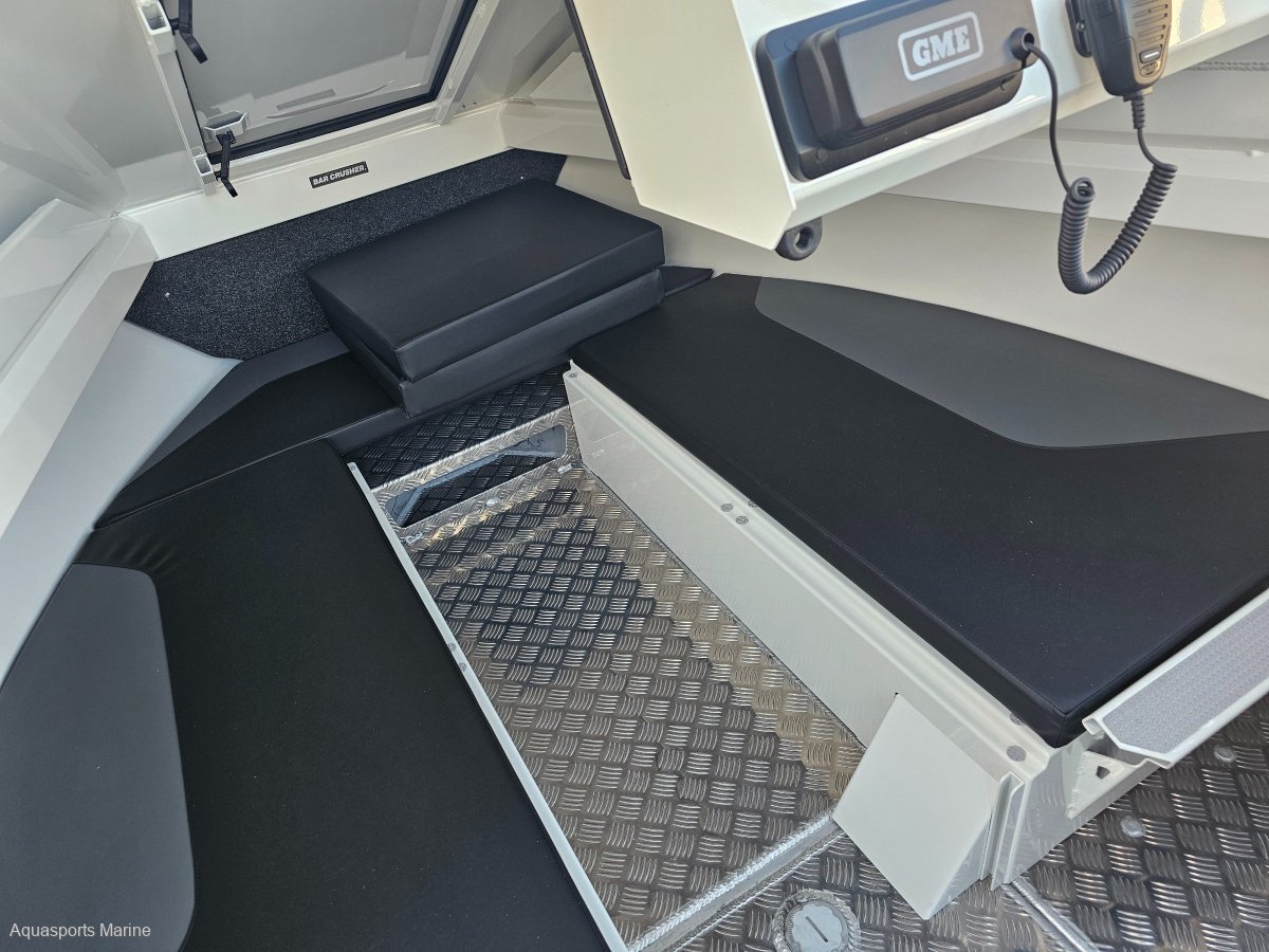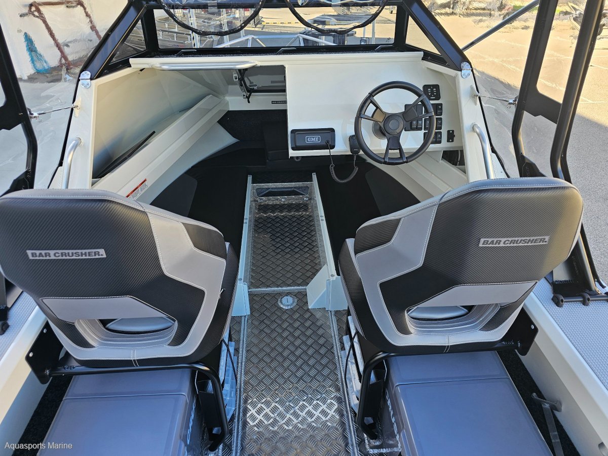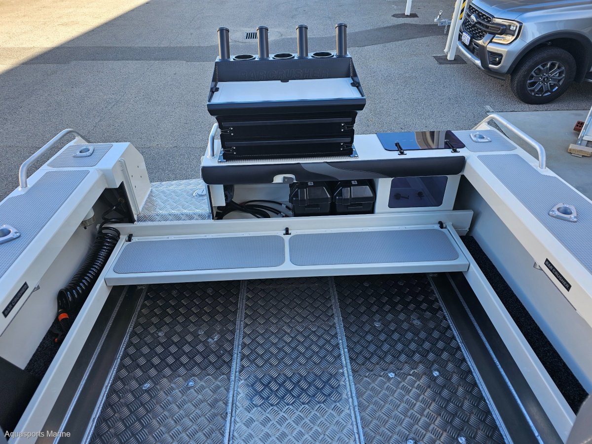 AVAILABLE TO ORDERPRICE WITH MERCURY 150hp EFI 4 STROKE with VESSEL VIEW 403 GAUGE AND STAINLESS PROP- OTHER YAMAHA AND MERCURY OPTIONS AVAIALABLEExtra Factory ordered options included:- MERCURY 150hp EFI 4 STROKE with VESSEL VIEW 403 DIGITAL GAUGE and STAINLESS PROP- EASYTOW GALVANISED DUAL AXLE TRAILER WITH SPARE TYRE UPGRADE FROM SINGLE AXLE- GME VHF RADIO- BALLAST FLAP WITH ACTUATOR - (FITTED)- BOW MOUNT ELECTRIC MOTOR BRACKET- DELUXE BAIT BOARD WITH DRAWERS- BUNK INFILL- SALTWATER DECK WASH 5.2GPM- TRIM TABS LECTRO TABS - (FITTED)- 2 x SIDE MOUNT BOLSTER SEAT WITH 3 TACKLE TRAYS with 2 x ESKYS- SOLID HULL COLOUR SATIN SHOCKWAVE BLUENB - Photos for Illustration purposes only, may include options not included in price. Bar Crusher 615C standard features include:- ANCHOR DECK FITTING, CLIP AND CORD- SARCA ANCHOR # 2- BAIT BOARD WITH INSERT AND DRAIN- LIVE BAIT TANK PLUMBING- PAINT WHITE- FOLDING GAS STRUT ROOF WITH CLEARS- ROCKET LAUNCHER FOR FOLDING ROOF- FRONT BUNKS 615C / 615HT FULL SET (3 CUSHIONS)- 2 x BOLSTER SEAT ON TACKLE BOX- 200L UNDERFLOOR FUEL TANK- 6 ALUMINIUM ROD HOLDERS- HYDRAULIC STEERING- DUAL BATTERIES- REAR FUEL FILLER- BURLEY BUCKETBrand New 2024 Model Bar Crusher 615C now available from Aquasports Marine, Perth's Complete Boating Centre. "We are excited to be the sole Bar Crusher dealer's for the great state of WA and we are now stocking an even greater range of these fishing weapons. We are here to help you with your new Bar Crusher research, so please, do not hesitate to contact us and see how we can help you get into one of these exciting offshore fishing rigs. Give us a call to find out about our easy finance options. "The 615C is an evolutionary version of one of the most popular models in its award-winning range. Designed for inshore and offshore fishing - and constructed from heavy duty, pre-stressed 4mm (bottom sides) and 4mm (top sides) marine grade plate aluminium - this versatile cuddy cabin model is widely acclaimed as the perfect all-round boat for Australian conditions. The 615C delivers an ultra-smooth ride thanks to the high-tech Waveslicer® non-pounding, deep-V hull, while the expertly-engineered Rigideck® sub-floor system ensures maximum hull strength. These two boats are extremely stable at rest, thanks to Bar Crusher's exclusive Quickflow® water ballast technology. The evolutionary Gen2(TM) hull design combines key features including a wider negative chine running forward, optimised wider chine aft and the distinctive Delta Flare(TM) - delivering greater hydrodynamic lift for more efficient planing and improved fuel economy, a higher bow attitude and better spray deflection for a drier ride, as well as increased stability at rest. Note the shape of the Delta Flare at the transom and the distinctive shape of the Quickflow® water ballast outlet. This innovation incorporates a cavity running the full length of the keel that quickly fills with water when the boat is stationary, which lowers the chines into the water for greater stability, and drains in seconds as the boat moves forward to allow it to leap effortlessly onto the plane. Onboard, the 615C's spacious cuddy cabin configuration and fold-away rear bench seat creates a large cockpit fishing area, the generous internal depth will ensure everyone feels secure when out on the water, while the Game Lock(TM) coaming creates a comfortable fish-fighting position. The functional helm station allows for installation of the latest large-screen marine electronics, and the fully-welded checker plate deck is extremely easy to clean after a solid day on the water. Strong aluminium rod holders, live bait tank with plumbing, berley bucket, large-volume storage pockets, rocket launcher, front clear, side clears, bait board, underfloor fuel tank, dual battery system, step through transom, tackle box seat bases, hydraulic steering are just some of the fishing-related features that come standard in these two boats. As with all models in cuddy cabin range, the 615C's folding Targa roof (with front and side clears) provides much-needed protection from the elements while on the water, yet when folded it reduces the on-trailer height to 2200mm for easy storage under carports and in low garages. The 615C is rated to carry between 115hp and 150hp and is built with a 200L fuel tank including easy access rear deck fuel fillerA huge cockpit fishing area, heavy-duty checker plate deck and extensive options list make these boats ideal for serious anglers who want an all round boat that can handle 20 knots of wind chop in the bay, extended offshore trips chasing game fish and family activities on the water such as towing biscuits, snorkeling and skiing. Every Bar Crusher boat is factory-packaged on a custom-designed trailer, which ensures towing, launching and retrieving is a breeze. Self-centering and aligning perfectly every time, the innovative Bar Catch(TM) system also allows for single-handed launch and retrieve. Package Price includes Factory Standard Features, EasyTow Dual Axel Trailer and Offshore Safety Kit. 12 Months Licensing and Registration included for Boat and Trailer (Stamp Duty Paid). Let us help you design your own rig, customise you boat with Bar Crushers extensive list of upgradesOutboard Options: Mercury and Yamaha Outboards Available!Electronics Available! We Supply and Fit Lowrance, Simrad and Raymarine at competitive prices!Have a chat with our friendly sales team today to find out more. TAGS: Barcrusher, Quintrex, Surtees, Fishhunter, Coraline, Chivers, Stabi, Custom.