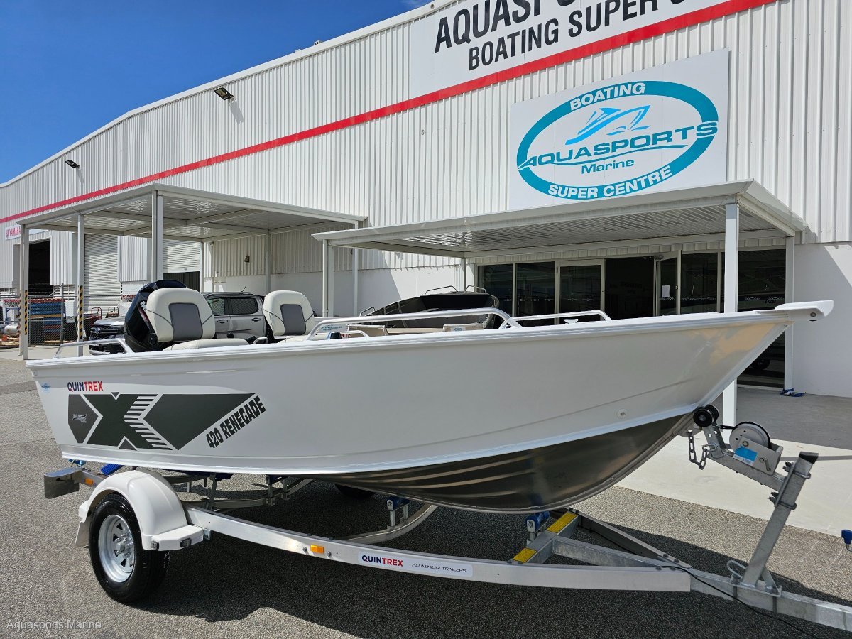 AVAILABLE TO ORDERWhile the smallest in the range, the 420 Renegade TS packs a punch with impressive handling and a clean design to suit every fisho. Complete with carpeted floors and rod holders, this compact Renegade is the no-fuss fishing boat to conquer all. Complete package ready to go including:- Yamaha 50hp 4 Stroke EFI Electric Start Tiller model with power trim and tilt - Other Mercury or Yamaha options available- Aluminium TrailerFactory Options Included- Thruster Bracket Bow Mount- Unpainted Hull - White Hull Upgrade $1265- Inshore Safety GearStandard Features:Casting PlatformAnchorwellBattery BoxBow RollerDrink Holder CupsRod Holders (4)Transom Step & RailAlloy Cleat on Front DeckCasting Platform Rear & LBTCentre Console DeckSide Decks ExtrudedSide PocketsSmooth TopsidesTransducer Brackets x 2Side RailsSeat Positions (4)Seats: PedestalActive Imaging 3-IN-1 TransducerSpecifications:Length Maximum - 4.42mBeam - 2.09mMax. HP - 50hpNumber of People - 4Boat Weight - 371kgMotor Weight - 130kgTransom Shaft Length - LSTop Sides - 3mmBottom Sides - 3mmTransom Material - 3mmNB - Photos for Illustration purposes only, may include options not included in price. TAGS:Barcrusher, Genesis, Chivers, Revival, Razerline, Shark, Quintrex, Stacer, Savage, Coraline, Fishhunter