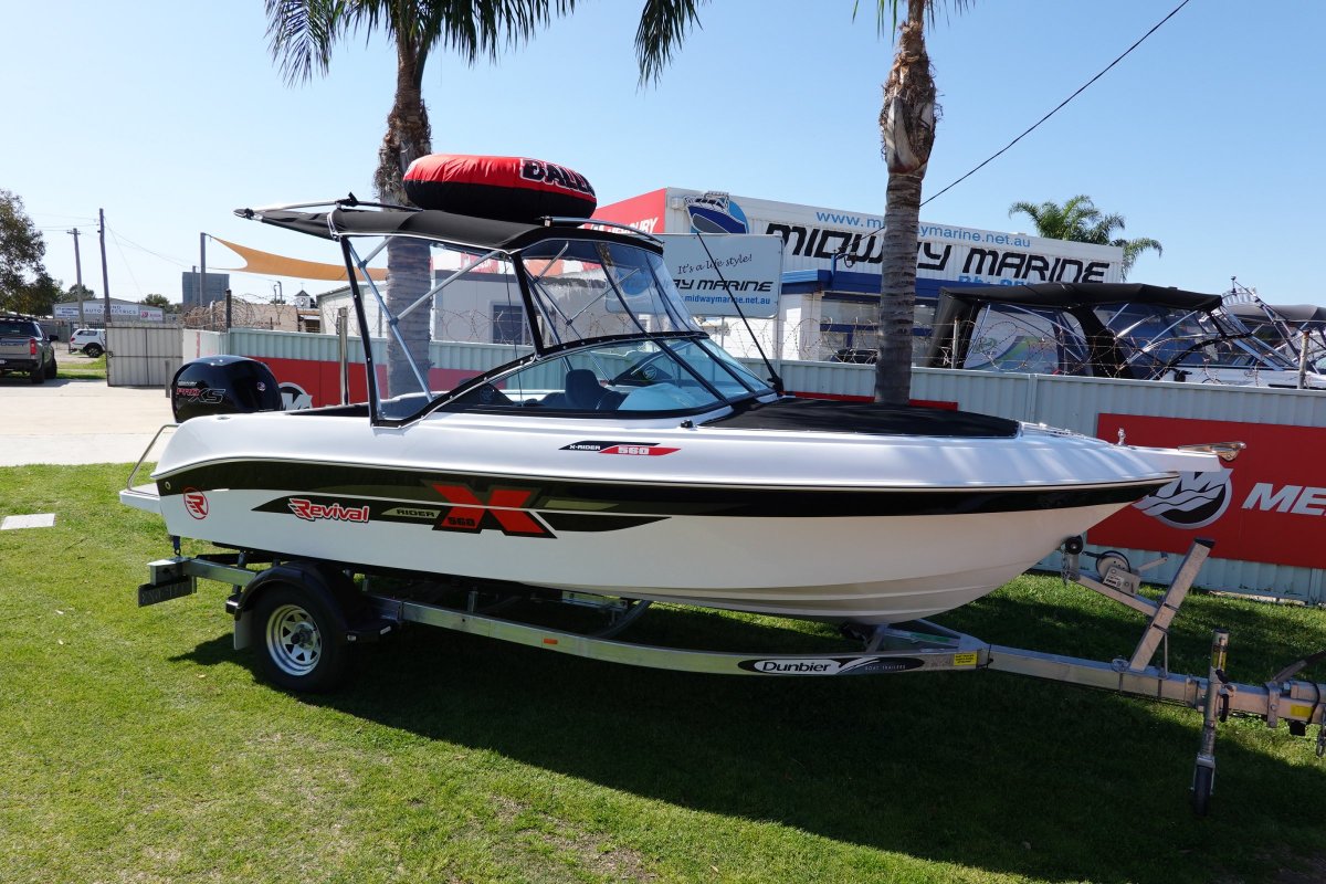 New Revival 560 X-Rider Bow Rider. Fitted with a 150HP Mercury Pro XS, this will be perfect to entertain the family this summer!. Featuring its fantastic layout to hold the whole family while zipping around the kids on tubes or wakeboardsFull canopy set up, so there is plenty of sun. Bimini, rear shade, front and side clears and a tube holder on top. Comes with the following.... Single battery with iso (can be upgraded to twin batteries)9"simrad combo screen with transducerRadio and aerialFull offshore safety equipmentDLX switch panelRear platforms and s/s ladderRubber pads on platformsS/S ski pole (removable)Bow coverBow cushion infillRear lounge/storage boxes (removable)Bimini that has been lifted higherFront and side clearsRear shade extensionHuge under floor storage/kill tankTube/ski biscuit holder of the roofCarpeted floor thru outDlx coamings and drink holders through out the boatTransom walk thruSits on a Dunbier single axle trailer12months license on hull and trailer into your name. Discounted Price to Sell, WAS $89,205.00. ****NOW $86,000.00***. ONE ONLY AT THIS PRICE!. WE CAN ARRANGE EASY AND NO HASSLE FINANCE AND INSURANCE TO APPROVED CLIENTSMIDWAY MARINE43 HURRELL WAYROCKINGHAM WA9527 6963www. Midwaymarine. Net. AuCALL WARWICK OR SAM ON 9527 6963OR COME INTO OUR YARD AND LOOK AT ALL OF OUR STOCK ON HANDWE ARE AGENTS FOR FISH HUNTER BOATS, REVIVAL BOATS AND HAINES HUNTER BOATSWE SELL NEW AND USED BOATS, NEW MERCURY OUTBOARDS, DUNBIER AND MACKAY TRAILERS AND ALL THE PARTS YOU NEED FOR YOUR BOAT/MOTOR/TRAILERTRADE INS ARE WELCOME!MERCURY PREMIER SERVICE CENTRE, WE SERVICE AND REPAIR ALL BRANDS OF MOTORSGEAR YOUR BOAT UP WITH RAYMARINE, FUSION, GME OR LOWRANCE ELECTRONICSBIA MEMBERS AND BIA APPROVED REPAIRERINSURE YOUR BOAT WITH NAUTILUS MARINE INSURANCE OR CLUB MARINE INSURANCE, AGENTS FOR BOTH