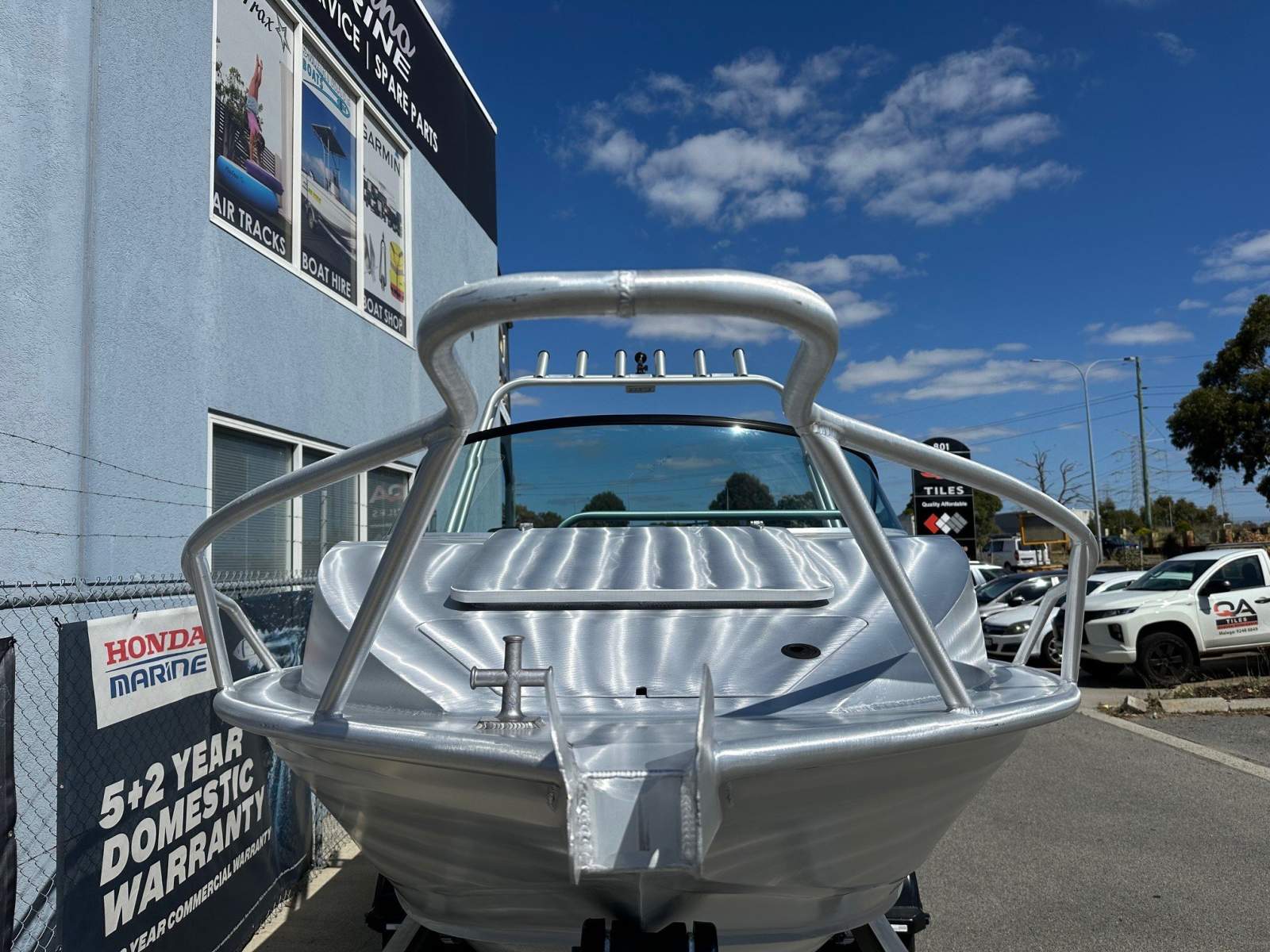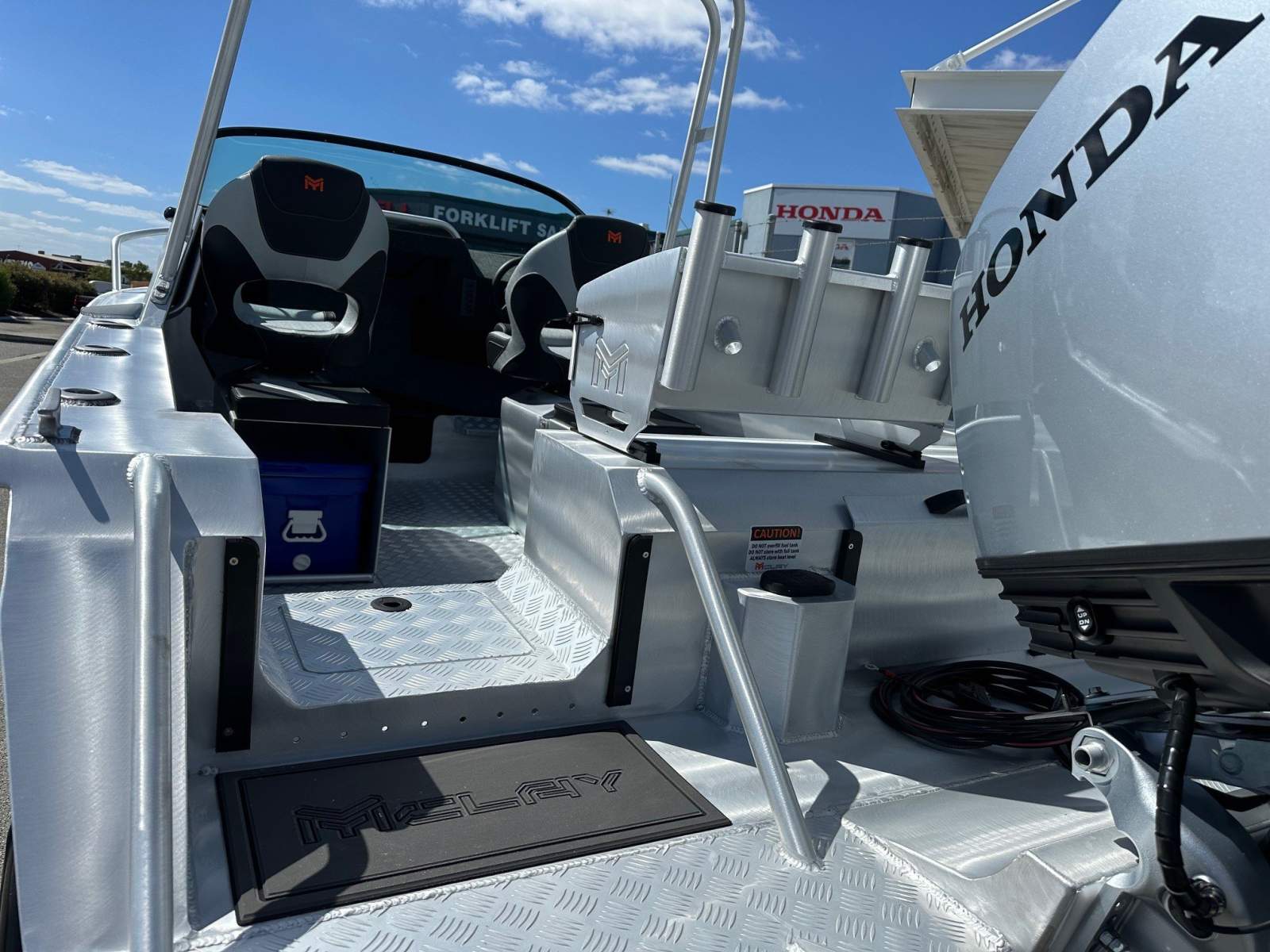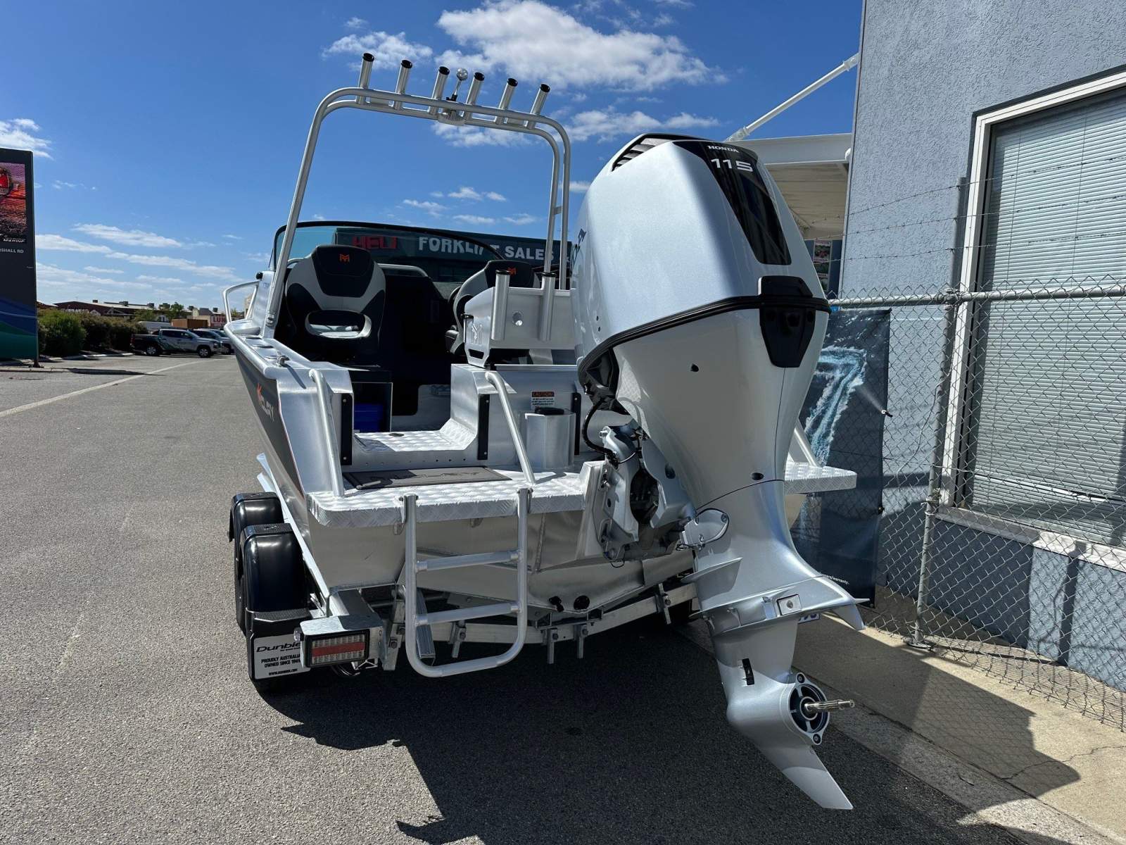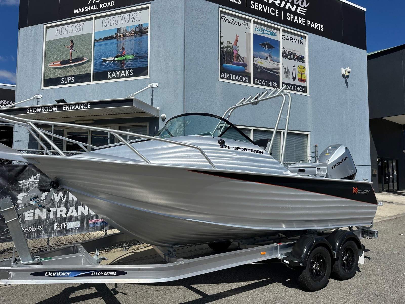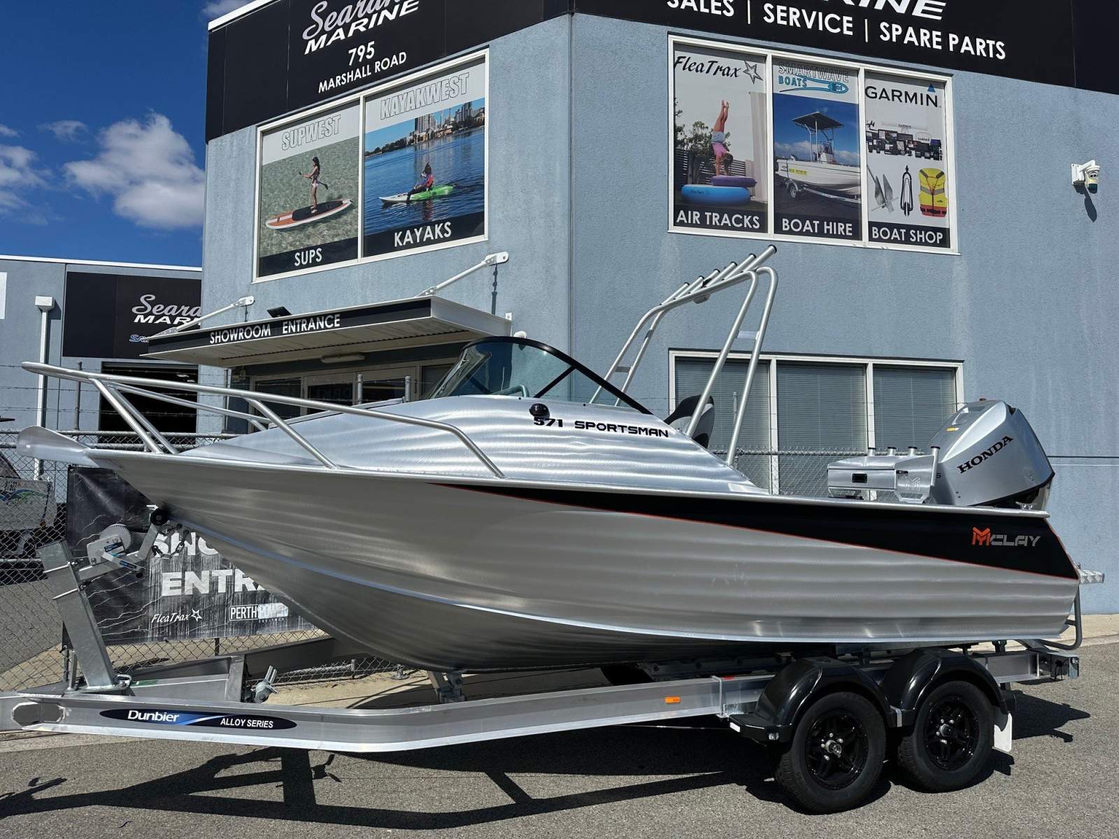 New Zealand built McLay Boats are built tough to handle WA's conditions. With 4mm plate construction and foam/air cell buoyancy giving LEVEL buoyancy, the 571 Sportsman is McLay's best seller in their Sportsman range!The McLay 571 Sportsman is an upgraded model of McLay's best selling model, the 550 Fisherman. The great ride and stability of this model makes it the ideal offshore fishing, diving and family boat. This boat has just arrived in time for Summer!Currently getting fitted up with the Latest Honda BF115 OutboardAlso included in this package is Dunbier Alloy TrailerThis hull was ordered with these additional factory options included:Bait board with drawers and rod holdersFull bow railFull length keel wear stripKill tankLive bait tank, plumbedFolding rocket launcher with rod holdersFold out rear seat from driver facing rearPull out Esky passenger side (Esky included)Fold down rear seatHydraulic steeringMcLay 571 Sportsman standard features include:4mm side & 3mm top thickness - marine grade4mm chines (bottom) - marine gradeWelded 4mm tread plate floor giving underfloor buoyancy130L under floor fuel tank with senderBow keel wear strip to protect lower bowBow sprit with rope guides and railsCabin hatchCabin shelvesWelded alloy rod holders - 4Wrap around Perspex screenFishing rod / storage alongside of cockpitGlove box with two cup holdersSwivel seats on pedestals including upholstery & Queen seat extensionsTwo marine lined ply squabs with storage underneath in cabinLarge transom lockerSportsman transom & podTwo platforms, handrails and ladderSelf draining anchor locker with lidDash handrailHelm and passenger footstepsFront alloy bollard & 2 rear alloy cleatsSpecifications:Len gth 5.70Beam 2.20Freeboard 700 mmTransom Height 25��HP Required 90 - 115
