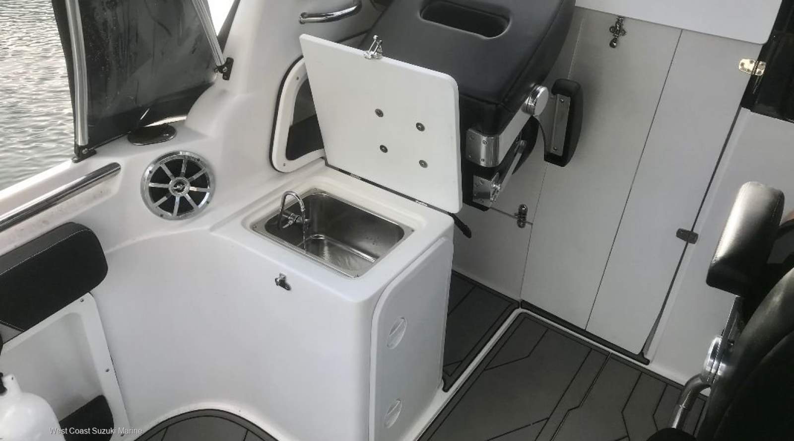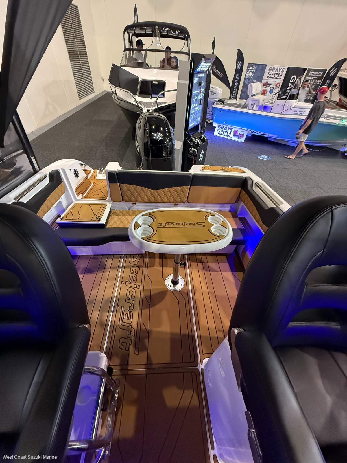 As The Western Australina Dealers for Stejcraft we offer this base model 640 monaco DLX perfect for familt days and fishing. A large 7ft bed in cabin is a feature of this modelHull & Deck White only, Black Cruiser Bucket Seats, Driver side U-Frame seat base, 2 x Removable Rear Lounge Storage Boxes with DLX Upholstered Cushions Split Bow Rail, Round Bluetooth Stereo with 2 x speakers, Hydraulic steering, DLX Anchor Roller, Deluxe trim, LED Navigation Light's, Auto Bilge Pump, Porta Toilet, 200L Underfloor Fuel Tank Approx, Walkthrough transom, Full H2O Grip through Out, Rear Pull up Cleats, Centre Bunk Infill's, 100 lt fresh water with elec pressure pump, Built in Platforms one with ladder, H2O Grip on Platforms plus Accents, 4 x S/S Rod Holders, 2 x LED Cockpit Lights, 1 x Cabin Light, LED cabin strip lighting, Cabin Roof lining, Driver Foot rest, SS sink with tap, Fresh water shower, 7 foot bunks, Centre bunk infills to make up a full bed,