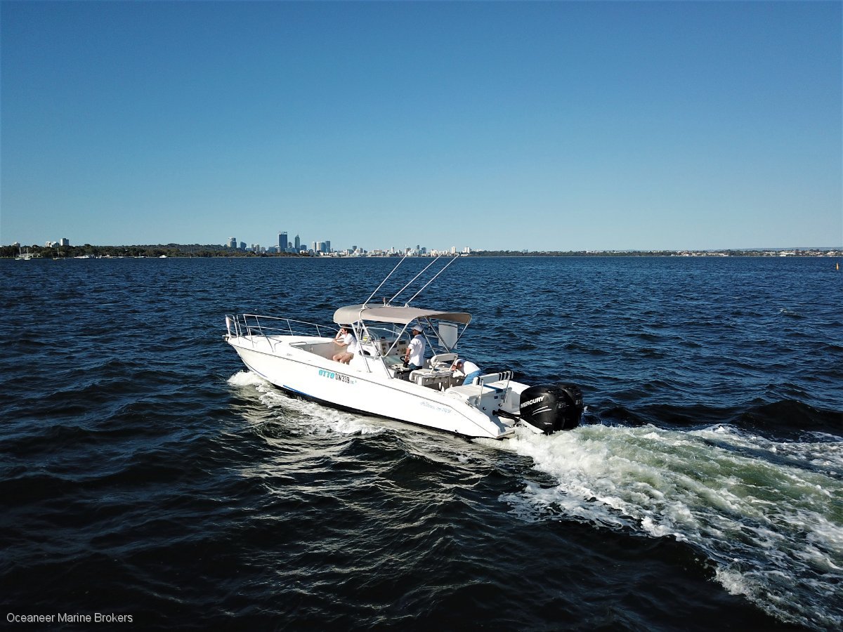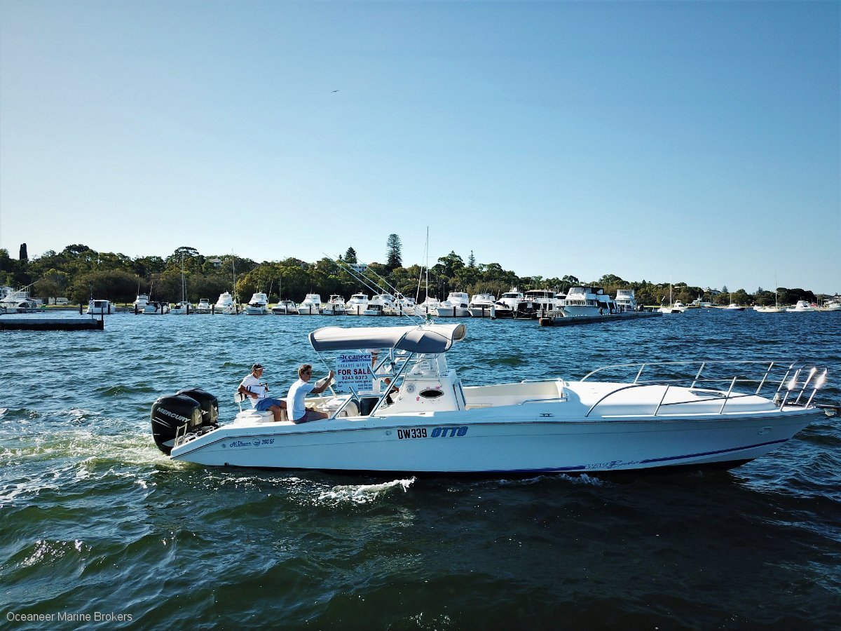 Highly desirable centre console presents rare opportunity. Fast, comfortable offshore performer with overnight accommodation offering versatility fit for WA boating. Recent sales records reflect this vessel as great buying with recent repower. Twin Verado outboards blast a sprint speed to 42 knots. Full service history and recent maintenance reports available. Annual out of water maintenance just completed. Offers invited. Please contact Oceaneer Marine Brokers for complete details or to book in an inspection.
