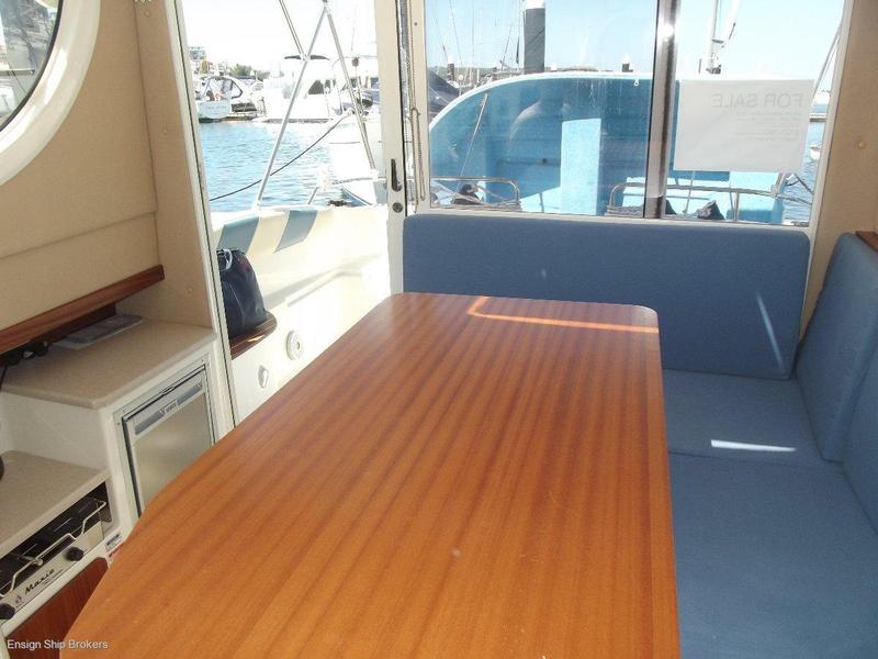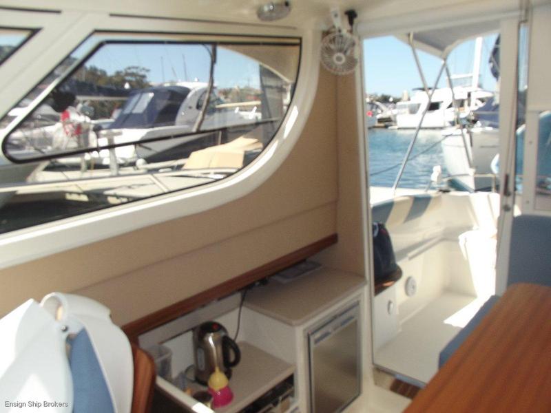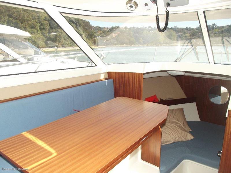 � Near New Condition � Diesel Mercruiser 150HP Engine - less than 9 hours use � Shaft Drive � Hydraulic Steering � Bow Thruster � Internal cabin and electric head � Electric toilet with holding tank � Full walk around decks � Swim Platform Less than 9 hrs. on the Mercruiser diesel shaft drive engine. You can cruise at 18 Knots to your favorite picnic or fishing spots with very economic fuel consumption. An extremely safe & reliable diesel cabin cruiser - perfect for family weekends. Plenty of extras including Garmin Fishfinder ensures this great boat ticks all the boxes. This near immaculately presented boat is both tough and reliable. Call Ensign Sydney to arrange a viewing.