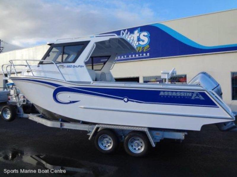 2014 MODEL DEEP VEE PLATE ALI WITH MASSIVE DECK AREA AND LOCK UP CABIN WITH TOILETASSASSIN BOATS ARE PROUDLY MADE IN WESTERN AUSTRALIA AND ARE TOUGH AS, WITH 5MM HULL AND 4MM SIDESTHIS BEAUTY IS AVAILABLE NOWFEATURES INCLUDE LARGE UNDER FLOOR KILL TANK WITH GAS STRUTTS ON LID, 250 LITRE FUEL TANK, DELUXE SEAT BOXES WITH LIFT UP LIDS AND SHELF PLUS STORAGE BELOW, QUALITY SEATING WITH SEAT SLIDERS, ELECTRIC FLUSHING TOILET, STORAGE UNDER BUNKS, SIDE CABIN WINDOWS FOR LIGHT AND ACCESS HATCH FOR EXTRA BREEZE INTO CABIN AND ALSO EASY ACCESS TO FRONT DECK, LOCKABLE 2 Pc CABIN DOOR MAKING ACCESS EASY AND KEEPING OUT UNWANTED PERSONS, 700mm EXTENSION OFF HARDTOP, 3 RUNG LADDER, 6 WELDED IN STUBBY HOLDERS ALONG SIDE EACH ROD HOLDER WHICH ARE IDEAL FOR PUTTING HOOKS/SINKERS IN WHEN UNDER WAY AND KEEPING DRINKS IN WHILST FISHING, DELUXE REAR BAIT BOARD WITH SHELF, 120 LITRE WATER TANK WITH PUMP/TRANSOM SHOWER, HYDRAULIC STEERING, NAVIGATION LIGHTING, 2 X REAR HARDTOP LED SPOTLIGHTS, CABIN LIGHTING, DUAL BATTERYS WITH START/HOUSE BATTERYS AND LATEST VSR CLUSTER SWITCHING SYSTEM INCL. EMERGENCY CROSSOVER SWITCH LINKING BOTH BATTERYS, VHF RADIOPOWER SUPPLIED BY 200HP HONDA 4 STROKE WITH STAINLESS STEEL PROP GIVING GREAT PERFORMANCE AND SENSATIONAL FUEL ECONOMYTHE TRAILER IS A CUSTOM MADE HEAVY DUTY I BEAM TRAILER WITH FULL VEE SKIDS AND H/DUTY ALUMINIUM CHECKER PLATE MUDGUARDS WITH SPARE WHEEL. THE BOAT WILL SELF ALIGN PERFECTLY EVERY TIME, MAKING DRIVING ON/OFF EASY AS INCLUDING BEACH LAUNCHINGA SENSATIONAL LOOKING BOAT WITH EVERY OPTION INCLUDED JUST READY TO ADD YOUR CHOICE OF SOUNDER/GPS