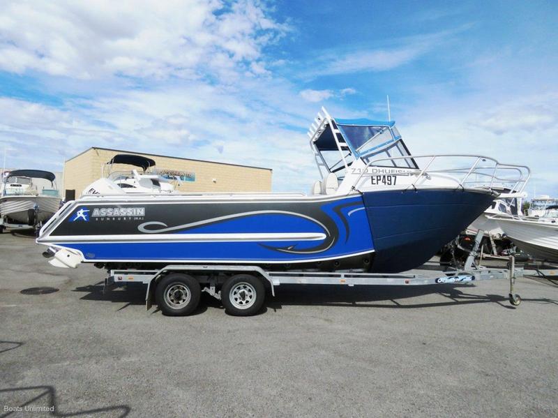 SUIT NEW BOAT BUYER, 2012 MODEL WITH ONLY 218 HOURS. UPSPEC'D TO SUIT THE SERIOUS FISHERMAN OR DIVING FANATIC. FISH 4 PLUS!THIS BOAT HAS A DECK SPACE THE SIZE OF A HOME POOL... ASSASSIN'S ARE A SOLID WELL BUILT BOAT WITH QUALITY RIDE AND EVEN MORE IMPORTANLTY STABILITY AT REST / FISHING 4 ON ONE SIDE!!WILL SUIT THE NEW BOAT BUYER AND PRESENTS IN AS NEW CONDITION, SHED STORED.. REPLACEMENT WITH ACCS FITTED AT 110KTRADES WELCOME, FINANCE AVAIL T. A. P