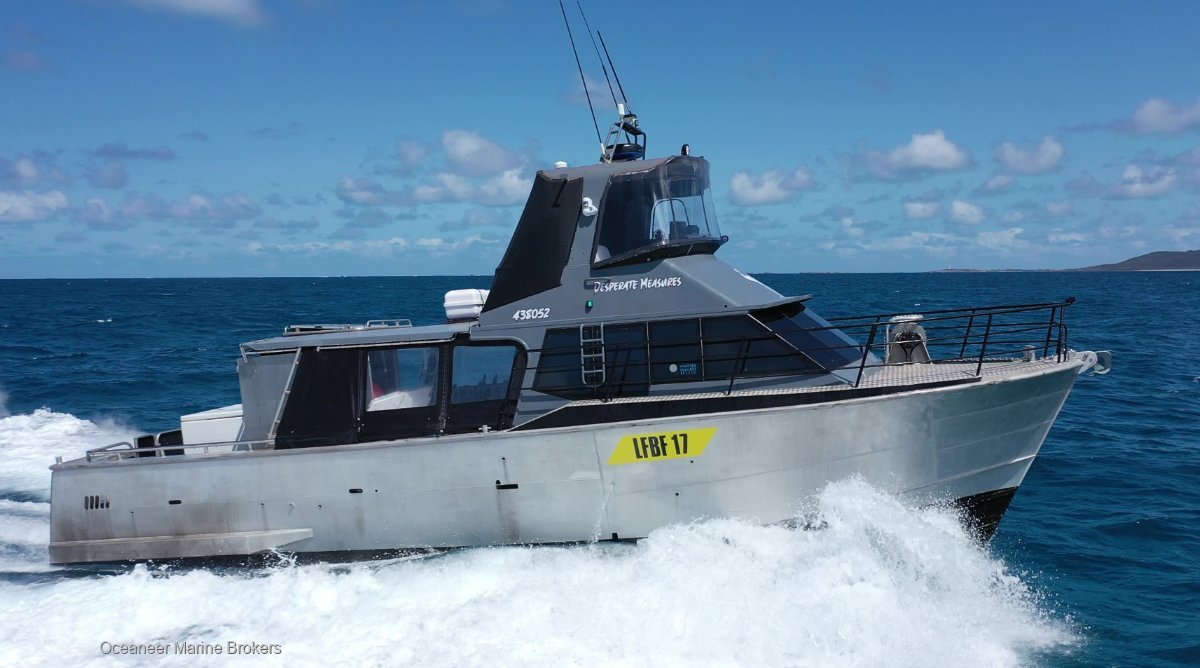 Introducing this impressive aluminium rock lobster/wet-liner/charter vessel built by the reputable Batavia Boat Builders! With huge money invested into refurbishing this vessel throughout 2021/2022, this weapon is well equipped and ready to get to work!KEY FEATURES INCLUDE:- Transitional AMSA surveys completed- Sandblasted, re-sprayed, new clears and breezeways- New flooring to the wheelhouse and deck head liners- All new lights inside and out shadow caster inertia Hella exterior- 3 new battery banks- 2 x 2 start banks 1x 200amp hrs house bank total of 8 batteries with self-charging system of main engine- Holds 9 cray baskets- New custom drum anchor winch- Impressive beam width (5m)and more!*Multiple electronics packages available, details and prices to be discussed and confirmed upon inspection. *The vessel was acquired by the current operators as a replacement for their outgoing charter vessel. After having spent countless man hours and a huge investment to restore her to her full potential, she has just completed a very successful charter season and is turn key ready to go to work for the summer season. Presenting as one of the tidiest commercial vessels in WA, with clever configuration and very impressive AMSA Survey numbers, "Desperate Measures" is a versatile work or leisure boat. For our Queensland friends, at under 15m she is applicable to AMSA exemptions allowing single crew and Coxswain tickets (up to 30nm), Oceaneer can assist with survey applications. Oceaneer Marine is Australia's most active Commercial & Recreational vessel brokerage. We specialise in the sale of new and pre-owned luxury recreational vessels, commercial vessels, marine assets & commercial fishing licenses. Interstate and overseas buyers welcome, Skippered delivery or sea freight can be arranged to a location of your choosing at Purchaser's cost. Call our experienced specialists at Oceaneer Marine Brokers today for further information, photos or specifications on this vessel:Matt: +61 499 449 788Lochie: +61 428 945 211Tom: +61 417 780 566Office: (08) 9243 6373(Suit buyers - Legend, Image, Shoreline, Fine Entry, Dongara Marine, GBB, Phil Curran, Westcoaster)