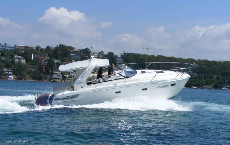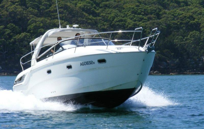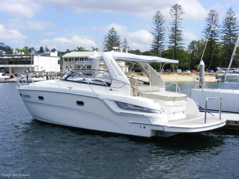 PRIVATE CABIN, TWIN ENGINE, BIG VOLUME SPORTS CRUISER. � Late model, low hours � 4 Berths � Stylish European design � Twin Mercruiser engines � Bow thruster � Private head and stand up shower � Extended aft deck with rail for BBQ � Walk around decks The actual boat used in the Tradeaboat review, this 2012 Bavaria 31 Sport is the perfect boat for days out and weekends afloat. The clever use of space by Bavaria enables a lot of bigger boat features to be included in the 31. The seating in the cockpit is a perfect example. A forward facing co-pilot seat when underway can be flipped to rear facing, thus also increasing the capacity when sat around the table for lunch. One space, two solutions! From the helm, the Mercruiser Smart Craft system allows for full engine telemetry for the skipper and navigation is provided by the integrated colour screen Garmin. Very manoeuvrable with twin engines the boat is easy to handle at 2 knots, 32 knots and everything in between. Below decks, the private aft cabin can be configured for either twin berths or a double. Forward of the saloon however is a very spacious V berth. Excellent as a day bed, it is in addition to the dinette. No more raising and lowering of tables and cushions. Generous headroom and a good sized galley to stbd.EngineTwin Mercruiser 5.0L MPIEngineHours67 HoursFuelCapacity520LWaterCapacity150LWeight6000kgShowerYesToiletYes Electric plus Holding TankCoversBimini and frame, clearsAccomodationCABINS: Private Aft Cabin, can be either twin berths or a very large double. Forward is a large V-Berth that will double as a day bed for shorter trips<br>TOTAL BERTHS: 4<br>SALOON: Midships Saloon with L-shaped seating and table, close proximity to the galley. Good sensible material on upholstery in terms of colour and texture<br>HEADROOM: 6'5"<br>SHOWER: YesGalleyLAYOUT: Linear Galley to Starboard with good counter space and access to dinette<br>STORAGE: Outstanding - a Bavaria Hallmark. Multiple cupboards, drawers and shelves<br>STOVE TYPE: Electric 2 burner<br>RefrigerationFRIDGE: Waeco<br>FREEZER: Compartment in fridgeGroundTackleANCHOR WINCH: Yes<br>REMOTE: Yes<br>ANCHOR: Yes<br>CHAIN: YesSafetyGearBILGE PUMPS: Yes Electric and Manual<br>LIFEJACKETS: Yes<br>ElectricsLIGHTING: 12v/240v<br>SHORE POWER: Yes<br>ElectronicsGPS: Garmin 4008<br>PLOTTER: Garmin 4008<br>