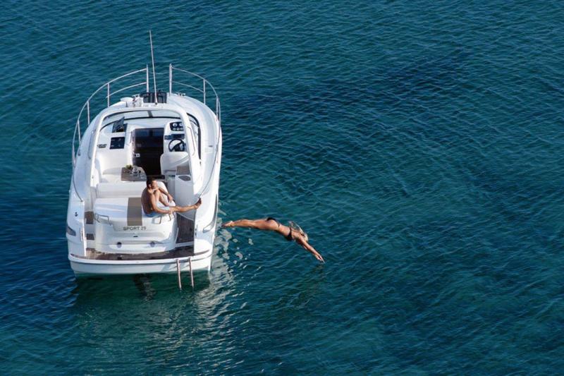 SPORT 29 - THE SPORTY CRUISER FOR FAMILY AND FRIENDS. The SPORT 29 is the cruiser for fun under the sun. She is a nimble miracle of spaciousness, full of power and sporty proportions. Smart details and an intelligent layout on deck, in the cockpit and below deck give the SPORT 29 unique functionality. With a generous saloon, a spacious double cabin and a practical bathroom the SPORT 29 is a true all-rounder for short or long trips.Engine1 x Mercruiser 377 MAG DTS Brav. III (1 x 320 HP) - ULP Standard (Volvo Penta Petrol / Volvo Penta Diesel / Mercruiser Diesel Engines *Optional*)EngineHours0FuelCapacity520 LitresWaterCapacity120 Litres Standard (Larger water tank *Optional*)Weight4ShowerShower in headToiletPump-toilet with holding tankCoversBimini, Camper Cover, and In-Harbour Cover (All *Optional*)AccomodationCABINS: V-Berth Forward, Double berth in separate aft cabin.<br>TOTAL BERTHS: 4<br>SALOON: - Reading lamp - Roof lamps - Interior wood in Mahogany Standard (Teak or Light Oak *Optional*) - U-shaped settee convertible to a full-size bed - Upholstery in creme or blue Standard (Comfort / Artificial Leather / Real Leather *Optional*) - Blinds and fly screen on hatches<br>SHOWER: Shower in headGalleyLAYOUT: Stainless steel sink with cover<br>STORAGE: - Locker and racks - Stowage space - Stowage space under sitting area - Stowage under aft sun pad - Overhead locker and wardrobe<br>STOVE TYPE: - Ceramic stove top in galley standard - 2-Burner stove (*Optional*) - Cockpit grill (*Optional*)<br>MICROWAVE: (*Optional*)Refrigeration12v Fridge (50 Litres) in Galley + 12v Fridge in CockpitGroundTackleANCHOR WINCH: Electrical windlass<br>ANCHOR: Delta anchor - Galvanised<br>CHAIN: Anchor chain - Galvanised (25m x 6mm)SafetyGearBILGE PUMPS: Electrical bilge pump in aft cabin & engine bay<br>FIRE PROTECTION: - CE-fire extinguishing system - 2 x fire extinguishers - Fire blanket<br>ElectricsLIGHTING: Interior and Exterior lighting packages (*Optional*)<br>SHORE POWER: Shore supply, 230 V<br>BATTERIES: 1x Starter battery, 2x Board battery, Charger: 40 A (3-channel)<br>ElectronicsGPS: (*Optional*)<br>PLOTTER: (*Optional*)<br>RADIOS: (*Optional*)SurveyCertification: - CE-Certification Category B- GL CE-Yacht certification