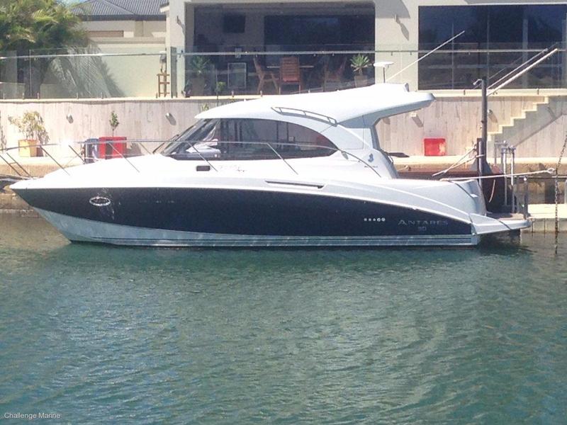 This Beneteau 2010 was purchased new in 2012 and still looks in the same condition, it has been looked after and maintained by one fastidious owner and with less than 100 hours on the clock would suit a new boat buyer at a second hand price. What makes this boat special above 95% of the other brands in this range is the centre mounted Yanmar 370 HP diesel engine giving low centre of gravity amid ships which offers that big boat feeling on the ocean, with this stability those who normally may feel a little uncomfortable out in the ocean will find this ride a lot more enjoyable. The saloon has mahogany woodwork through out with wooden floors, the large glass windows and doors fill this space with ample light, large twin sliding sunroofs offer adjustable cabin ventilation, the galley has stainless steel sink, mixer hot and cold tap, 2 hob gas stove and gas oven, 65L fridge, U shaped dinette, convertible double berth, solid wooden table, access to rear deck thru three panel glass sliding doors in aluminium frame. Master forward stateroom with queen size double island bed, mid berth cabin with bunk 2 berth singles, head has lockable door, toilet with shower and cupboards. Helm has Lowrance HDS 7 chartplotter display gps combo fishfinder, marine VHF radio, bow thruster, windscreen wipers with washers, sliding side windows, engine gauges, compass, sports steering wheel, pilot chair with bolster, foot rest. Rear deck is laid teak with huge storage locker under, transom door out to wide swim platform with stainless steel BBQ. This boat is great value for money and well worth an inspection, call Greg on 0409556442 to make an appointment to view in Mandurah, you will not be disappointed. Challenge Marine - Perth's leading used boat destination - for both trailer and penned boats - with sales staff offering over 50 years experience in the marine industry. Easy finance available TAP - Club Marine insurance - boat handling tuition available. While every effort is made to provide accurate information about our listings we accept no resposibility regarding its accuracy and purchasers should always undertake an independant mechanical / hull inspection by qualified personnel.EngineYanmar diesel 370 HPEngineHours99.6FuelCapacity375 LWaterCapacity145 LWeight4.55 TonneShowerYesToiletYesAccomodationDouble island bed forward cabin, two berth singles mid berth cabin, double convertible saloonGalleyTwo hob gas oven cooker, fridge, drawers and cupboards, sink hot/cold mixer tapRefrigerationYesGroundTackleElectric windlass with all chainSafetyGearYesElectricsShore Power battery chargerElectronicsLowrance HDS 7 Gen2