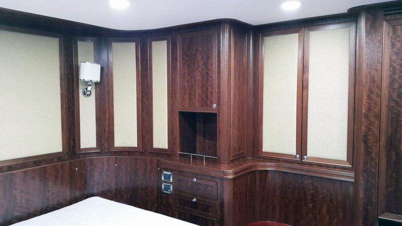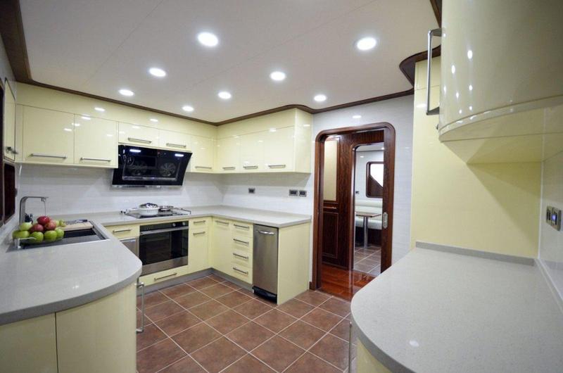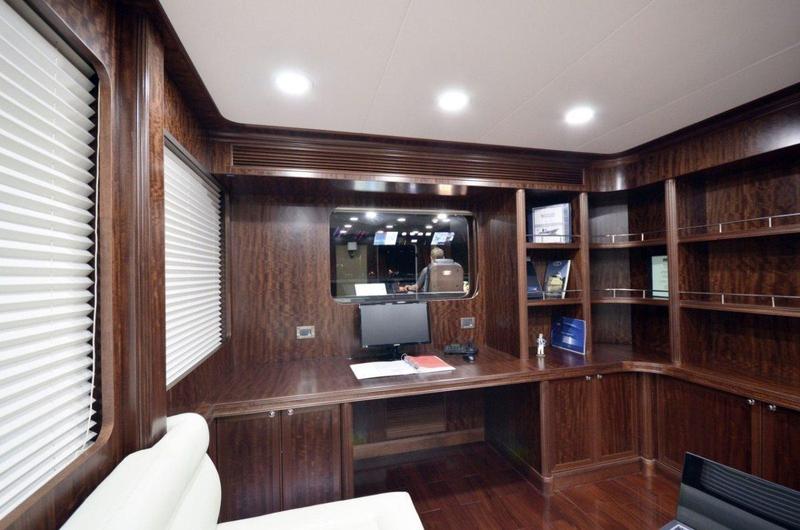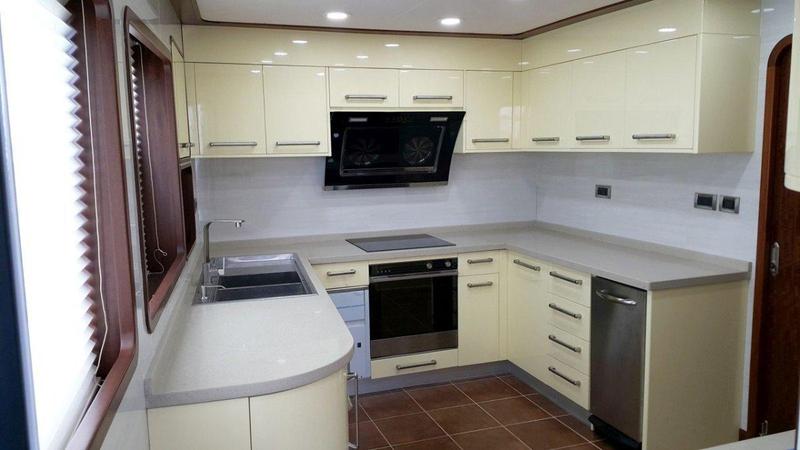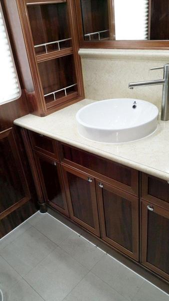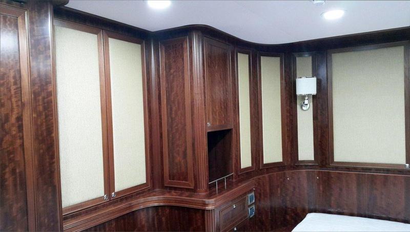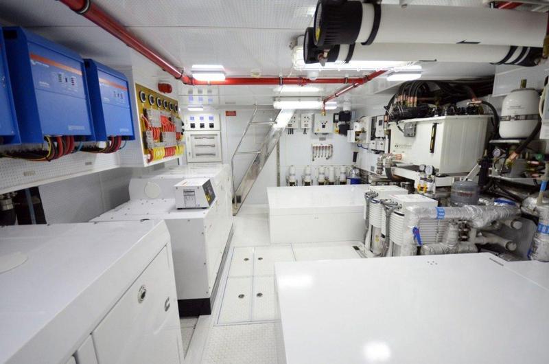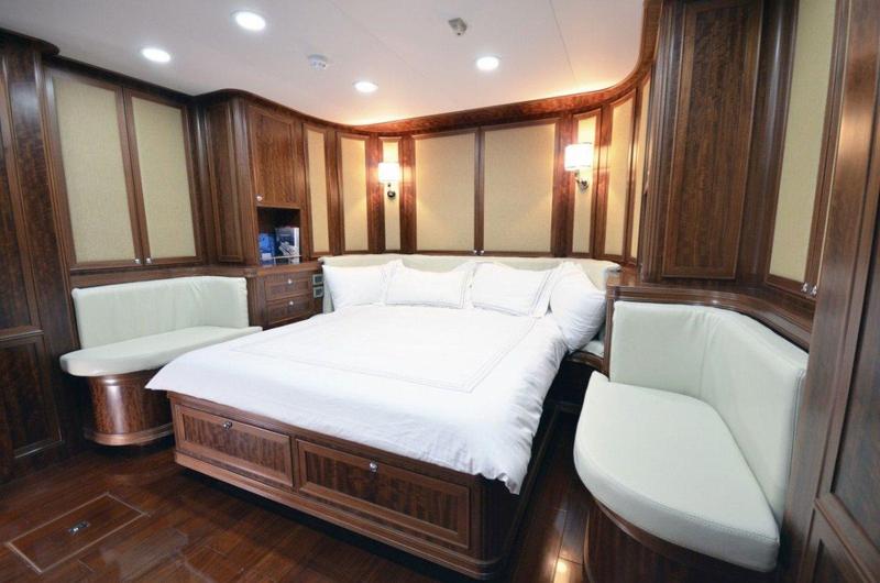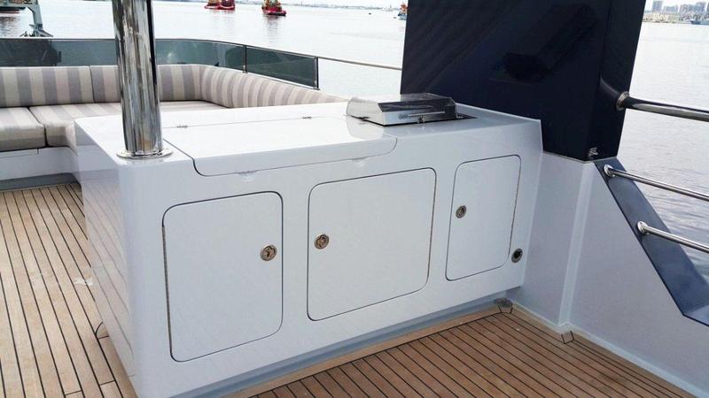 Bering Yachts Australia announces the successful launch of the Bering 80 "Veda". The full displacement steel yacht is currently the flagship of the Bering fleet and the fourth vessel in the Expedition Class series. Dressed in dark blue steel, the boat is the heaviest in her class, displacing 485,000 pounds (220 tons) and has a fuel capacity of over 12,885 gallons (48,775 liters). Her masculine blue/grey, crisp, and striking exterior is complemented by a classical rich Makore interior mixed with marbles, granite and hand-crafted furniture. Spacious, elegant and practical, Veda's massive 25-foot 8-inch (7.8 meters) beam gives her an immense amount of onboard space and the ability to comfortably accommodate eight guests in her four luxurious staterooms and four crew members, all with en-suite bathrooms. Veda�s interior design is timeless and benefits from exquisite craftsmanship, fine art and cutting-edge design. The main saloon is a large welcoming space; filled with natural light, hand-finished furnishings and state-of-the-art technology. The outstanding level of design and craftsmanship continues below deck, where both the owner�s stateroom and guest cabins offer privacy and extravagance in equal measure. She features cutting-edge noise and vibration insulation solutions, which the shipyard states will contribute to a relaxed and peaceful atmosphere on board. The vessel is fitted with a SidePower hydraulic stabilizer system making her stable and comfortable in all weather conditions.