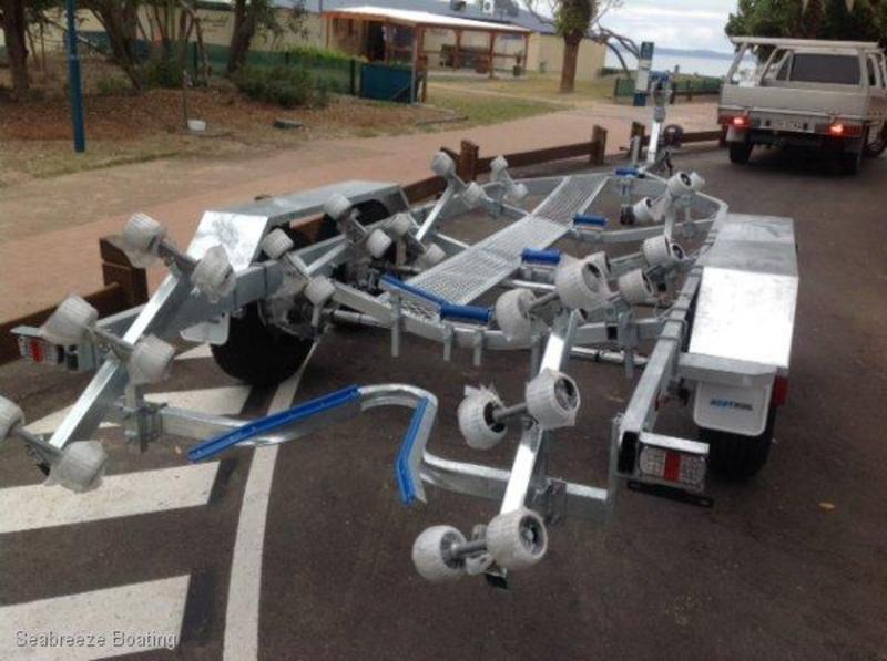 We have a huge range of boat trailers in both Aluminium and Galvanised frames to suit most boats from 3.2m right up to 8.0mPrices start at $1395 inc rego, does not include transfer costs for a Tinny trailer to suit a 3.2m boat. Most are licensed and ready to go. All trailers have a 2 year frame warranty as well as using all Ford Bearings and Ford Stud pattern so no matter where you are spare parts are readily available. Pontoon and Twin Hull boat trailers are also available to order.