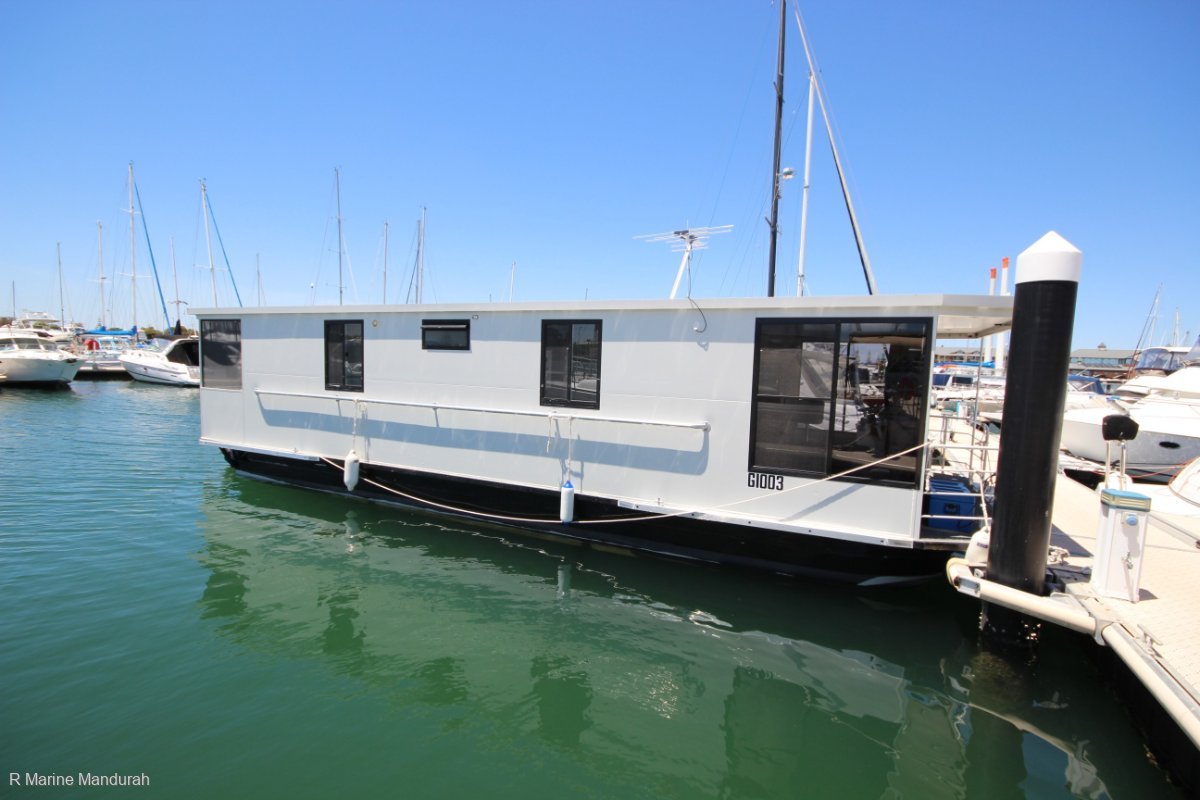 Presenting in as new condition this 40 foot Western Australian built aluminium BOSS BOATS House Boat is looking forward to sharing your adventures in the Peel Region. Can't travel to Melbourne, Can't go to Bali....... Why not have a holiday home on the water in the Peel region. See why we all live down here. Its beautiful !!!The current owners have carried out a number of upgrades to suit their needs from the basic shell purchased around a year ago including upgrading the air conditioner, solar system and regulator, 2000wt Inverter, additional railing to the bow and stern, Side Shift drop down bow thruster, additional cleats and rubbing strips along the gunwales and more. I met the owner on the bow of the boat relaxing in the shade of the front awning leaning over the railing talking to his neighbour about the days events, a typical scene in the house boat market. Relaxing and catching up with friends being a big part of what happens here in the Mandurah region when house boating !A home on the water this twin cabin, four berth house boat well furnished in quality lounges and appliances will offer hours of relaxing to the family playing in and exploring the Peel regions water ways. A quality build with one piece 3mm gunwale to gunwale hull construction with internal baffles / bulkheads at 2.2m sections independently sealed with small expansion holes fitted to allow expansion and contraction on a hots summers day. Top decks are constructed of 4mm plate alloy trim panels and the super structure built of pre-painted alloy composite panels fitted to an aluminium sub frame for excellent heat regulation while maintaining a light construction overall. Alloy cleats fitted to the bow and stern along with additional cleats to the rubbing strips port and starboard. A 25mm railing system to bow and stern will keep the grand kids safe while everyone relaxes tied to a river bank, drop the aft ladder and take a dip. Make the most of your time aboard with a modern custom kitchen, solid bench tops with house hold appliances, the fridge running off the inverter overnight, the micro best on the mains or a generator or bring your favourite BBQ along and cook on either of the two outdoor decks. Rennai gas HWS system fitted ensures plenty of water for the full sized shower recess off the master berth. This house boat will not disappoint in presentation and finish and may well suit a new boat buyer. The current owner would consider a trade of a caravan, the road is calling. Call the office on 08 9583 5355, Paul on 0427 949 293 or Trevor on 0456 949 293. We are here to help and happy to arrange a suitable time for you to view this as new House Boat. If you considering selling a similar boat we cater to owners from Busselton to Mindarie and everywhere in between. List your boat with R Marine Mandurah and maximise your boats exposure. Clients are lining up to buy as summer approaches. With a lifetime invested in the WA Marine Industry at all levels and thousands of boats sold Paul Denboer and the team at R Marine Mandurah WILL sell your boat and are proud to offer a NO SALE NO FEE structure to all our valued clients. Why entrust your precious boat to just anyone !R Marine Mandurah, Experience the difference for yourself, see why our clients are speaking so highly of the R Marine Mandurah Team.