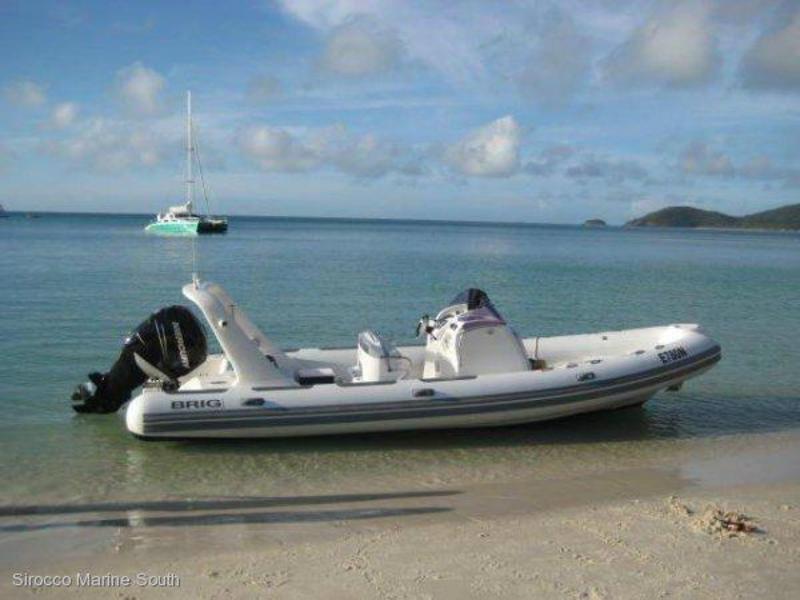 BRIG EAGLE 780 INFLATABLE RIB: BRIG EAGLE 780 The ideal luxury Sports Boat BRIG Eagle 780 with Honda 250 HP 4 Stroke $119900 (no trailer)price includes engine, dual batteries bimini top and cover plus much more Due to the size of the tender custom options are extensive. A range of T-tops are specially built for the 780. Corking decking, toilets, electronics, custom fishing tables. WWe now have electric winch kit available for the cray fishermanBRIG Eagle 780 Description BRIG Boats are hand built in Europe, and finished to very high standards. BRIG is the number one and best selling brand across Europe, the United States, Australia and New Zealand. The BRIG Eagle range offers high spec watersports ribs with deep V hulls for open sea stability. BRIG Boats have been tried, tested and continually evolved over the last 23 years. The 780 is the baby in the Eagle range and was designed specifically as a luxury sports tender. It is extremely comfortable and dry for its size even in heavy seas with the deep V hull cutting through waves. The Eagle 780 soft riding, self draining and super safe in rough water and delivers a level of safety you can only dream about in a normal tinnie, or fibreglass boat. The Eagle 780 is a top quality in finish and has a luxury style interior and seating. T The Eagle 780 tube quality is world class sourced from France the fabric is called orca and is high quality Hypalon it is available in a range of colours including black, red, blue and white. The Eagle 780 is rated to 18 people because of the high level of buoyancy inherent in the pontoon tubes. The BRIG has a full range of optional extras so that you can customise your boat to suit your exact requirements. BRIG RIBs are a great platform for all water sports giving you the freedom to get out on the water in safety and style. BRIG Eagle 780 Standard Features Hypalon Orca tube fabric Anchor with lifting mechanism BRIG Bimini Fresh water shower/washdown Foldable stainless steel ladder with platform Ski mast Removable table Hard tube ends with anti-ski steps on each Front and rear storage lockers Hull ventilation system Twin self-bailing unit Built-in fuel tank with external deck filler Front step plate Front towing bow ring Rear cleats (bollards) Built-in davit lifting points Rubbing strake Safety handles and carrying handles 2 paddles and a foot pump Repair kit Accessories bag Owner's manual Steering console Combined pilot seat/bolster Steering system (Hydraulic) Sports steering wheel Mast for navigation lights Navigation lights Automatic bilge pump Battery container Battery isolation switch Fuel gauge Waterski towing eyes Front locker removable cushion Rear cushion with soft back Military Precision & Production BRIG inflatable boats are designed and built in Europe by a dedicated team of specialist ex-military aeronautical engineers. The boats are hand built and finished to very high standards with each stage recorded and quality checked for total accountability. The best materials are sourced from around the world and all boats meet or exceed ISO, EEC Standards. BRIG has challenged conventional design by applying new aero and hydrodynamic theory to traditional ideas. This has seen a marked improvement in performance and seaworthiness. Brig Europe's leading inflatable boat brand. BRIG Eagle 780 Specifications Model: Eagle 780 Length: 7.85m Beam Width: 2.9m Overall Height: 2.29m Tube Diameter: 58cm Air Chambers: 5 Boat Weight: 1080kg (Dry) Max Power: 300hp Load Capacity: 1940kg Max Persons: 18 Fuel Capacity: 340lt Water Capacity: 50lt * Dimensions do not include engine dimensions. CONTACT YOUR LOCAL DEALER, SIROCCO MARINE PERTH Mark Mawby, Dealer Principle M 0499887072 W 08 94674414 E mark@siroccomarineperth. Com. Au www. Siroccomarineperth. Com. Au Sirocco Marine Perth pty ltd 309 South TerraceSouth Fremantle Sealanes complexWestern Australia 6162EngineThere is several options for outboards for the 780. Honda 250 for the budget minded who want a relaxed experience. Yamaha 300hp with electronic throttles who are looking for features and performanceSuzuki 300hp with electronic throttles who are looking for features and performanceAnd for the Mercury lover Mercury 300hp/ or new 350hpElectronicsWide selection available customised to owners requirements and budget