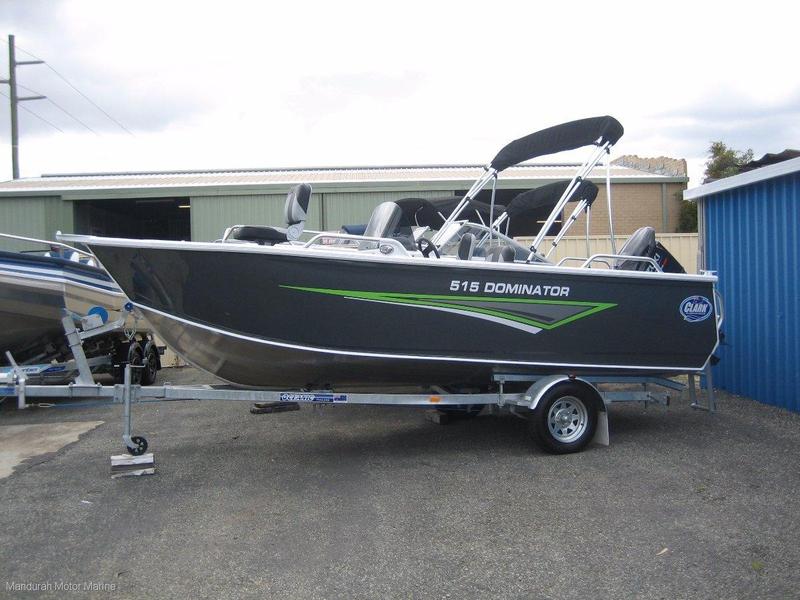The Clark 5.15 Dominator is designed for the serious fisherman. With a barra-bass tournament style layout and stylish side console, front casting platform, electric motor bow mount, live fish tank, ample storage, with plate sides, with two tone colour choice, the 5.15 Dominator is perfect for river, lakes, estuaries and open bays. If you like sports fishing, this is the boat for you. SpecificationsOverall Length 5.22mBeam 2.25mDepth 1.06mWeight KG Boat ONLY 485kgReccom H/P 70h/pMax H/P 115h/pBottom Sheet 3.0mmSide Sheet 3.0mmShaft Size L/SMax H/P Weight 181kgMax No. People 5Standard Features3mm Bottom Sheet with 3mm Side Sheets3 Fully Upholstered Fold Down Swivel Seats with Poles4 x Fixed Seat Positions (four on main floor, one on front cast platform)4 x Fishing Rod HoldersAnchor Well - Self Draining with CleatBattery ShelfBilge Pump BracketBow Sprit with RollerCleat on each Transom CornerDouble Bow EyeElectric Motor Mount on BowExtruded Side DecksFolding Rear LadderFully Carpeted Floor with Underfloor FlotationInternal Keel with StringersLive Bait Tank - Small in Rear Transom Deck (Plumbed)Painted White Inside and Out, with TWO TONE PAINT!!Rear Side RailsRaised Casting Platform with Large Live Bait Tank with divider (plumbed) and StorageScrew in Bungs x 2 (35mm)Side PocketsSports Bow Rail with Nav Light BracketsSports Side Console with Plastic Dash and Windscreen & SteeringStripe with Boat Name DecalSuper POD 2 inspection ports with Duck Board Tread x 2Throttle Control PanelTransducer Brackets x 2Underfloor Fuel Tank - 110LBMT PACKAGE INCLUDES -4 X Life JacketsAnchor Rope and Chain Kit12 Months Registration70HP - $38,99080HP - $41,20090HP - $42,200100HP - $44,300115HP - $44,990