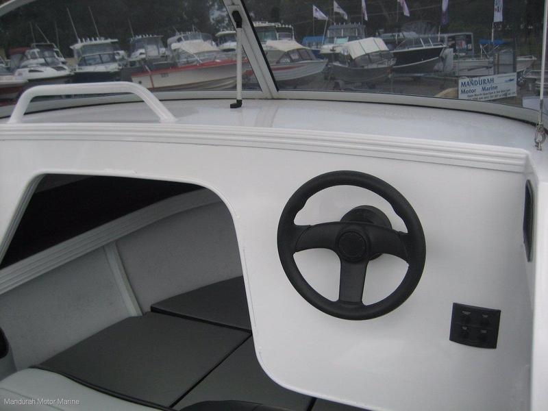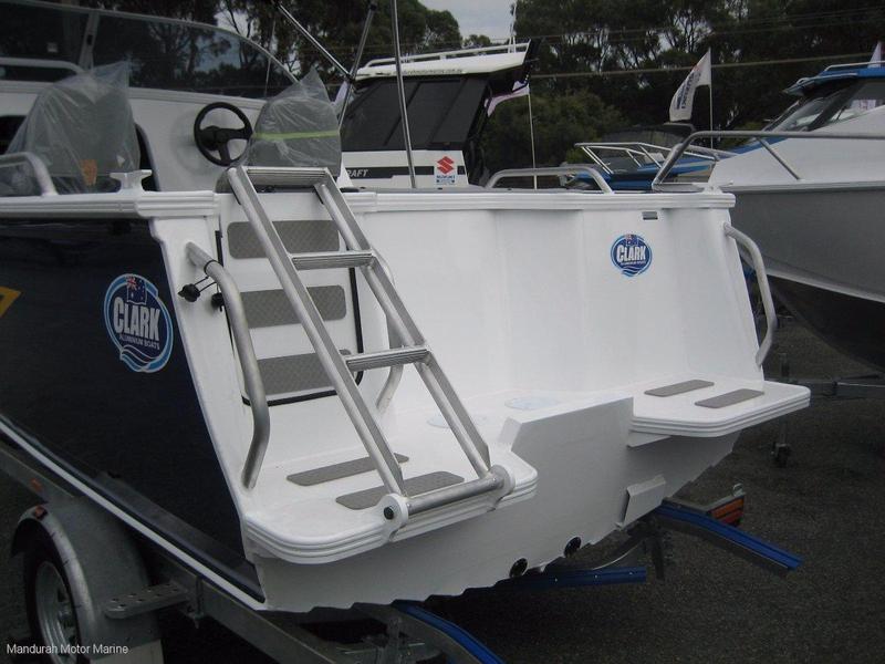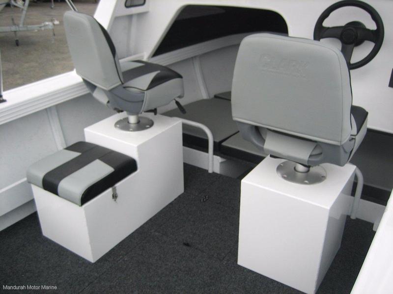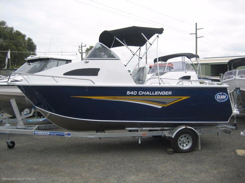 The Clark 5.40 Challenger provides not only protection from the elements so you and the family can enjoy boating rain or shine, but is versatile enough to meet your every need. Whether you like a day out with the family cruising, fishing or a weekend way, the Clark Challenger is the boat for you!Specification:Overall Length 5.45mBeam 2.25mDepth 1.16mWeight KG Boat ONLY625kgReccom H/P 70h/pMax H/P 115h/pBottom Sheet 3.0mmSide Sheet 3.0mmShaft Size L/SMax H/P Weight 181kgMax No. People 6Standard Features:2 x Fishing Rod Holders2 x Fully Upholstered Seats on Aluminium, Storage Boxes with Seat Sides and Swivels. Passenger Side has 400 x 350mm, Rear Facing Dickie Seat. 3mm Bottom Sheet with 3mm Side SheetsAluminium Wide Body Cabin with Storage PocketsAnchor Well - Self Draining with CleatBattery ShelfBilge Pump BracketCabin Hatch - PerspexCabin Windows - PerspexCarpet Lining in CabinCleat on each Transom CornersDouble Bow EyeExtruded Side DecksFolding LadderFolding Upholstered 3/4 Lounge with Deluxe Back RestFoot RestsFully Carpeted Floor with Underfloor FlotationGrab Rail for PassengerInternal Keel with StringersPainted WHITE Inside and Out (FREE TWO TONE)Screw in Bungs x 2 (35mm)Side PocketsSide RailsHigh Split Bow Rail with Bow Sprit and Nav Light BracketsSteering Wheel Cable SteeringStripe with Boat Name DecalExtended Super POD 2 x Inspection Ports and Duck Board Treads x 2Throttle Control BracketTransducer BracketTransom DoorUnderfloor Fuel Tank 110LUpholstered Bunk Cushions with Boards for StorageWindscreen - CurvedBMT Package Includes -115HP Suzuki 4 Stroke4 x Life JacketsAnchor Rope and Chain Kit12 Months WA Registration
